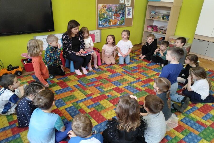 Dzisiaj naszą grupę odwiedził bardzo miły gość - mama naszej Anieli. Przedszkolaki mogły wysłuchać czytanej książki pt. ,,Pajączek Plączek''. Dzieci chętnie słuchały przygód głównego bohatera udzielając w trakcie odpowiedzi na pytania do wysłuchanego tekstu. Wszyscy mogli podziwiać piękne ilustracje książki a na koniec spotkania czytelniczego każdy dostał słodkiego cukierka rozdawanego przez naszą Anielkę.