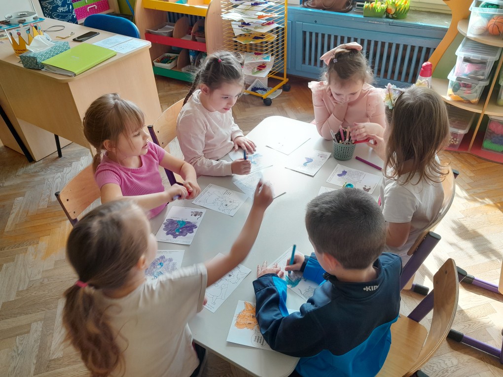 W ramach realizacji projektu „Czuciaki z Krainy Emocji” dzieci poznały kolejną emocję – dumę. Na początku obejrzały bajkę edukacyjną, w której poznały Brawojkę – postać symbolizującą tę wyjątkową emocję. Następnie przedszkolaki chętnie dzieliły się swoimi doświadczeniami, opowiadając o sytuacjach, w których czują dumę. Tradycyjnie wykonaliśmy również karty pracy związane z nową emocją, które dzieci z zaangażowaniem wkleiły do swoich zeszytów.