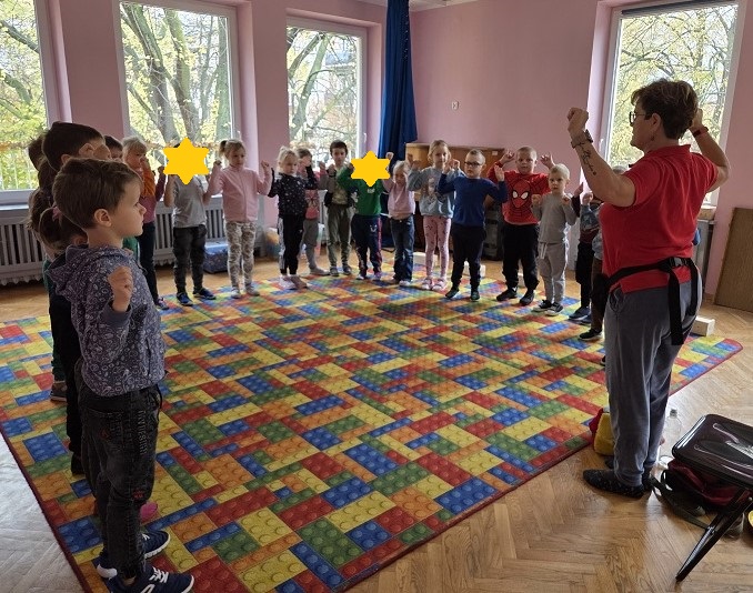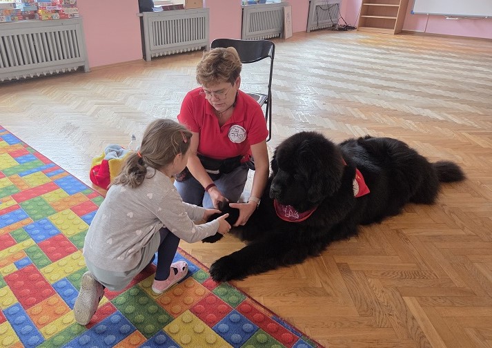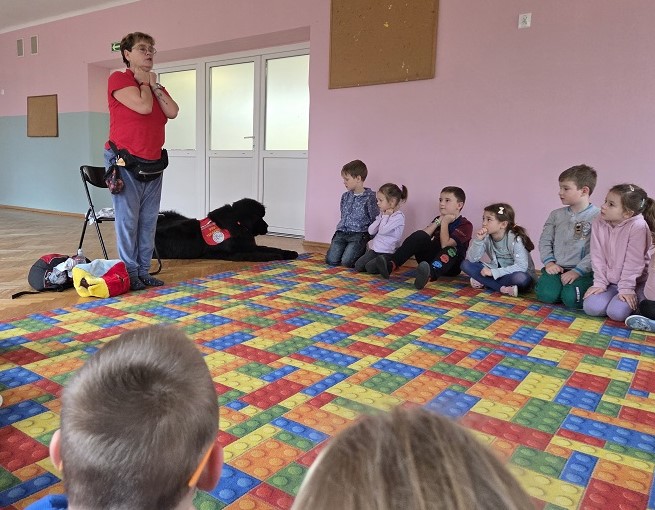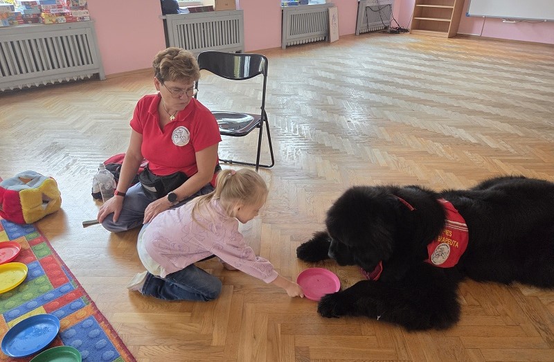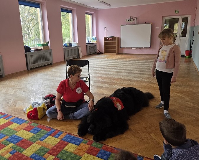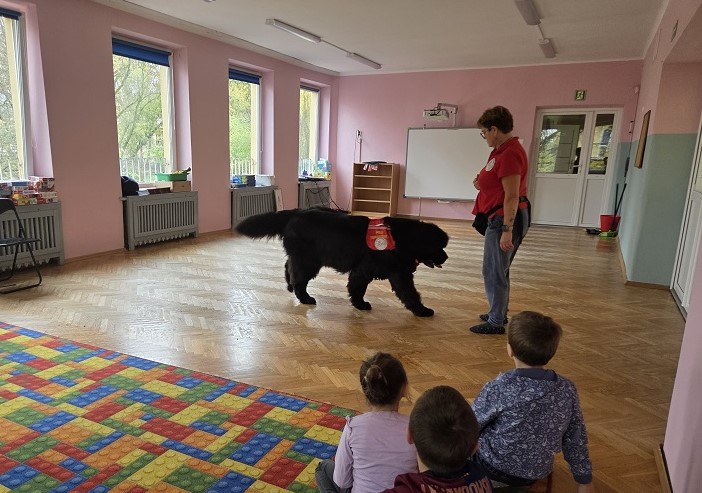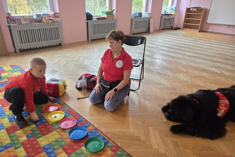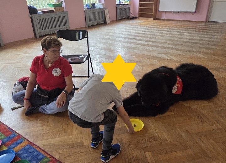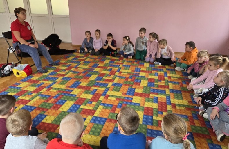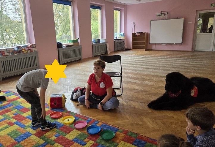 W dniu 28 października 2025r. w grupie Biedronek odbyły się zajęcia dogoterapii, czyli terapia z udziałem psa Teodora. W ramach zajęć dzieci mają okazje do kontaktu z wykwalifikowanym psem terapeutycznymi i do wykonania różnych zadań i ćwiczeń. Podczas zajęć dzieci uczą się między innymi jak prawidłowo podejść do psa, jak go głaskać i jak z nim się bawić. Dogoterapia ma wiele korzyści dla dzieci, przede wszystkim pomaga w poprawie stanu emocjonalnego i wzmaga poczucie własnej wartości. Kontakt z psem pomaga dzieciom w odczuwaniu miłości, przyjaźni i bezpieczeństwa. Obecność psa Teodora na zajęciach sprawił dzieciom dużo radości i wyzwolił spontaniczne reakcje.