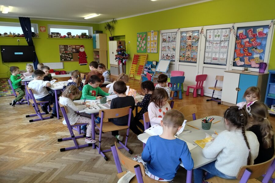 Dzisiaj truskawki wysłuchały opowiadania pt. ,,Sprzątanie'' M. Krajewskiej, które skłoniło nas do rozmowy na temat porządków przed świętami. Przedszkolaki opowiadała komu i w jaki sposób pomagają w domu i jakiego sprzętu można używać by praca ta była przyjemna. Domyślacie się iż to było kolejne nasze zadanie z kalendarza adwentowego więc przyszedł czas na praktykę. Truskawki rozwiązywały zadania na ekranie multimedialny, pracowały w książkach a na koniec same posprzątały swoją salę po zabawie, bo jak wiadomo św. Mikołaj obserwuje grzeczne dzieci by móc je nagrodzić za dobre uczynki.
