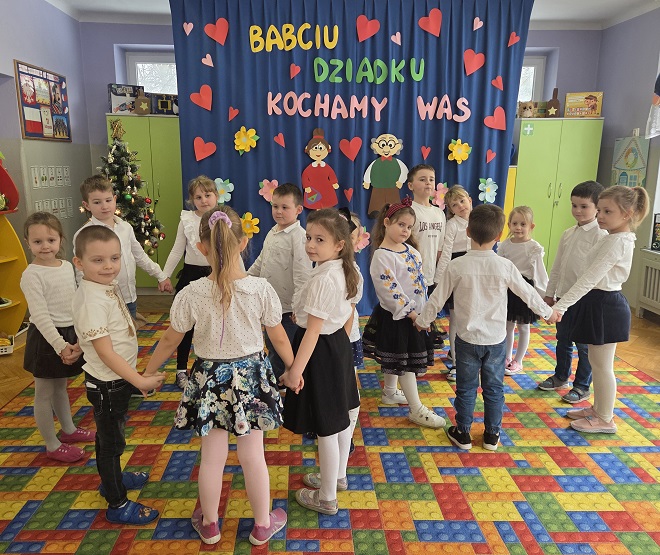 W dniu 26 stycznia 2026 roku w grupie Biedronek odbyła się uroczystość z okazji Dnia Babci i Dziadka. Przedszkolaki miały okazję zaprezentować swoje umiejętności artystyczne i taneczne, recytowały wiersze, śpiewały piosenki dla swoich Kochanych Dziadków. Złożyły życzenia i wręczyły swoim Dziadkom wykonane samodzielnie upominki - kolorowe laurki, kwiaty i zimowa herbatka dla Babci i Dziadka. Na zakończenie występu zaprosiły Dziadków na słodki poczęstunek.