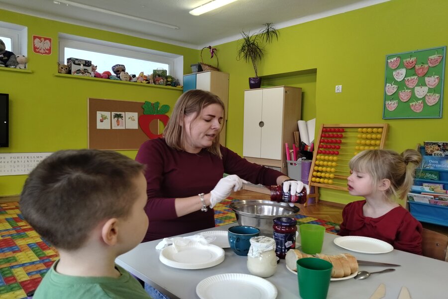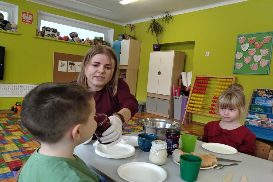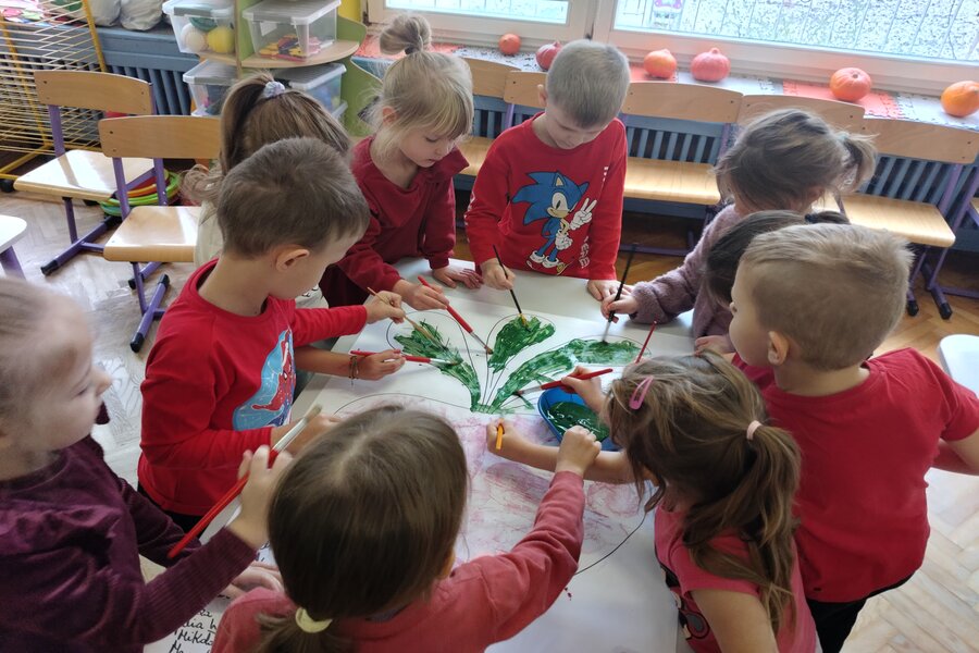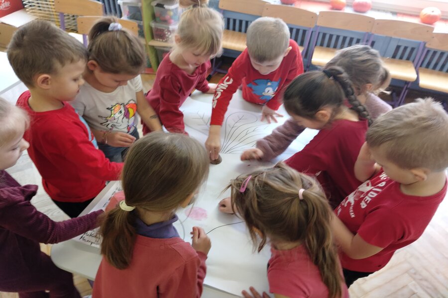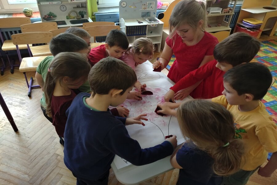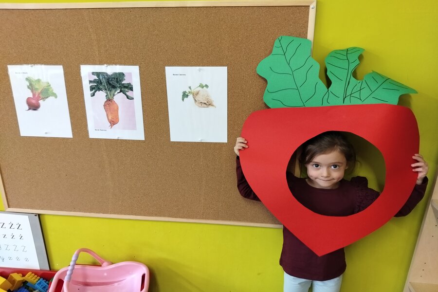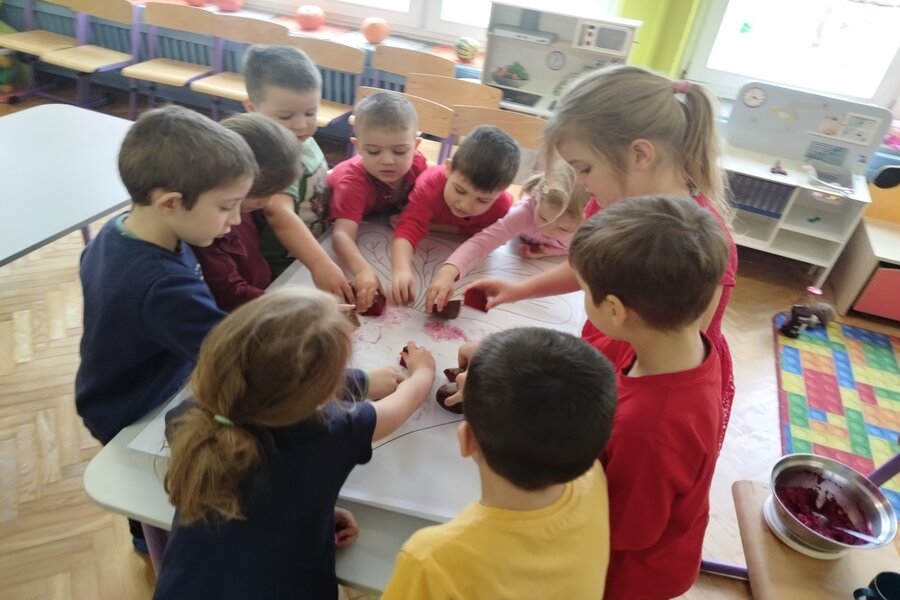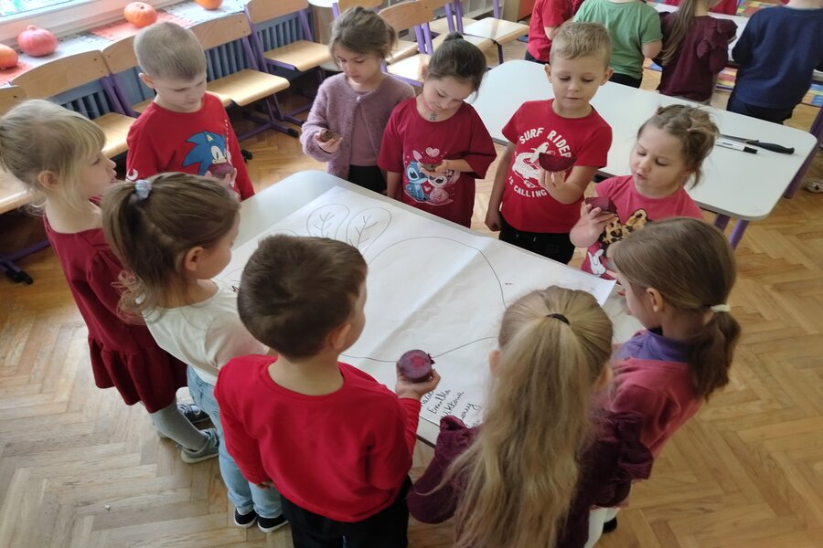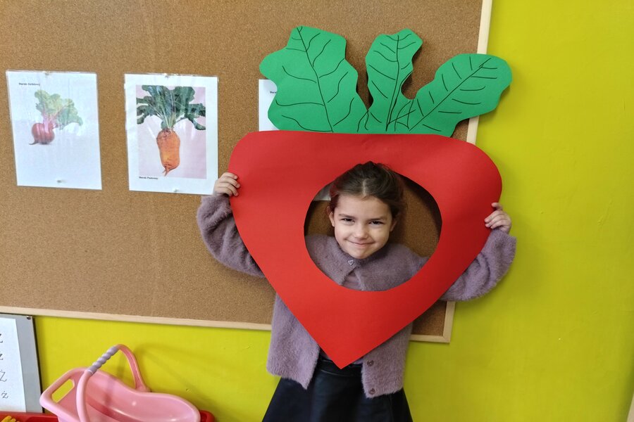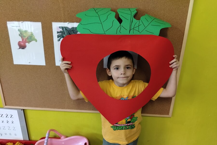 Dzień Buraka obchodzony jest 24 listopada i ma na celu promowanie zdrowego stylu życia oraz zachęcanie dzieci do poznawania warzyw. Dlatego dzisiaj nasze truskawki nie tylko ubrały się w barwy buraczkowe ale także przyniosły buraki ćwikłowe do przedszkola. Wszyscy wspólnie wysłuchaliśmy bajki edukacyjnej pt. ,,Częstujcie się - Burak'' z której dowiedzieliśmy się skąd pochodzi to warzywo, jak można je uprawiać i do czego je używamy w codziennym życiu. Przedszkolaki poznały trzy rodzaje buraków min.: cukrowego i smakowały cukru, pastewnego o którym dowiedziały się iż uprawiany jest na paszę hodowlaną dla zwierząt oraz bohatera dnia buraka ćwikłowego. Wszyscy od rana zrobili sobie zdjęcie w naszej warzywnej fotobudce, tańczyli w parach do piosenki ,,Hop sa sa buraka masz Ty i Ja''. Przedszkolaki wspólnie poznały produkty z buraka takie jak ćwikła, humus oraz sok. Nie wszystkim smakowało wszystko co znalazło się na kanapce czy w kubeczku ale każda truskaweczka spróbowała i wybrała coś dla siebie. Wszyscy mogli też sprawdzić czy burak jest ciężki czy lekki a może twardy albo miękki, bawiąc się przy tym znakomicie. Na koniec w zespołach wykonaliśmy plakat ,,Buraka ćwikłowego'', prace można podziwiać w szatni na tablicy naszej grupy.