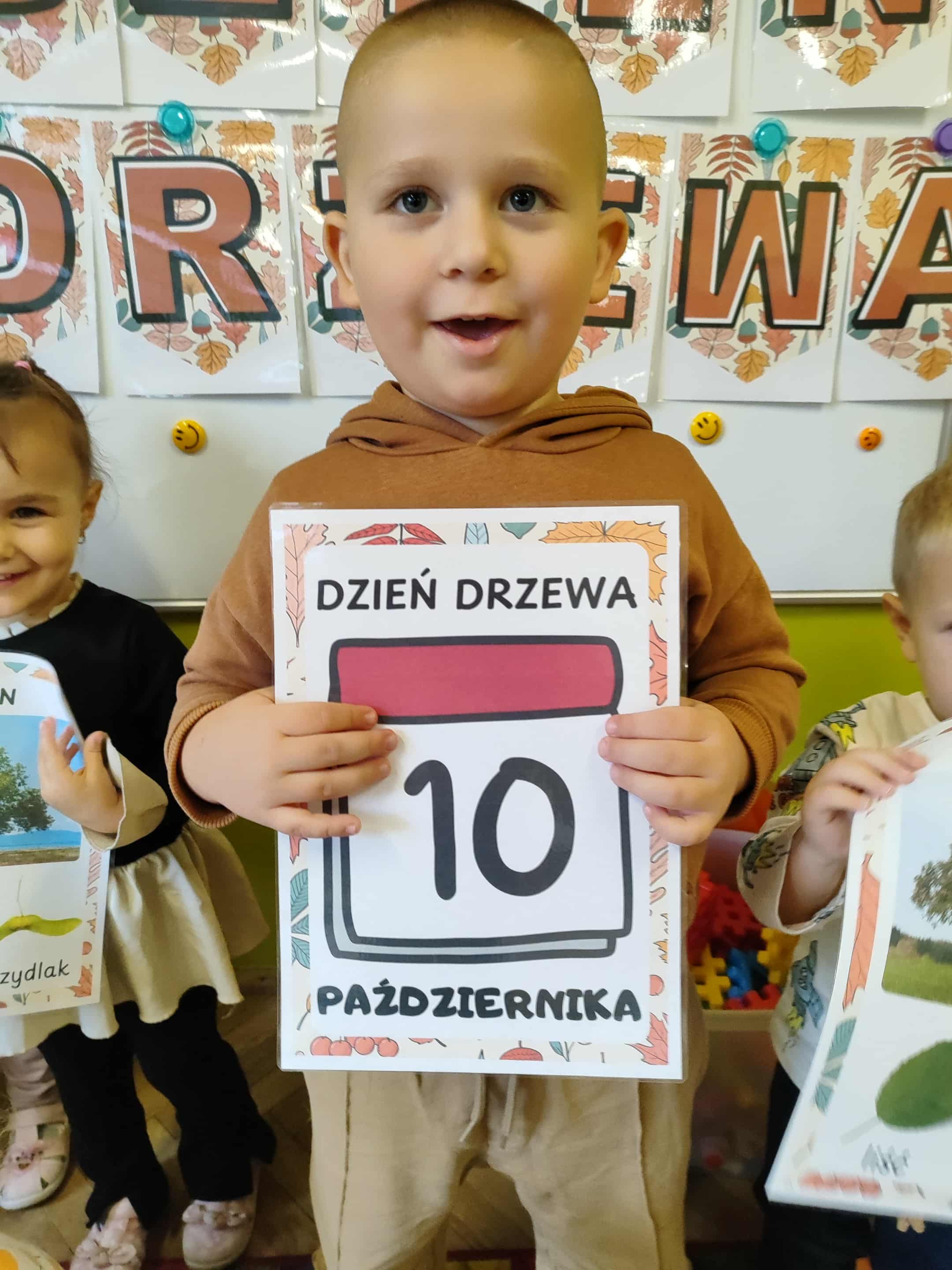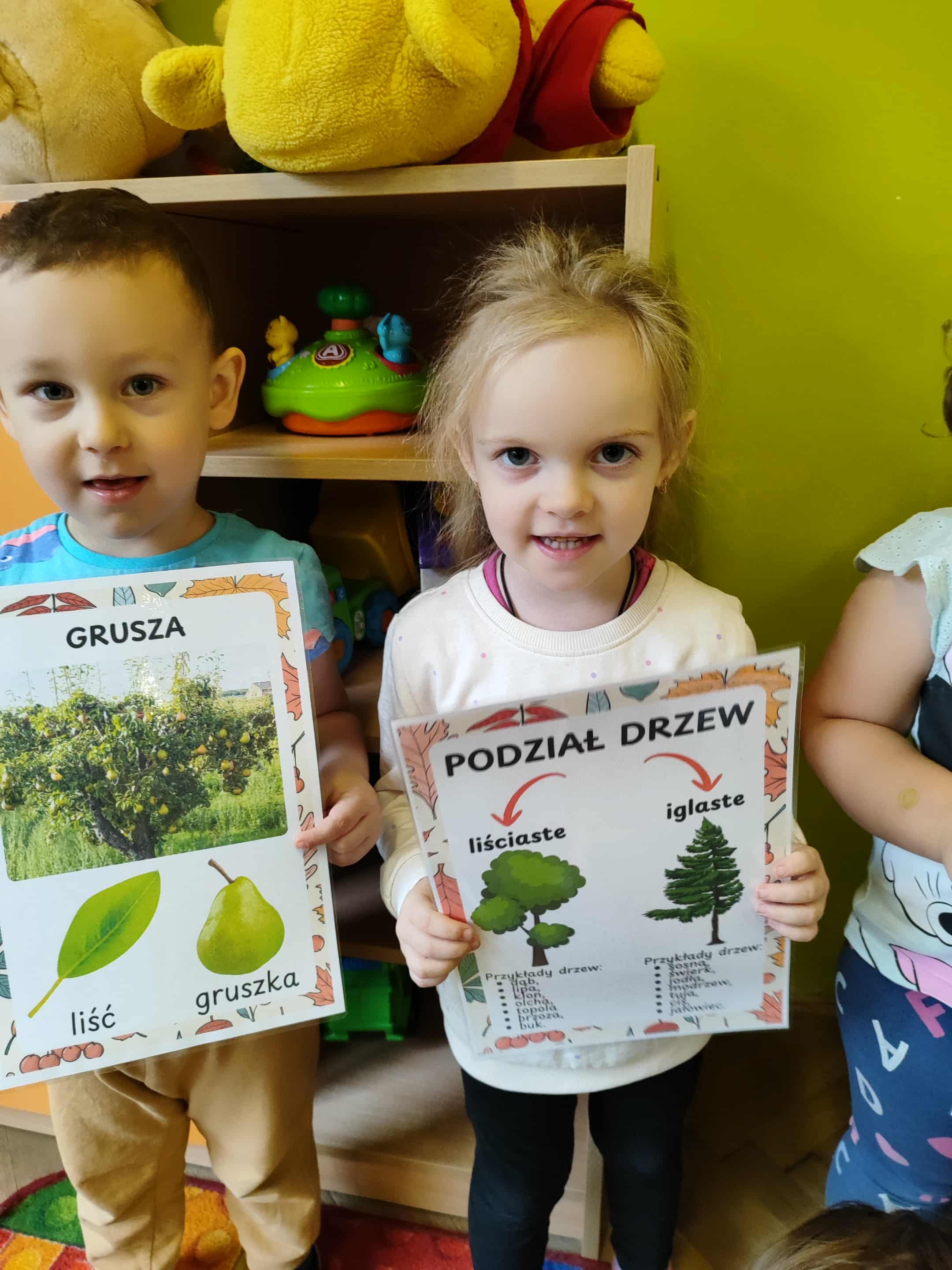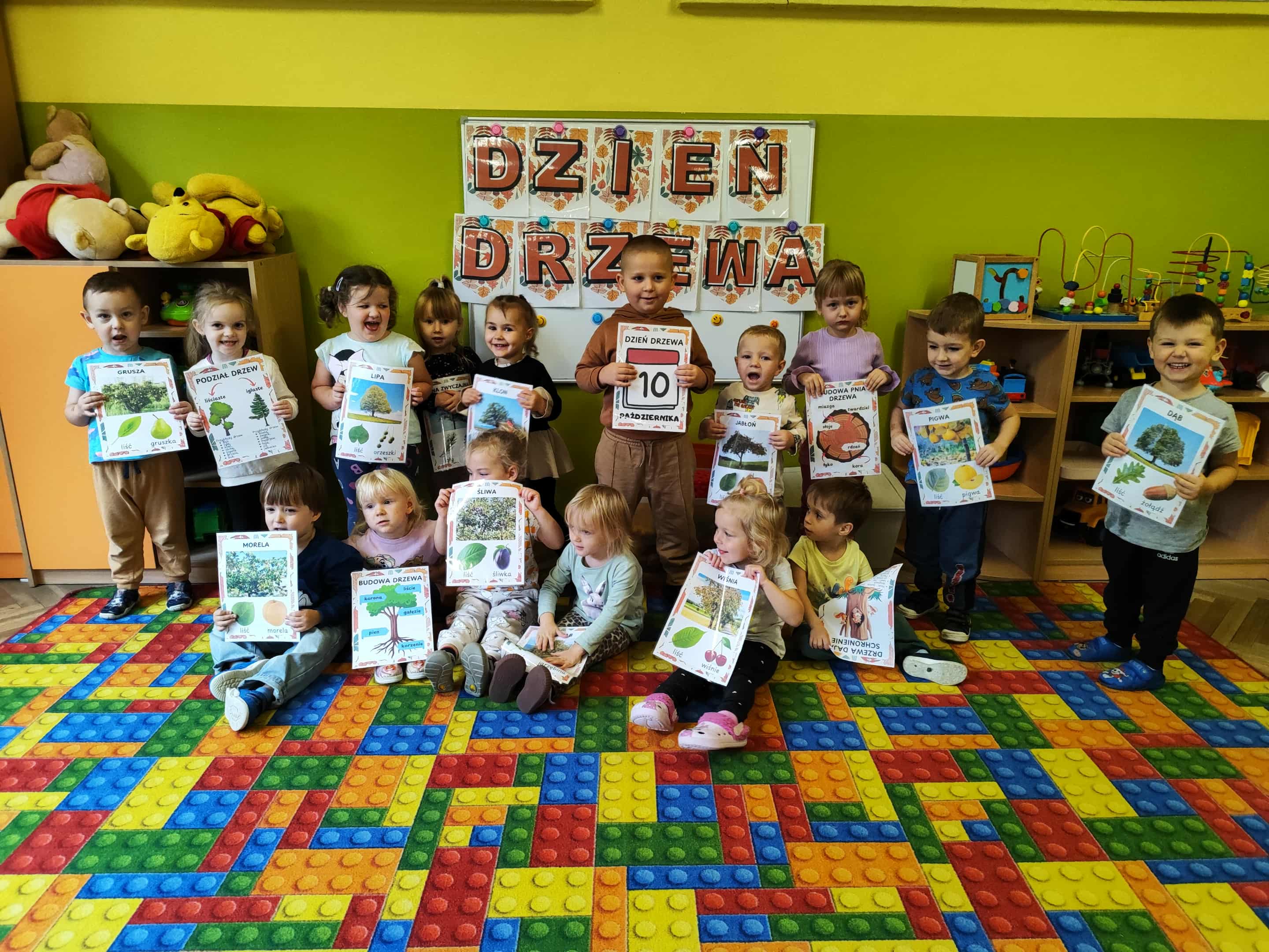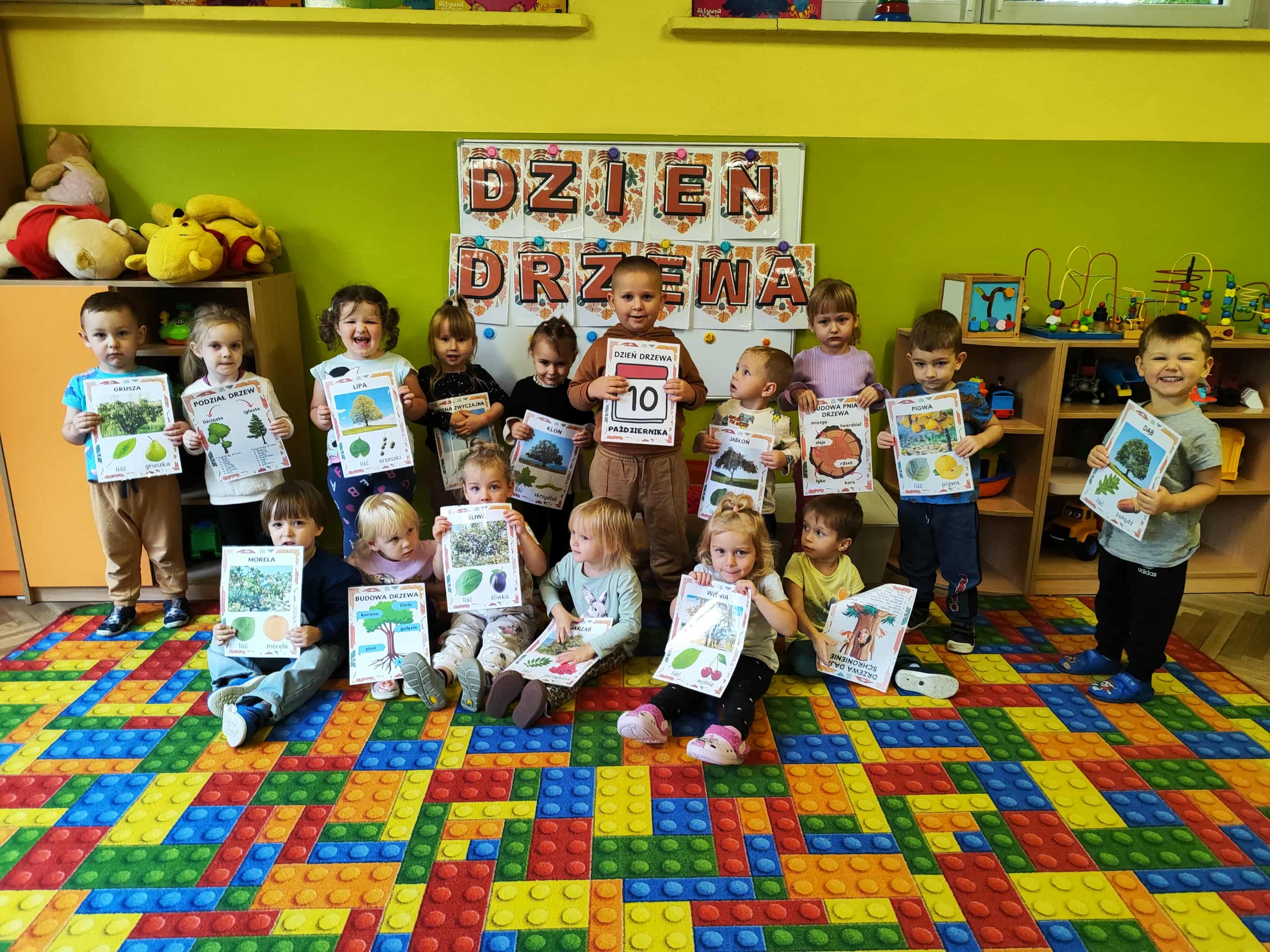 Dzieci poznały między innymi budowę drzewa, etapy jego wzrostu, nauczyły się odróżniać drzewa liściaste od iglastych, nazywać poszczególne drzewa i jego owoce- np. dąb- żołędzie, kasztanowiec- kasztany, jabłoń- jabłka itp. Dzieci wykonały piękne prace plastyczne, których bohaterem było oczywiście drzewo. W tym dniu nie zabrakło również zabaw muzycznych i ruchowych inspirowanych drzewami.
