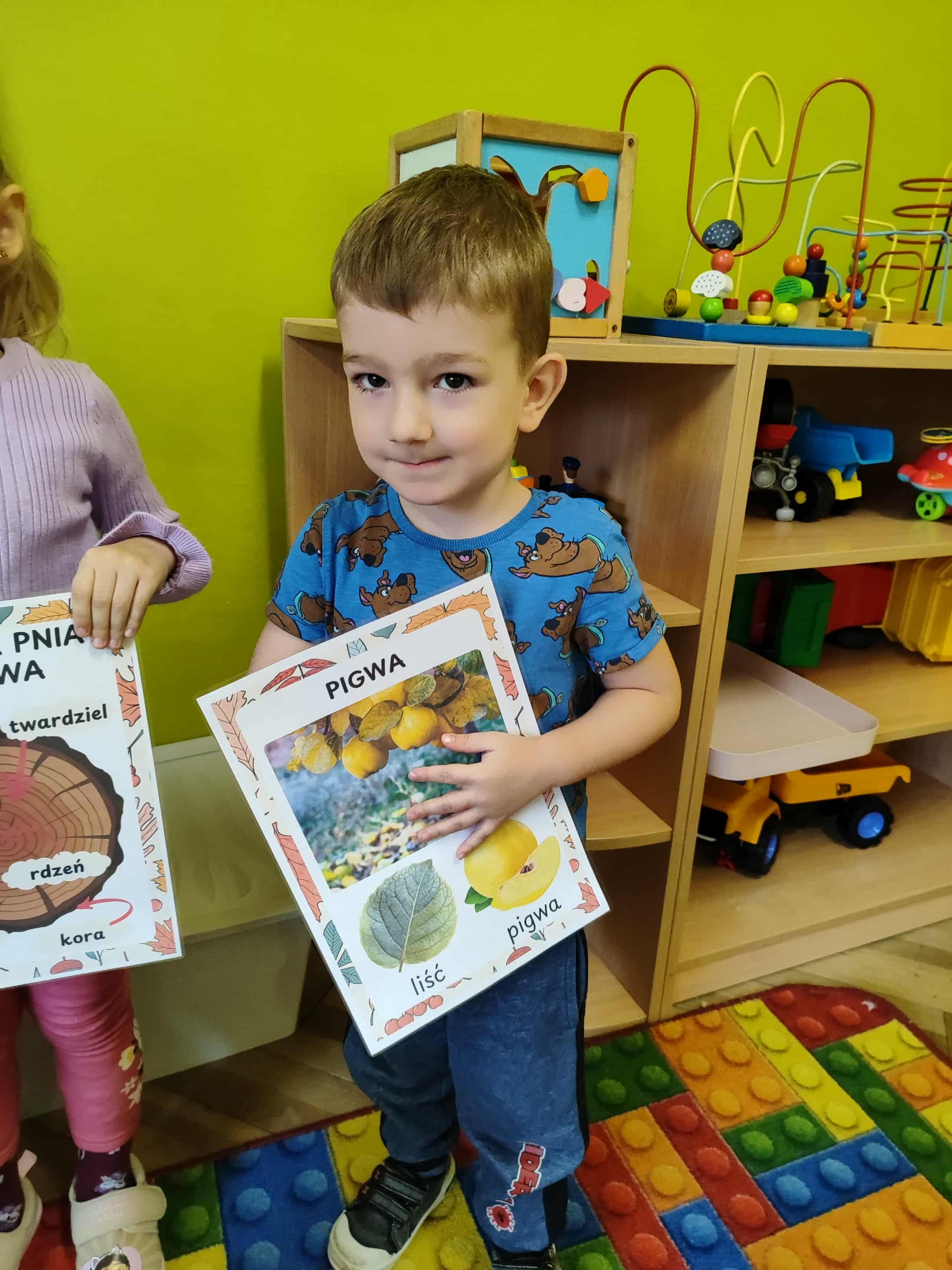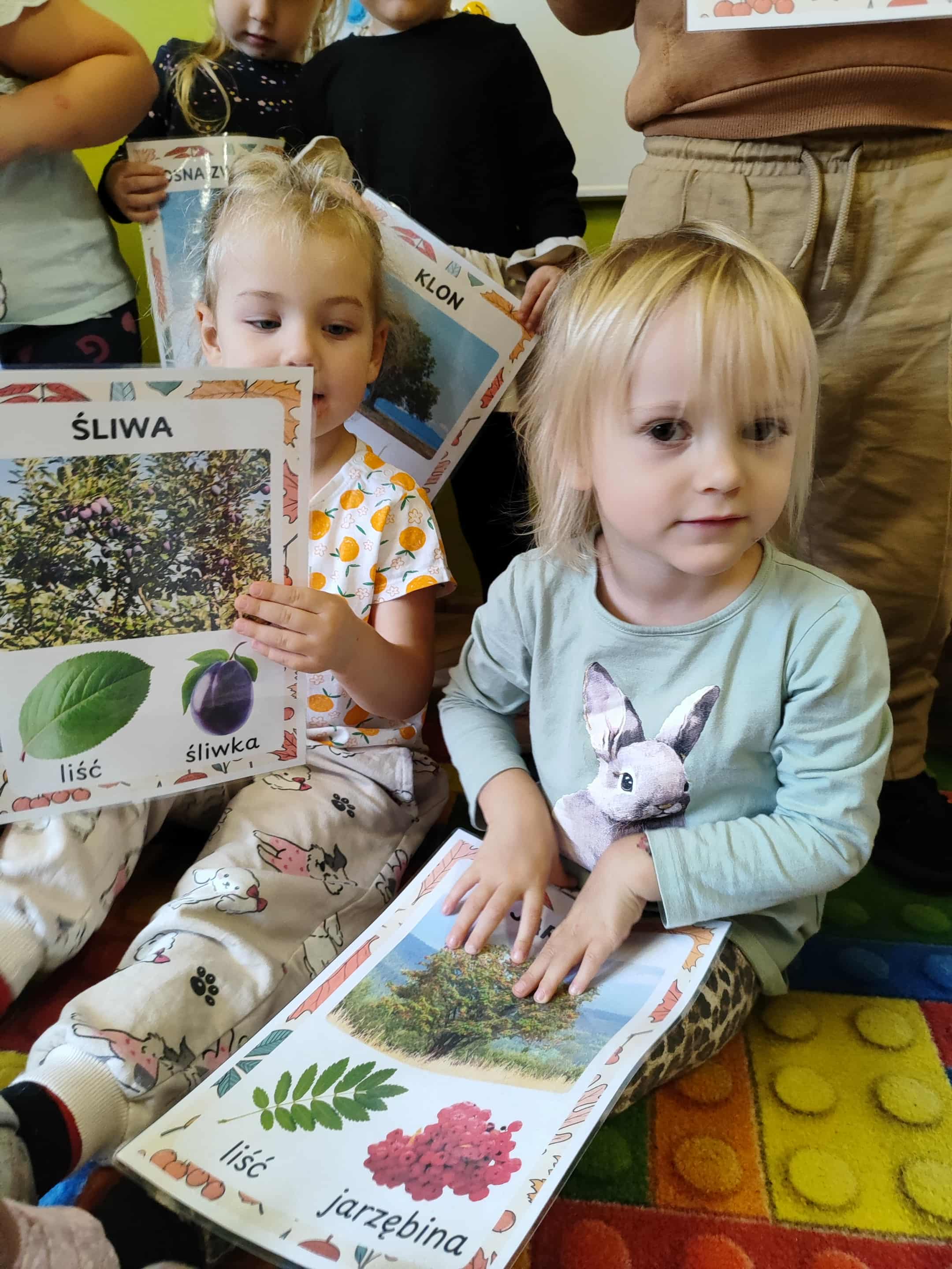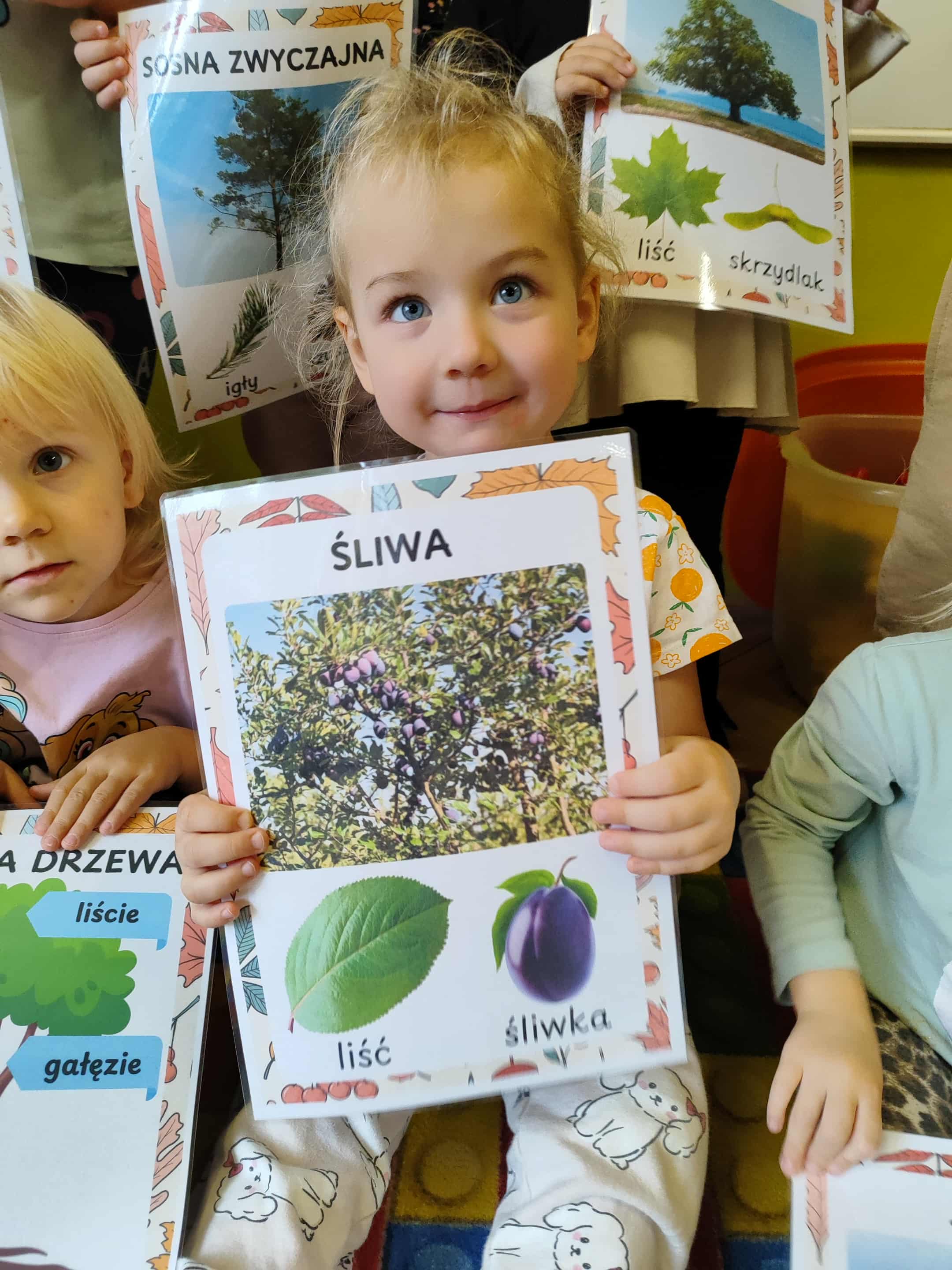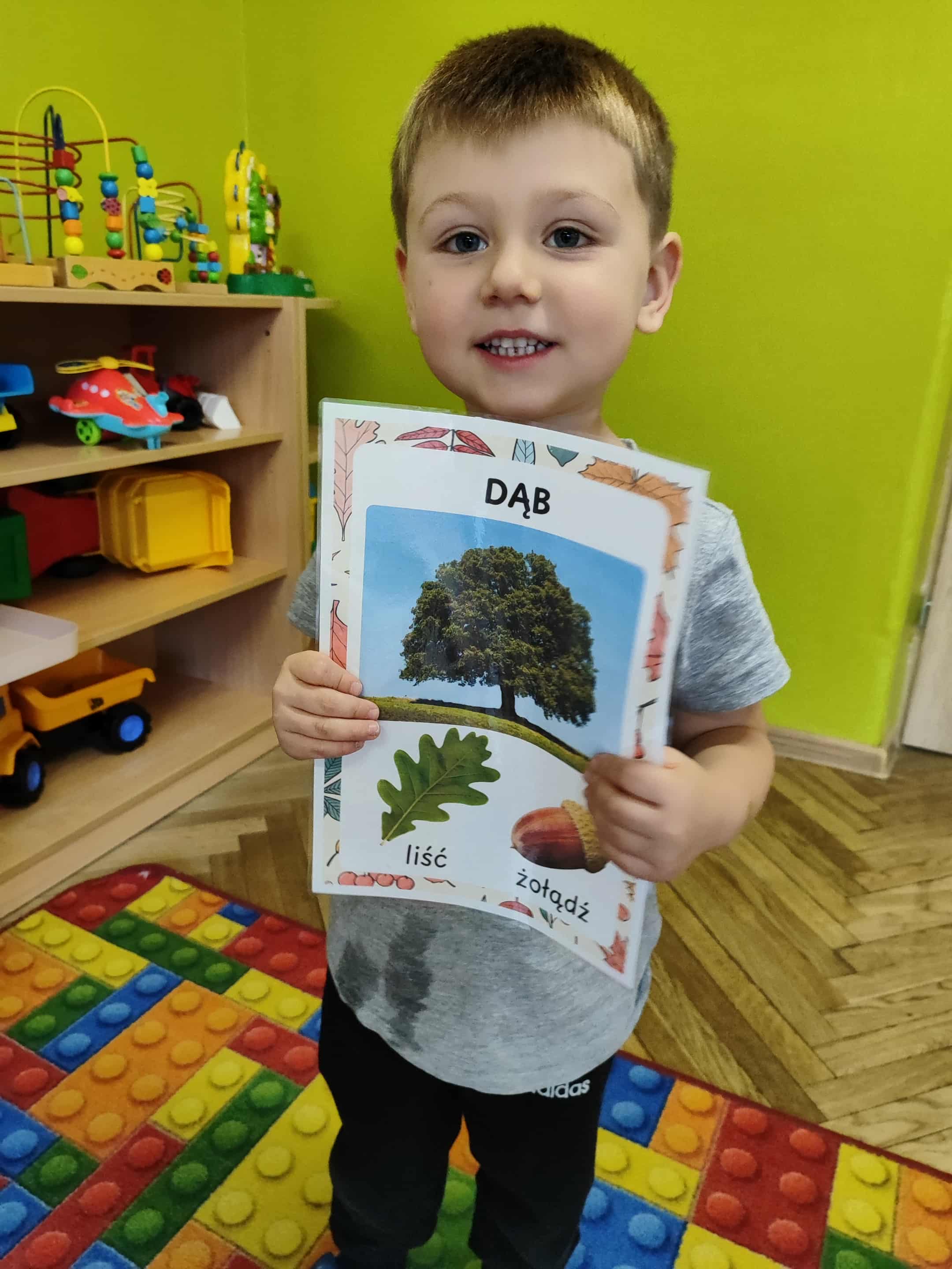 Dzieci poznały między innymi budowę drzewa, etapy jego wzrostu, nauczyły się odróżniać drzewa liściaste od iglastych, nazywać poszczególne drzewa i jego owoce- np. dąb- żołędzie, kasztanowiec- kasztany, jabłoń- jabłka itp. Dzieci wykonały piękne prace plastyczne, których bohaterem było oczywiście drzewo. W tym dniu nie zabrakło również zabaw muzycznych i ruchowych inspirowanych drzewami.