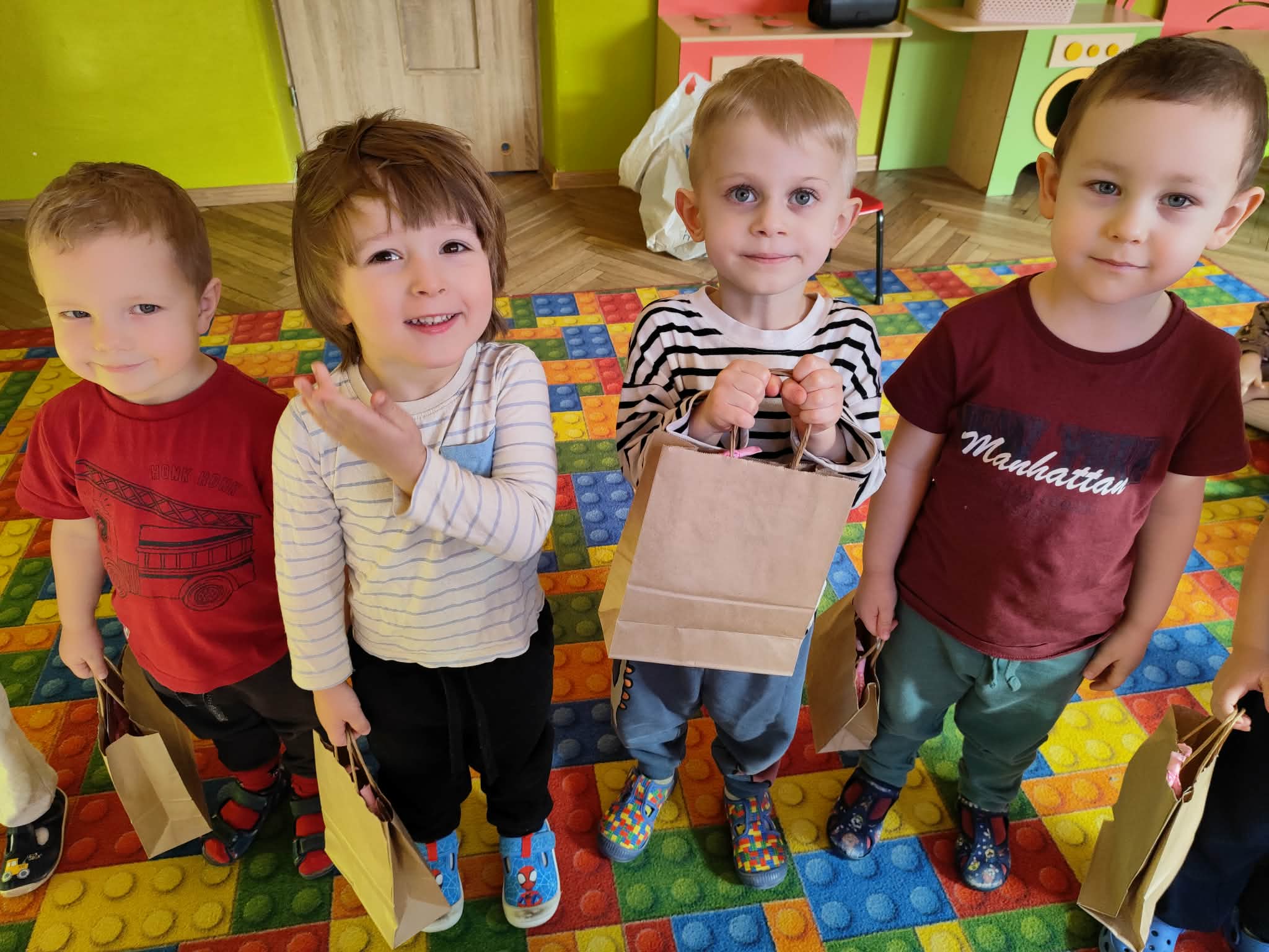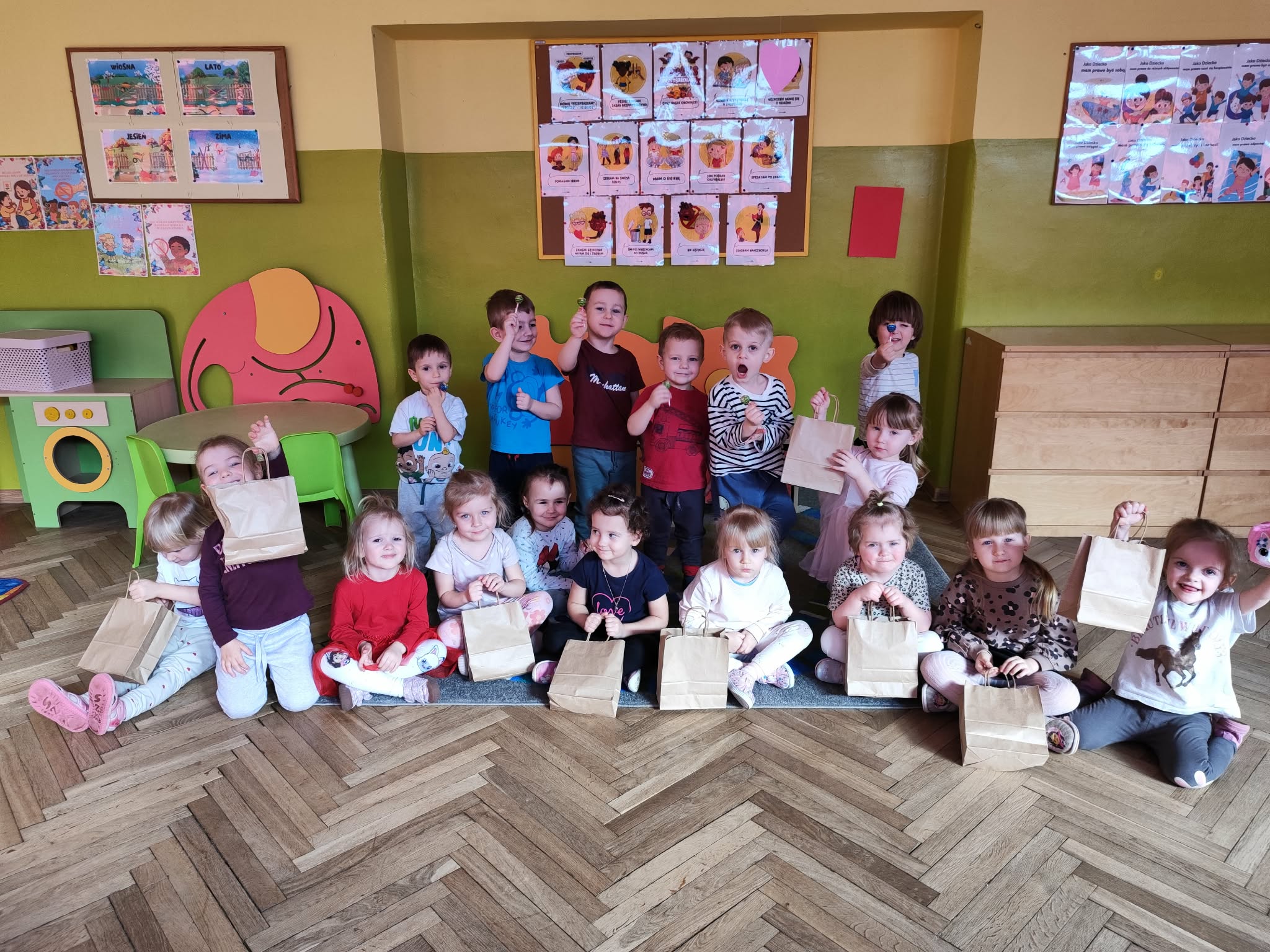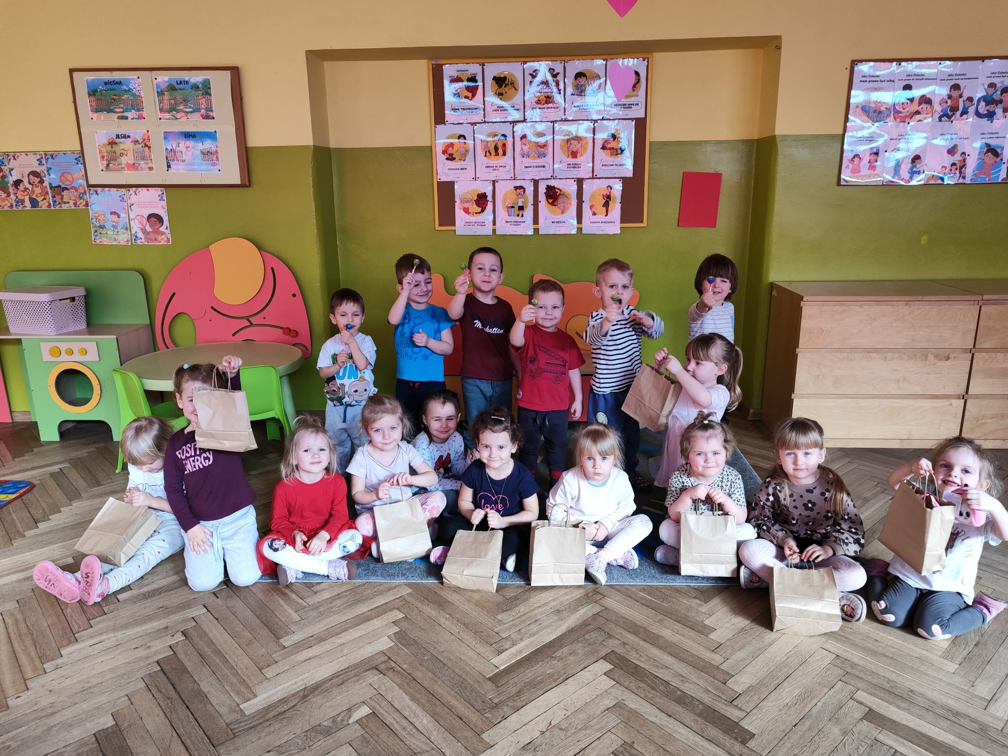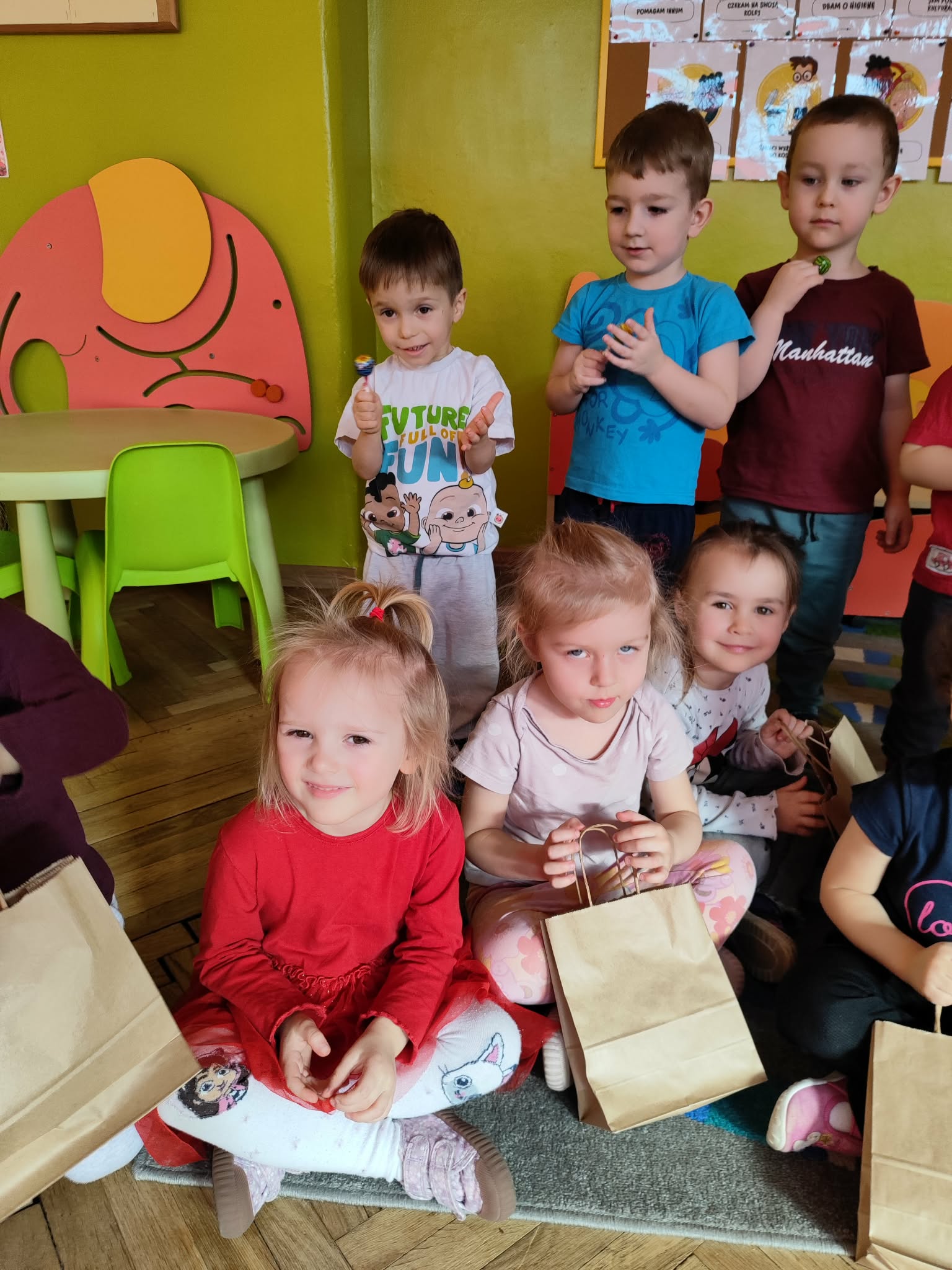 Dzień Kobiet to wyjątkowy dzień, ważny dla wszystkich kobiet, zarówno tych dużych, jak i małych, 6 marca odbyła się uroczystość z tej okazji. Radosna atmosfera panowała już od samego rana. W tym szczególnym dniu wszystkie kobietki otrzymały serdeczne życzenia i upominki. Chłopcy złożyli życzenia, tradycyjnie zaśpiewali swoim koleżankom uroczyste „100 lat”, i wręczyli piękne laurki i niespodzianki. Chłopcy ze szczególnym zaangażowaniem starali się, aby ten dzień uczynić wyjątkowo miłym. Jako mali dżentelmeni wyręczali dziewczynki w codziennych obowiązkach między innymi w porządkowaniu sali po zabawie. Było można usłyszeć taneczną muzykę, w rytm której bawiły się zarówno dziewczynki jak i chłopcy. Wiele radości sprawiły dzieciom przygotowane z tej okazji zabawy i konkurencje. Uśmiechnięte buzie przedszkolaków, a zwłaszcza dziewczynek świadczyły o miło spędzonym czasie.