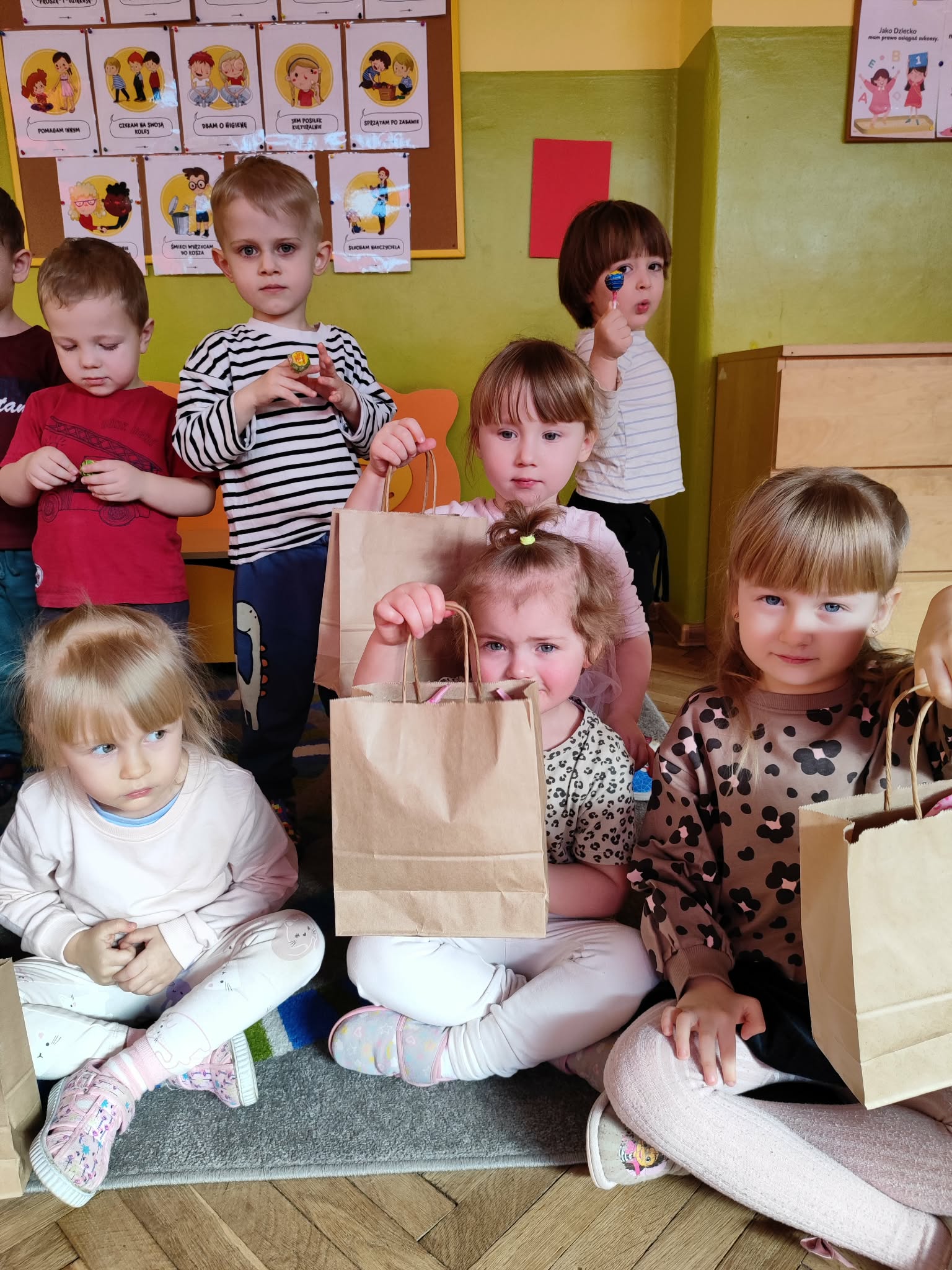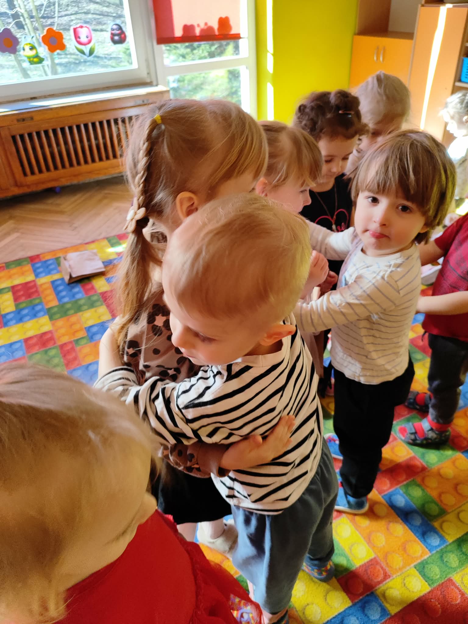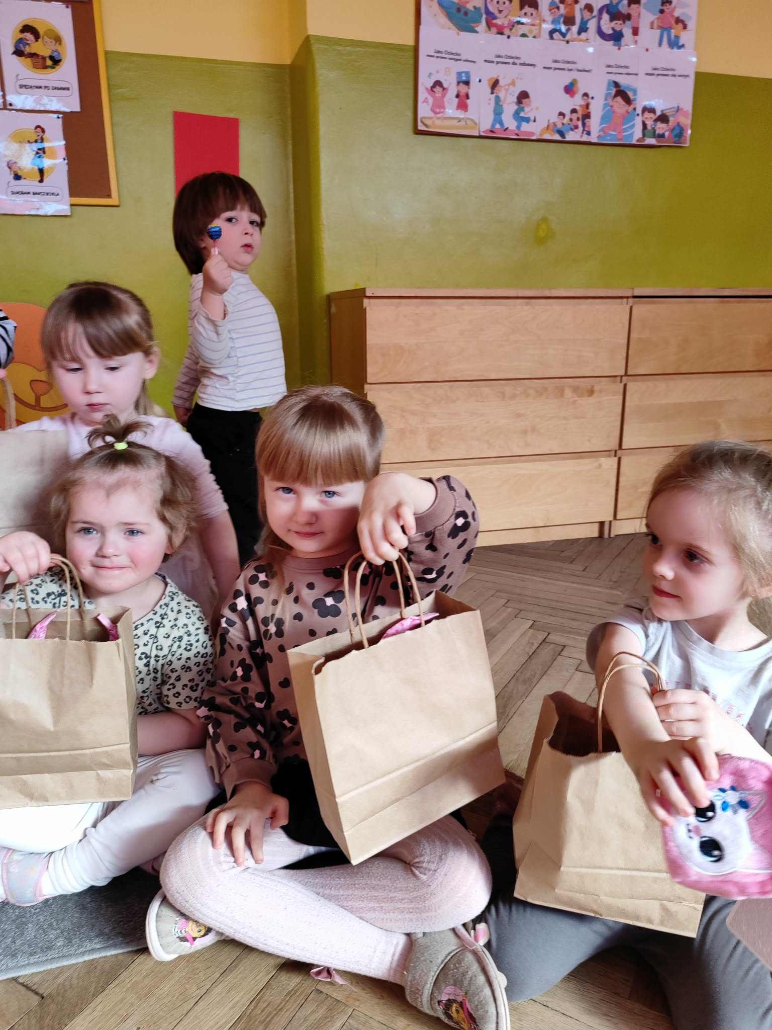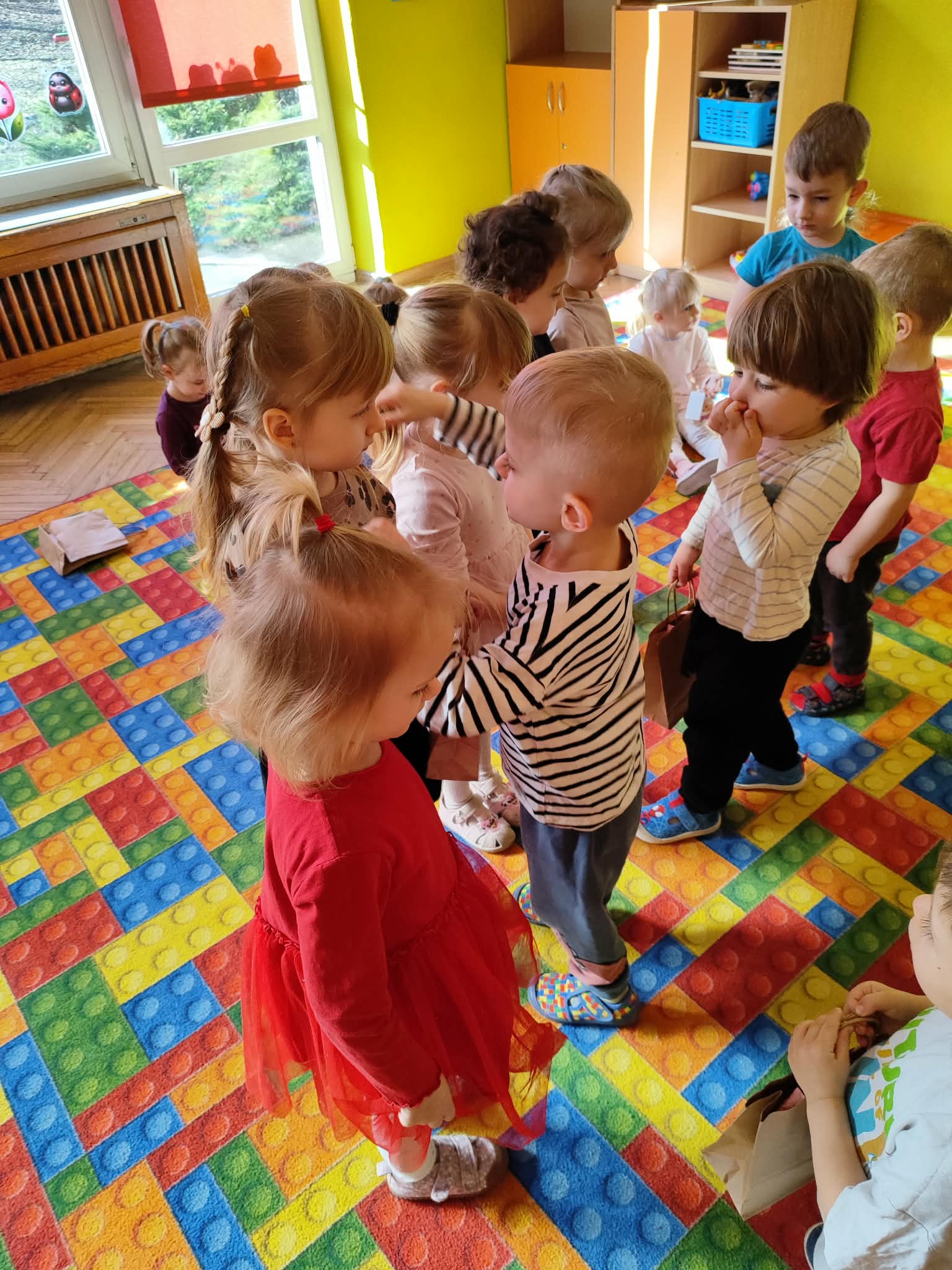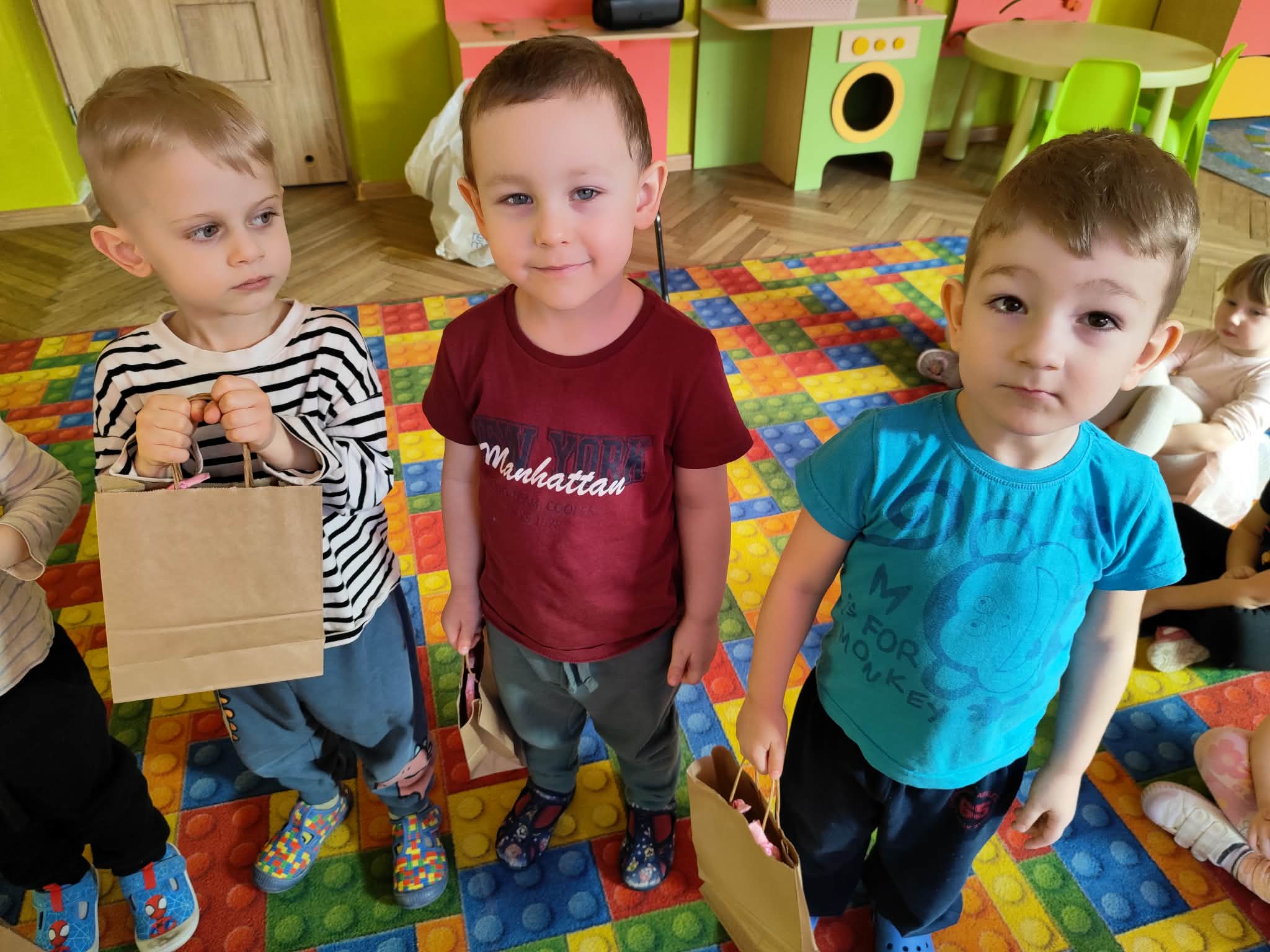 Dzień Kobiet to wyjątkowy dzień, ważny dla wszystkich kobiet, zarówno tych dużych, jak i małych, 6 marca odbyła się uroczystość z tej okazji. Radosna atmosfera panowała już od samego rana. W tym szczególnym dniu wszystkie kobietki otrzymały serdeczne życzenia i upominki. Chłopcy złożyli życzenia, tradycyjnie zaśpiewali swoim koleżankom uroczyste „100 lat”, i wręczyli piękne laurki i niespodzianki. Chłopcy ze szczególnym zaangażowaniem starali się, aby ten dzień uczynić wyjątkowo miłym. Jako mali dżentelmeni wyręczali dziewczynki w codziennych obowiązkach między innymi w porządkowaniu sali po zabawie. Było można usłyszeć taneczną muzykę, w rytm której bawiły się zarówno dziewczynki jak i chłopcy. Wiele radości sprawiły dzieciom przygotowane z tej okazji zabawy i konkurencje. Uśmiechnięte buzie przedszkolaków, a zwłaszcza dziewczynek świadczyły o miło spędzonym czasie.
