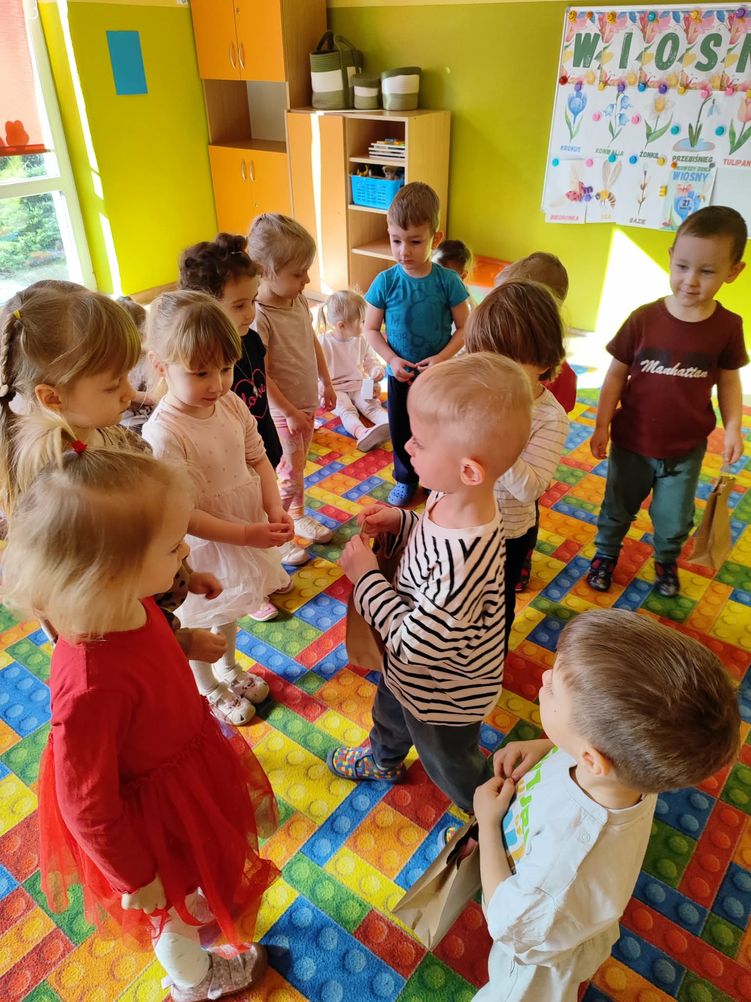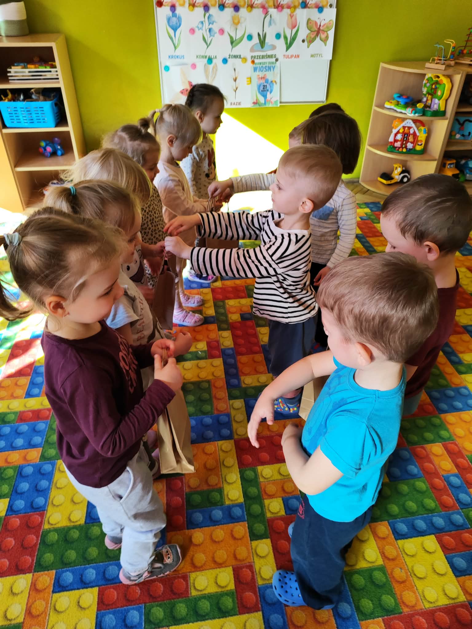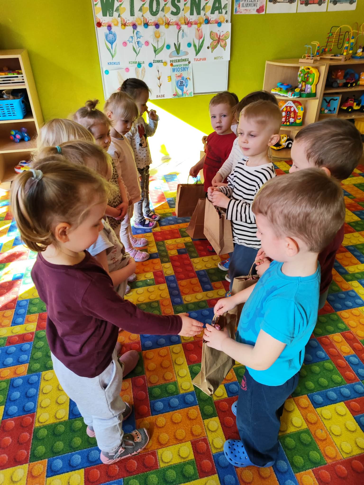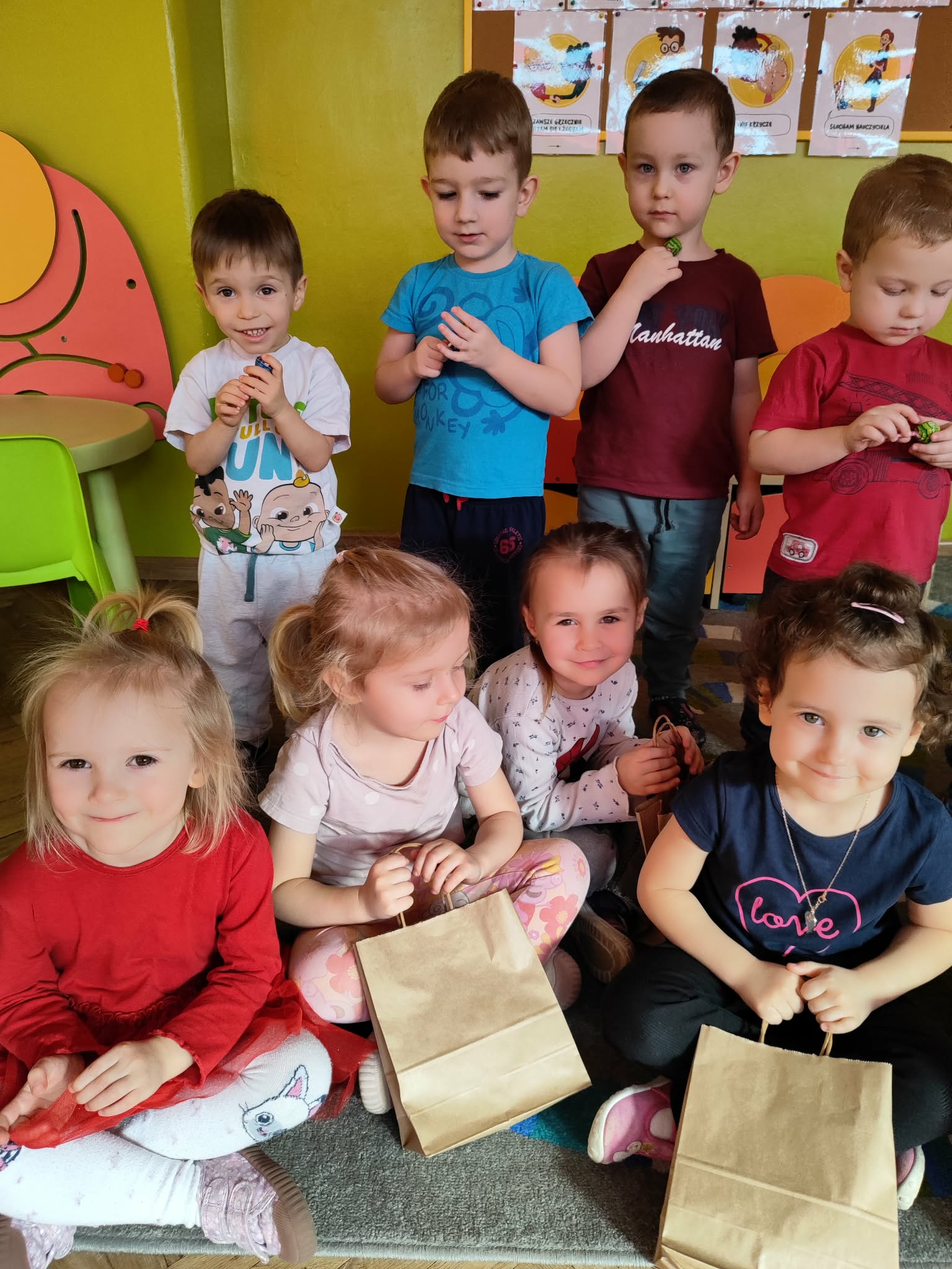 Dzień Kobiet to wyjątkowy dzień, ważny dla wszystkich kobiet, zarówno tych dużych, jak i małych, 6 marca odbyła się uroczystość z tej okazji. Radosna atmosfera panowała już od samego rana. W tym szczególnym dniu wszystkie kobietki otrzymały serdeczne życzenia i upominki. Chłopcy złożyli życzenia, tradycyjnie zaśpiewali swoim koleżankom uroczyste „100 lat”, i wręczyli piękne laurki i niespodzianki. Chłopcy ze szczególnym zaangażowaniem starali się, aby ten dzień uczynić wyjątkowo miłym. Jako mali dżentelmeni wyręczali dziewczynki w codziennych obowiązkach między innymi w porządkowaniu sali po zabawie. Było można usłyszeć taneczną muzykę, w rytm której bawiły się zarówno dziewczynki jak i chłopcy. Wiele radości sprawiły dzieciom przygotowane z tej okazji zabawy i konkurencje. Uśmiechnięte buzie przedszkolaków, a zwłaszcza dziewczynek świadczyły o miło spędzonym czasie.