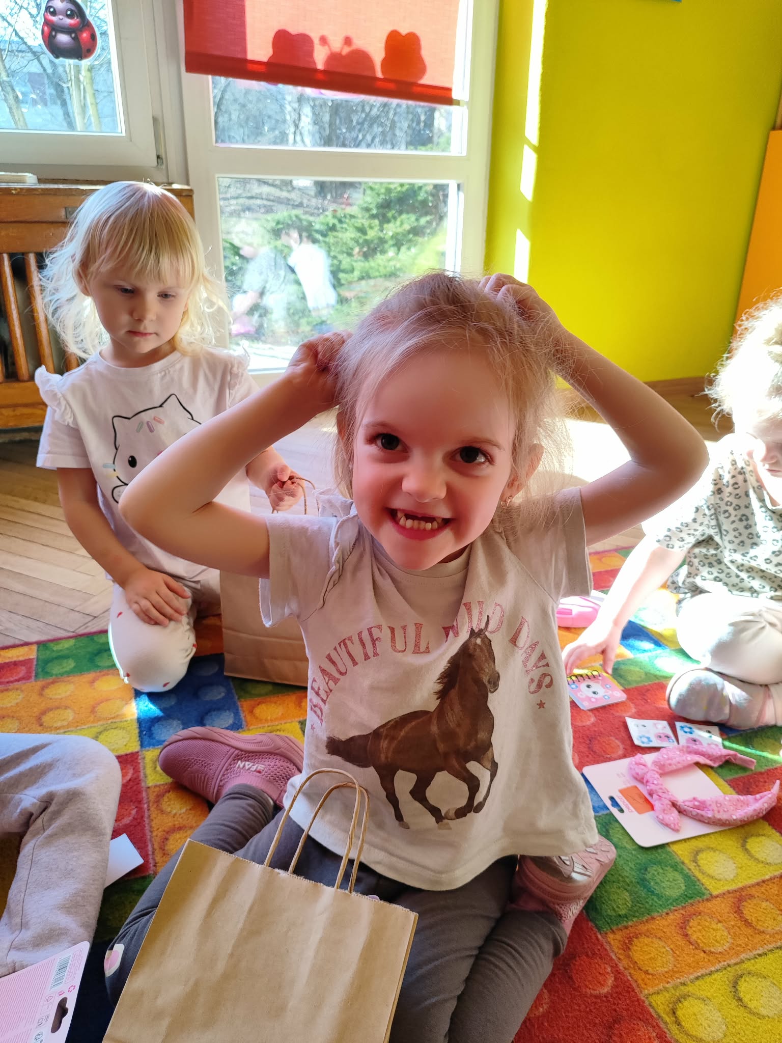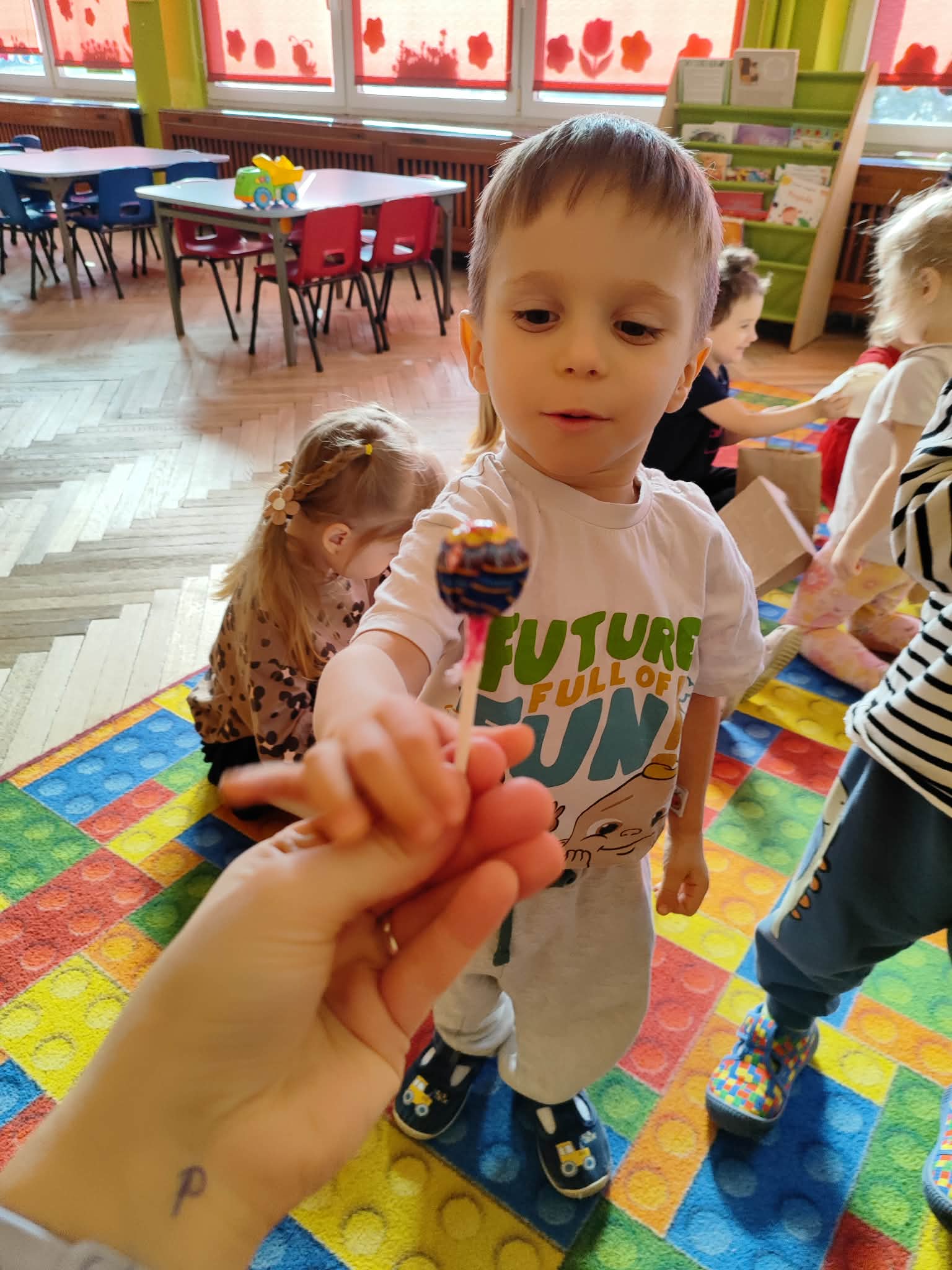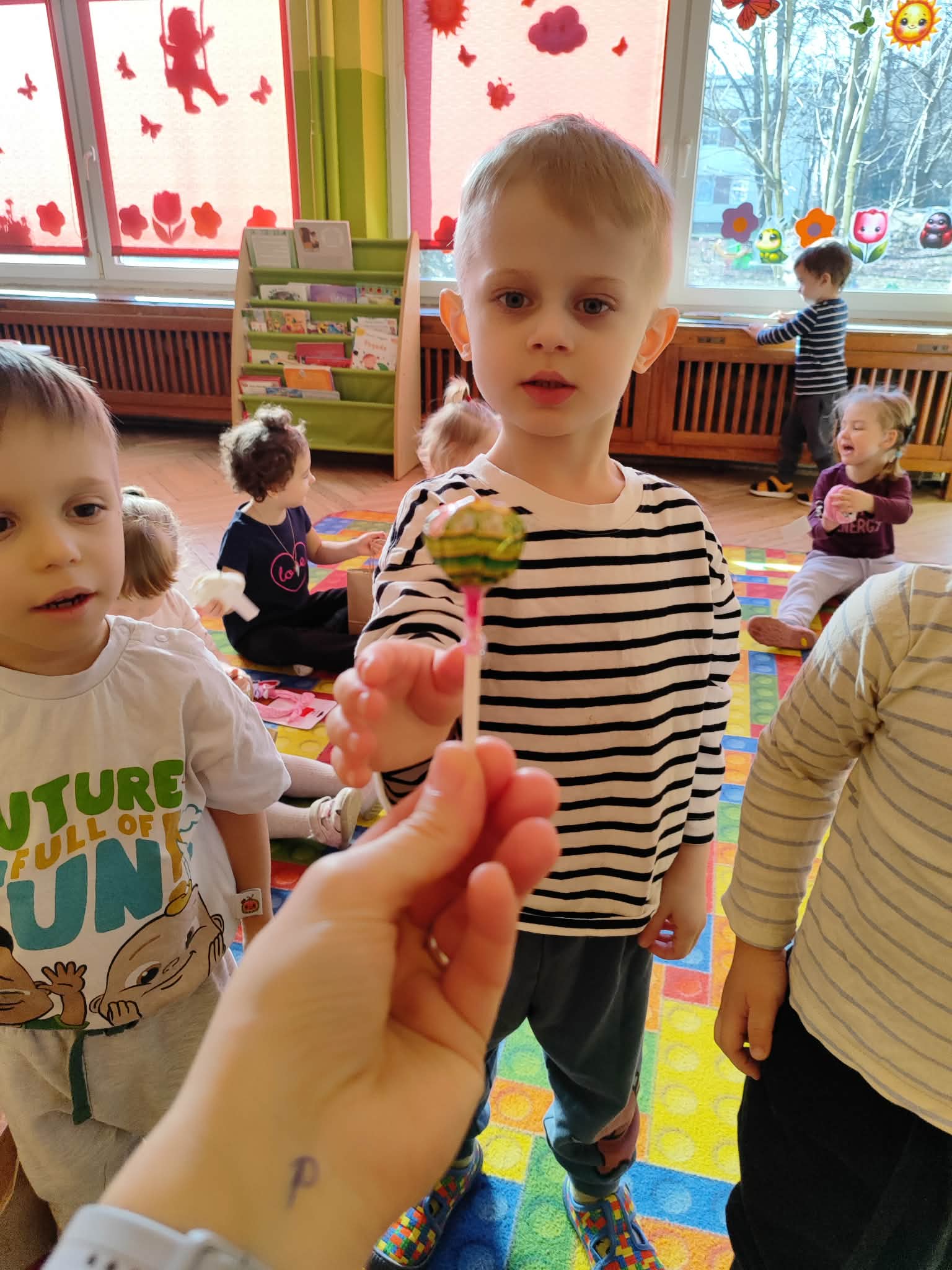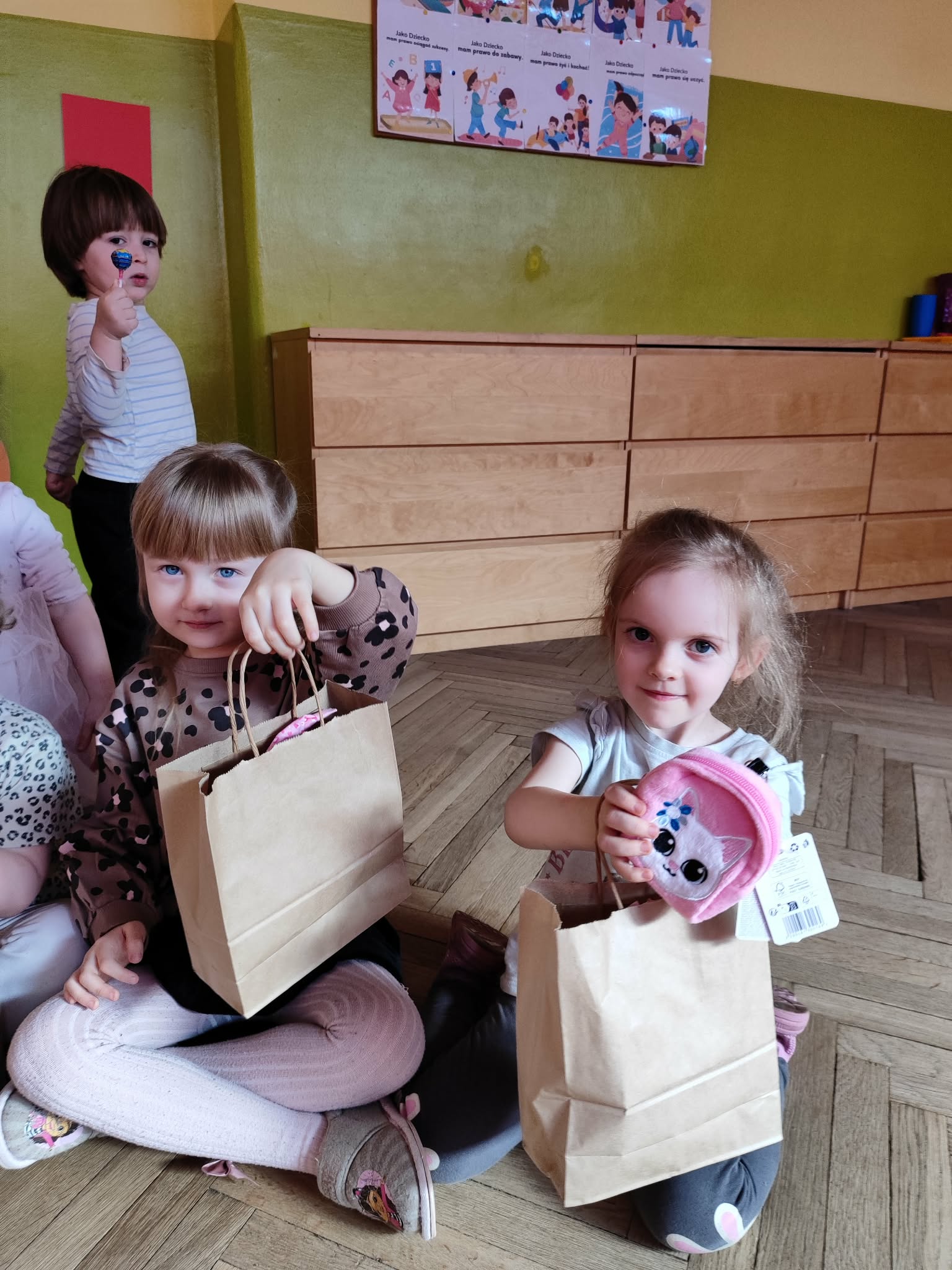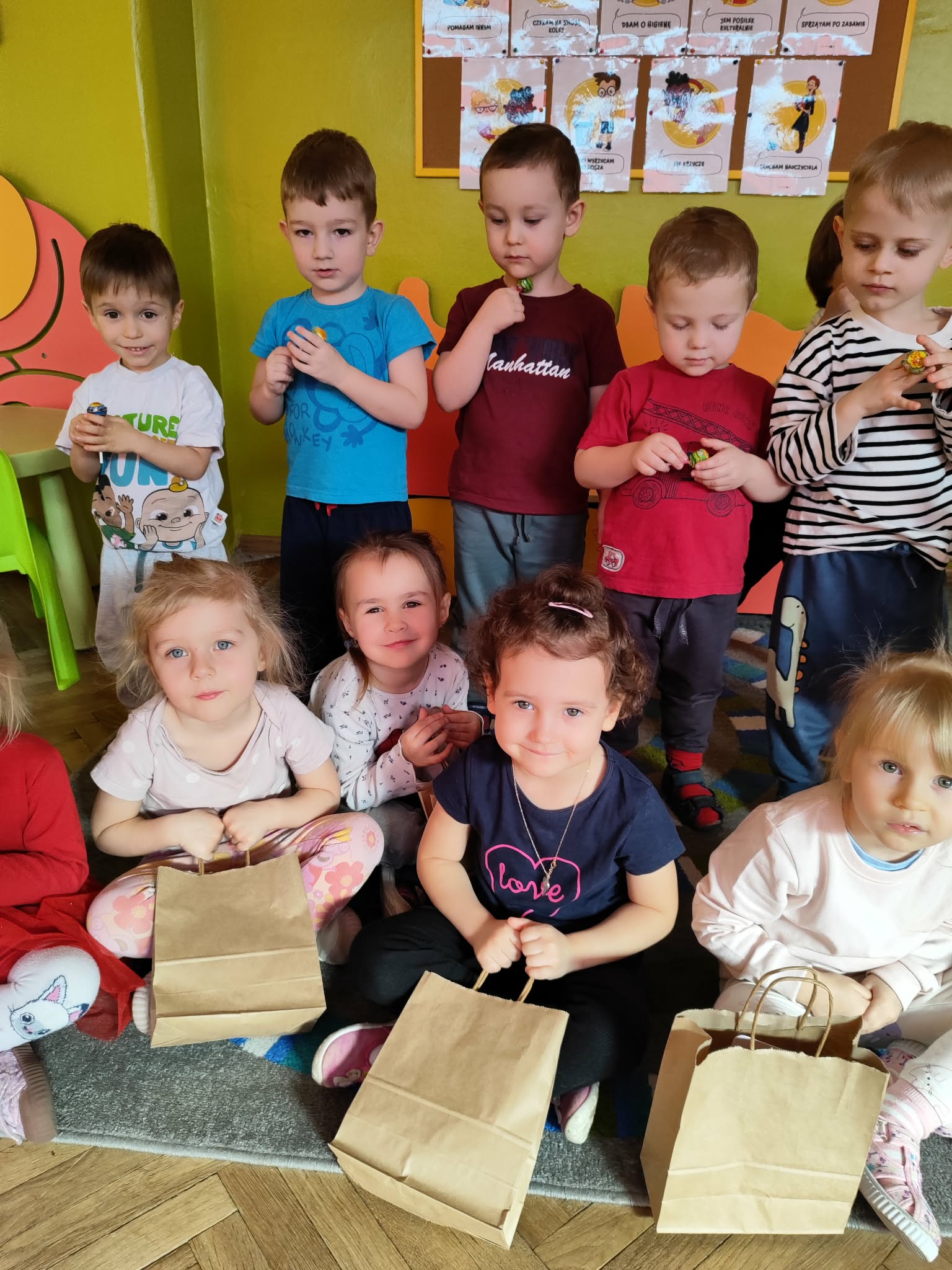 Dzień Kobiet to wyjątkowy dzień, ważny dla wszystkich kobiet, zarówno tych dużych, jak i małych, 6 marca odbyła się uroczystość z tej okazji. Radosna atmosfera panowała już od samego rana. W tym szczególnym dniu wszystkie kobietki otrzymały serdeczne życzenia i upominki. Chłopcy złożyli życzenia, tradycyjnie zaśpiewali swoim koleżankom uroczyste „100 lat”, i wręczyli piękne laurki i niespodzianki. Chłopcy ze szczególnym zaangażowaniem starali się, aby ten dzień uczynić wyjątkowo miłym. Jako mali dżentelmeni wyręczali dziewczynki w codziennych obowiązkach między innymi w porządkowaniu sali po zabawie. Było można usłyszeć taneczną muzykę, w rytm której bawiły się zarówno dziewczynki jak i chłopcy. Wiele radości sprawiły dzieciom przygotowane z tej okazji zabawy i konkurencje. Uśmiechnięte buzie przedszkolaków, a zwłaszcza dziewczynek świadczyły o miło spędzonym czasie.