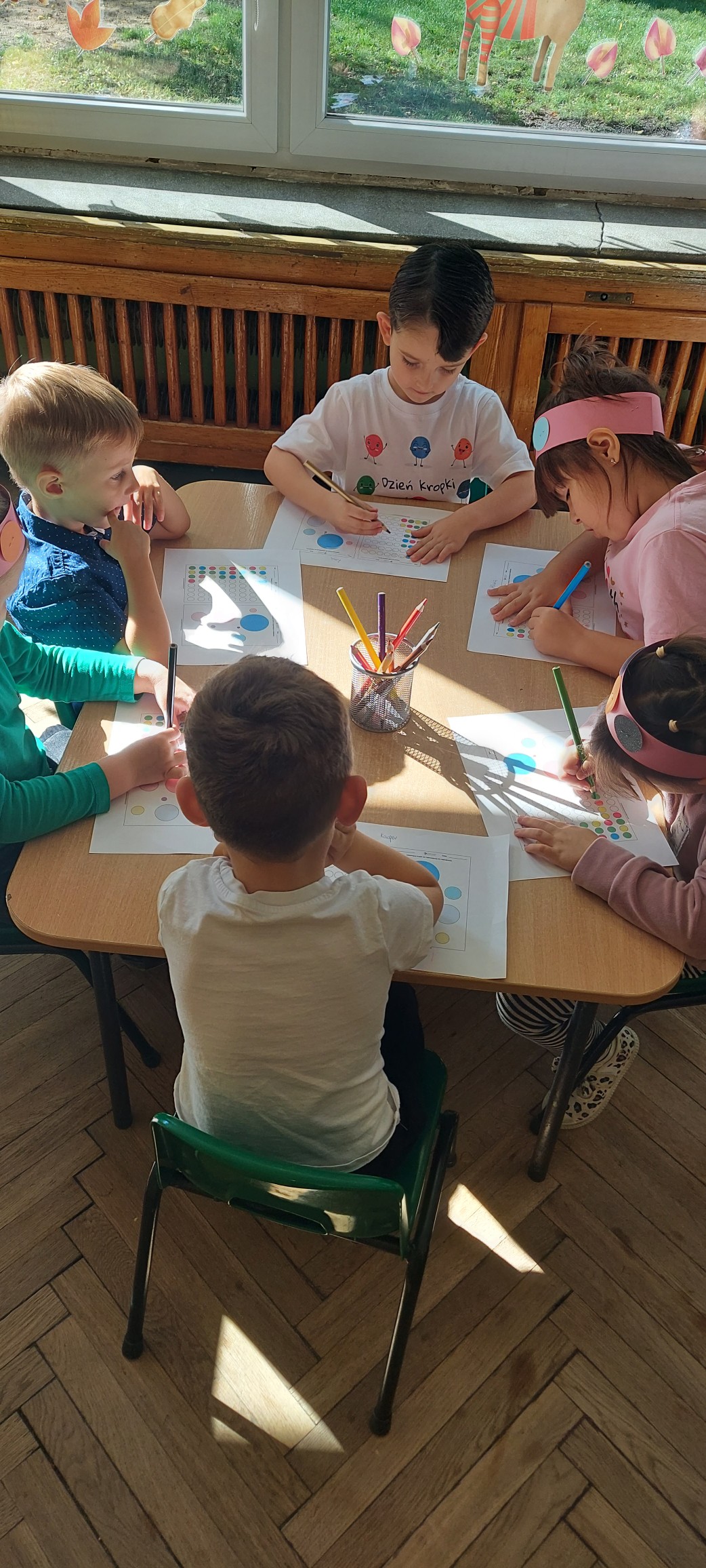 We wrześniu obchodziliśmy Dzień Kropki! Dzieci wykonywały różne zadania i działania związane z kropką – wypełniały karty pracy, tworzyły kropkowe prace plastyczne oraz rozwijały swoją kreatywność i wyobraźnię. To był pełen kolorów i radości dzień!