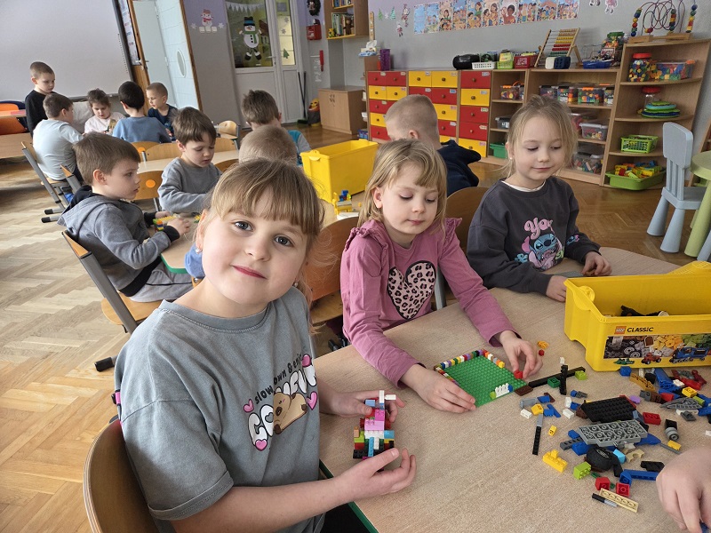 Przedszkolaki z grupy Biedronek w dniu 29 stycznia 2026r. obchodziły Dzień Lego. Dzień Lego to święto, które łączy kreatywność, naukę i zabawę. Kolorowe klocki stały się inspiracją do wielu ciekawych aktywności, przedszkolaki budowały własne konstrukcje z klocków Lego, liczyły, sortowały i porównywały klocki według koloru i kształtu oraz uczestniczyły w zabawach zespołowych na kreatywną konstrukcję.