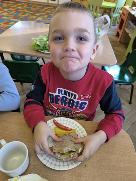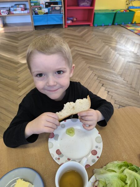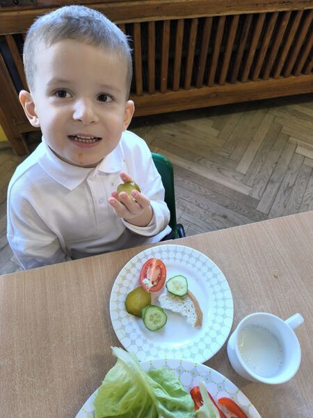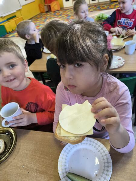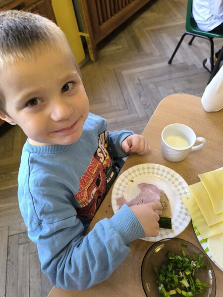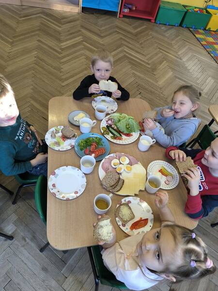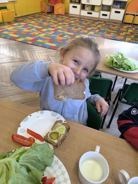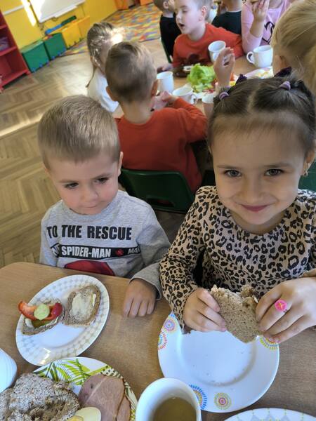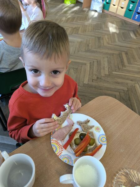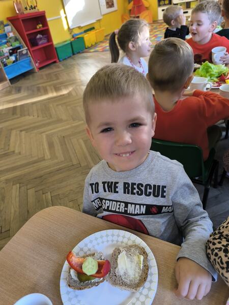6 listopada w naszej grupie obchodziliśmy Dzień Zdrowego Śniadania. Dzieci przyniosły z domu zdrowe produkty - świeże warzywa, owoce oraz różne rodzaje pieczywa. Wspólnie rozmawialiśmy o tym, jak ważne jest jedzenie pożywnego śniadania każdego dnia, a następnie każdy przedszkolak samodzielnie skomponował swoją zdrową kanapkę. Było zdrowo, kolorowo i bardzo smacznie!