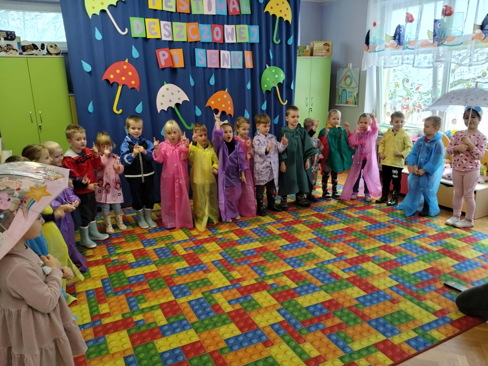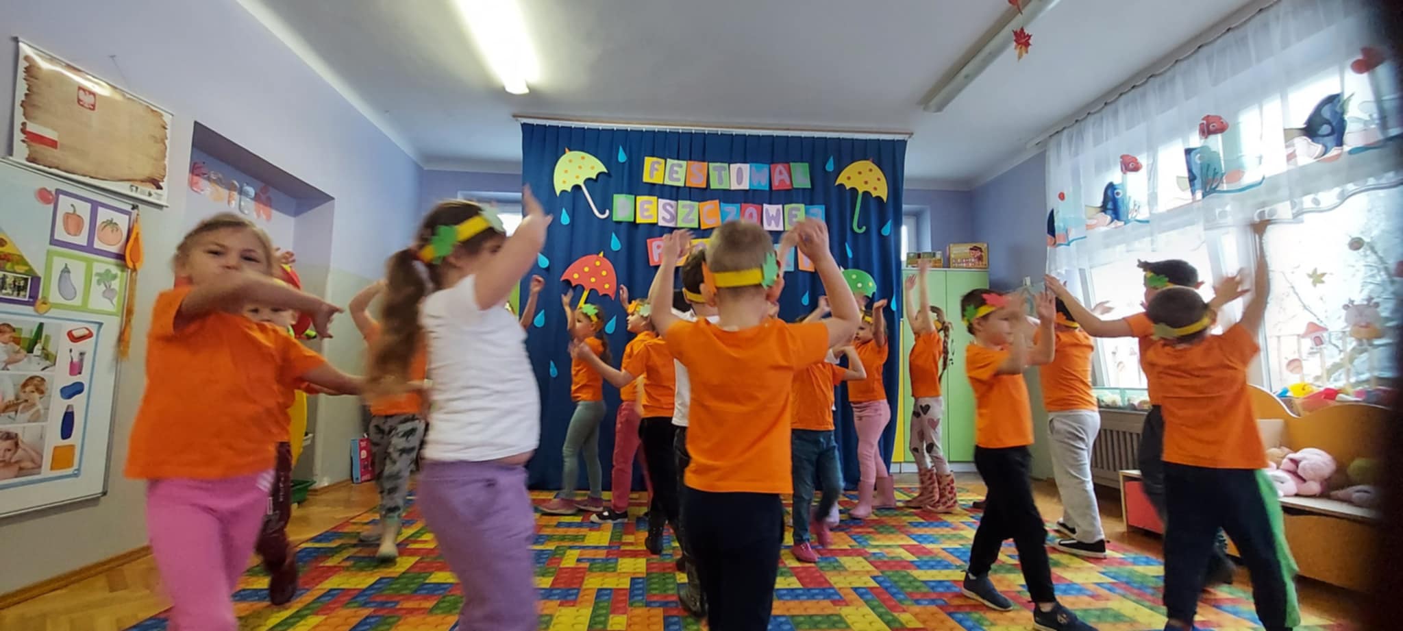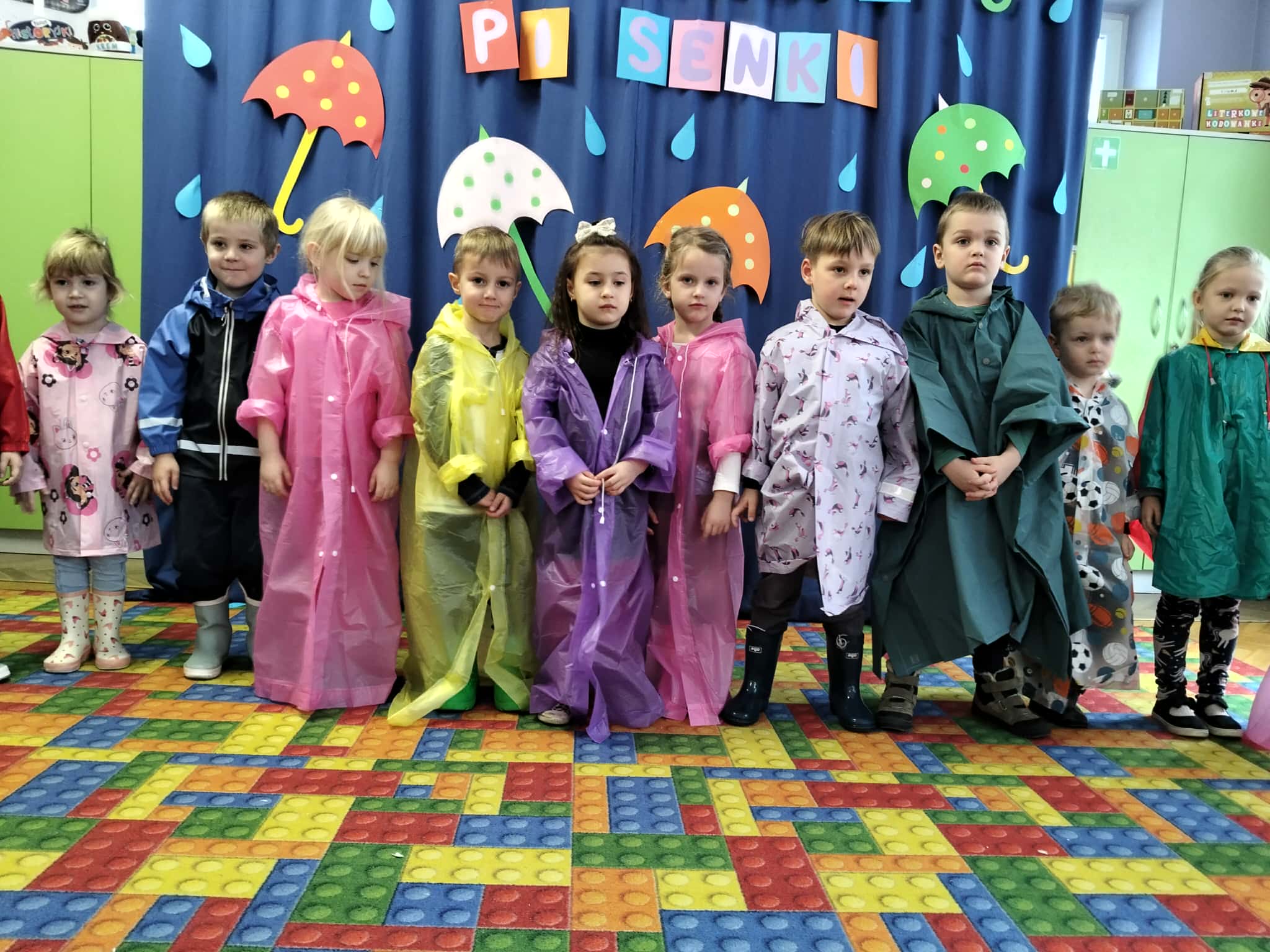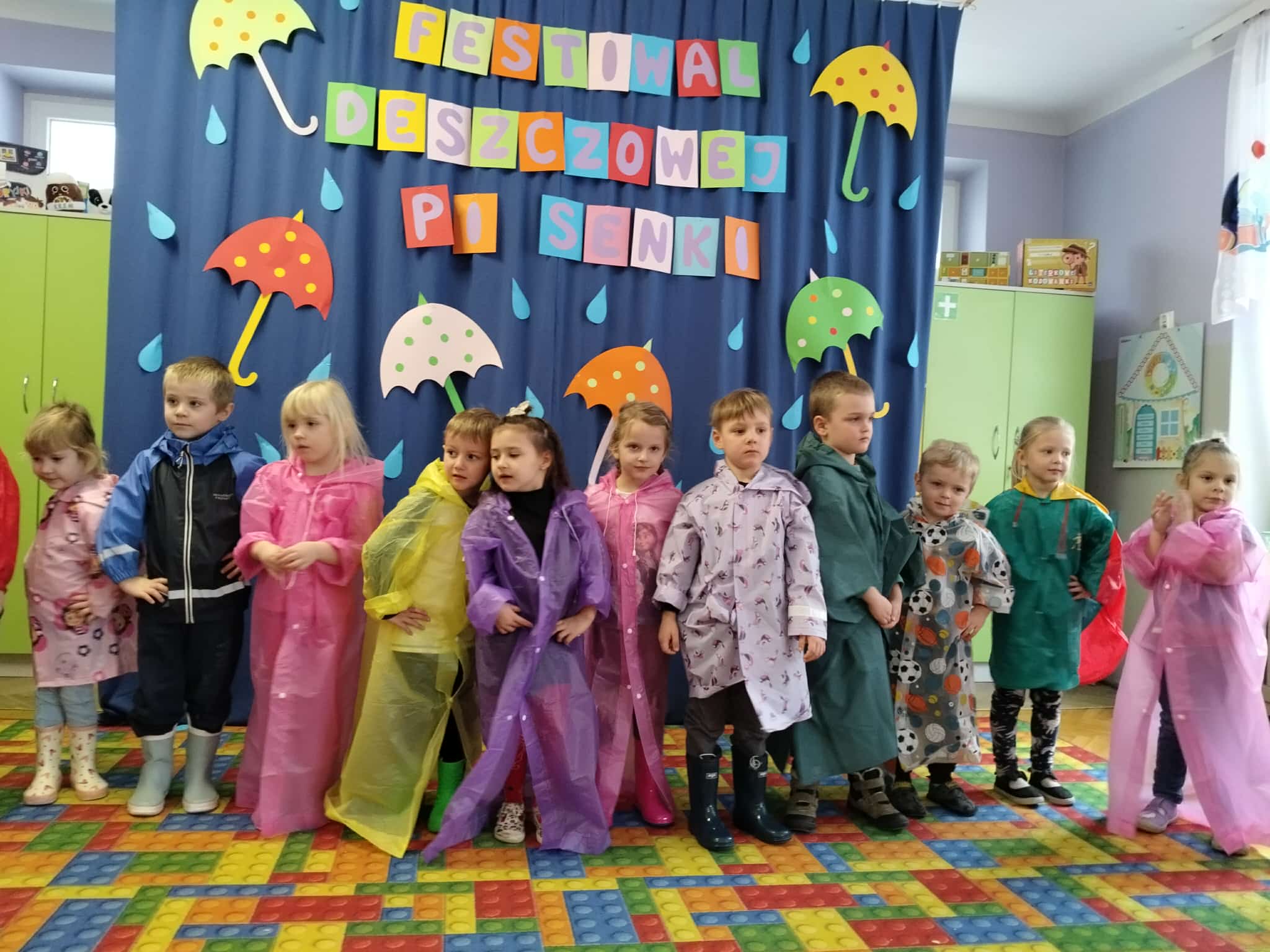 Każda grupa przygotowała własny zestaw utworów o tematyce jesiennej i deszczowej. Na scenie wybrzmiały piosenki o kolorowych liściach, deszczykowych kropelkach, wietrze, chmurkach i parasolkach. Mali artyści występowali z ogromnym zaangażowaniem, prezentując nie tylko piękne śpiewy, ale także choreografie, rekwizyty oraz barwne stroje, które podkreślały klimat jesiennej przygody.