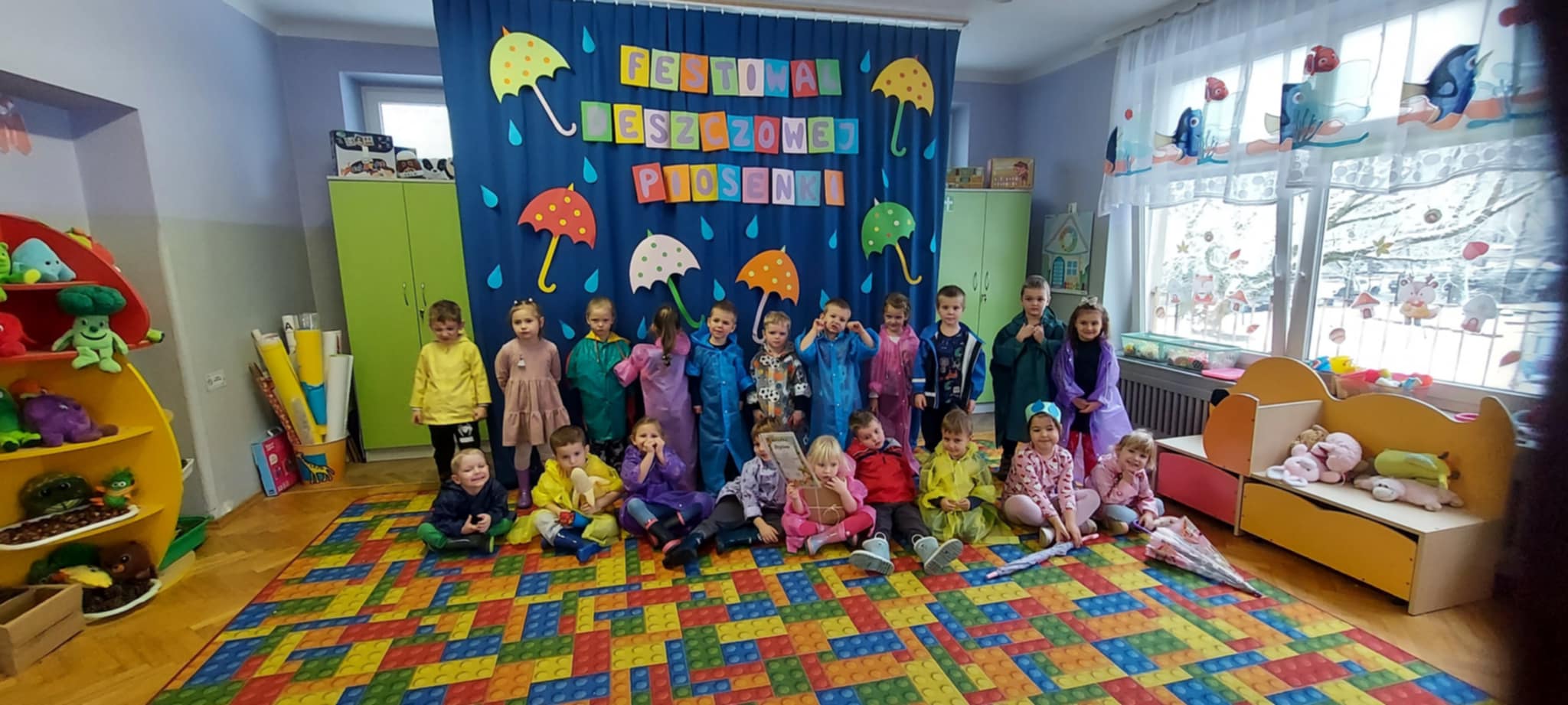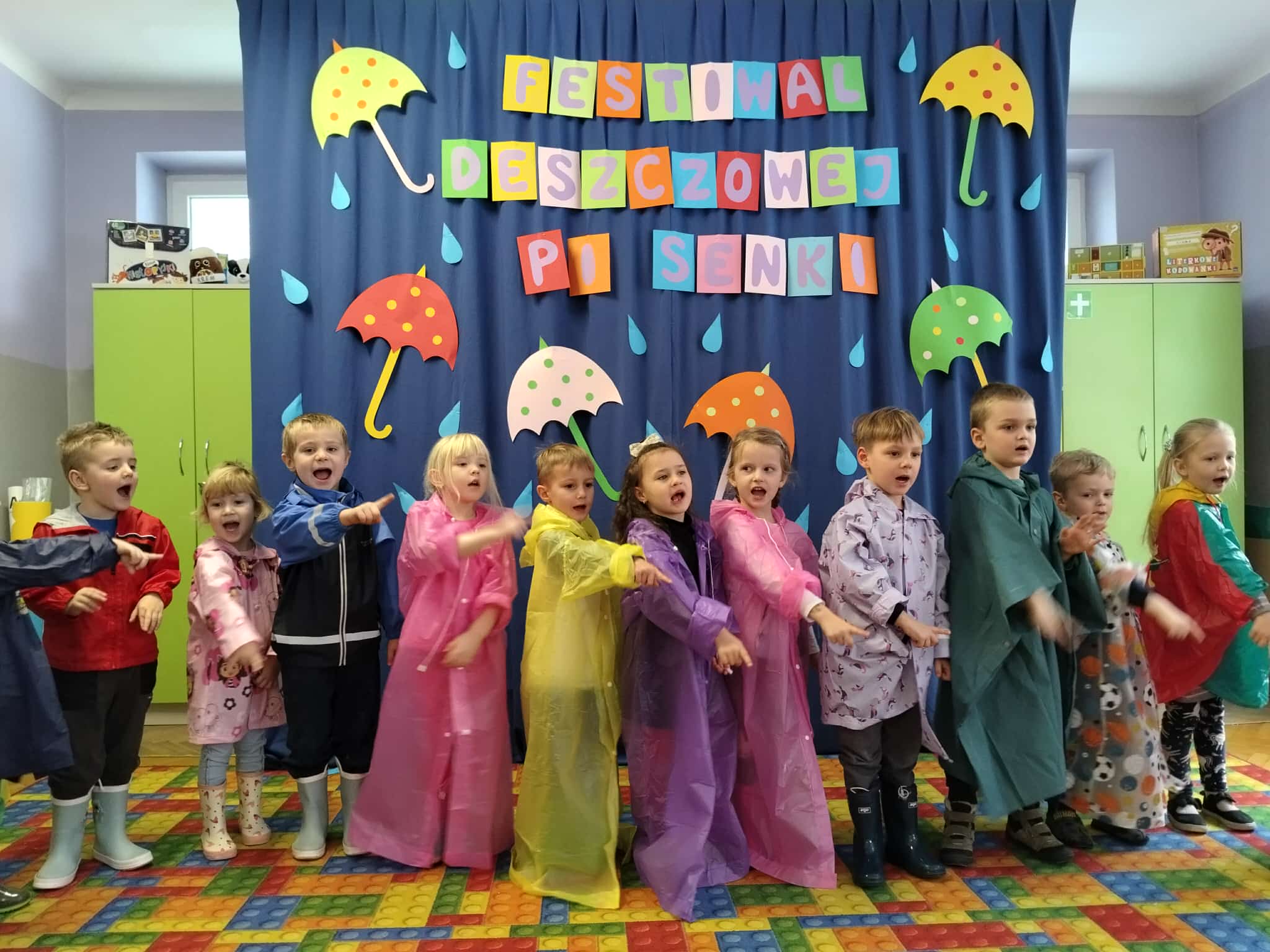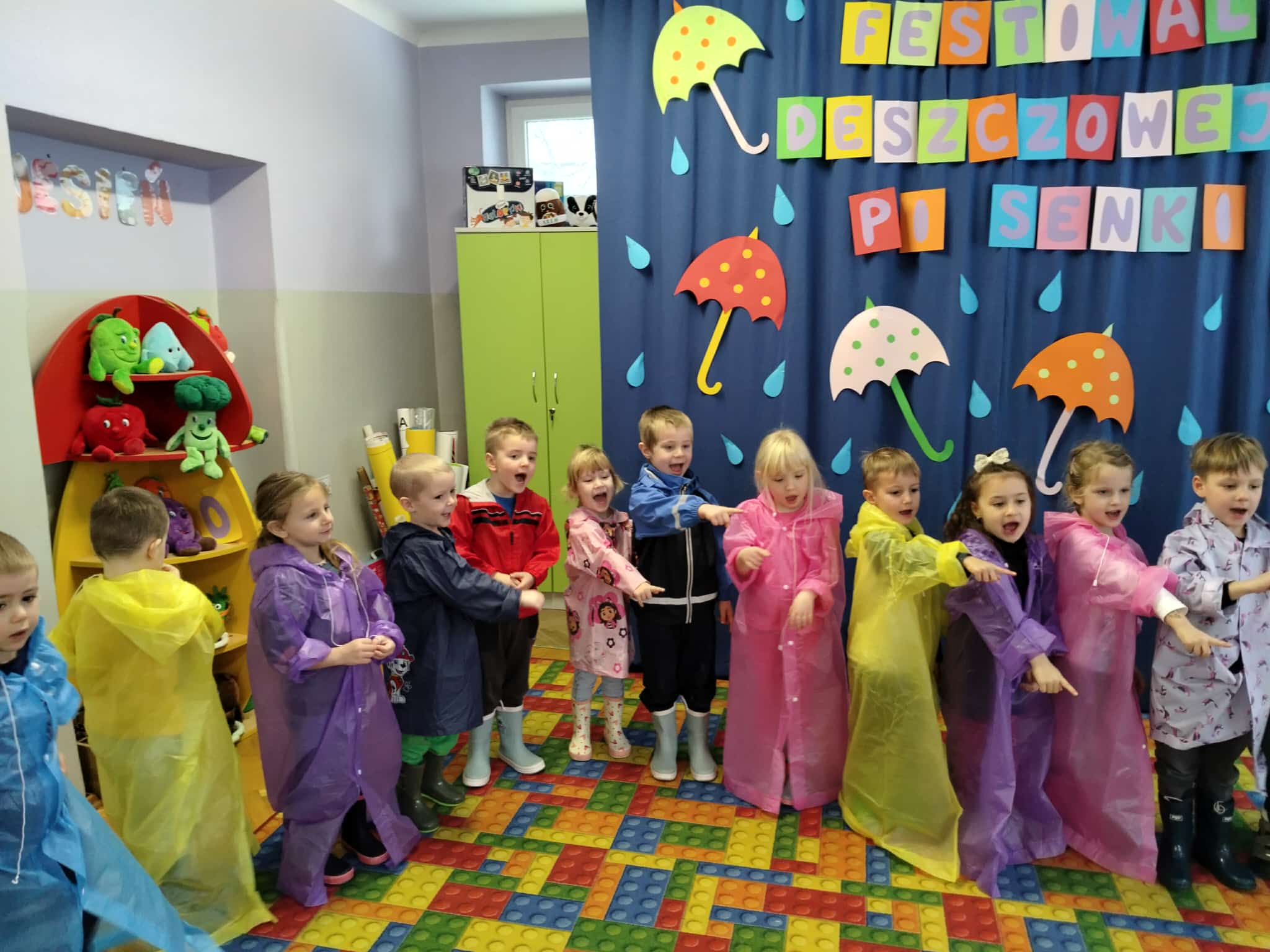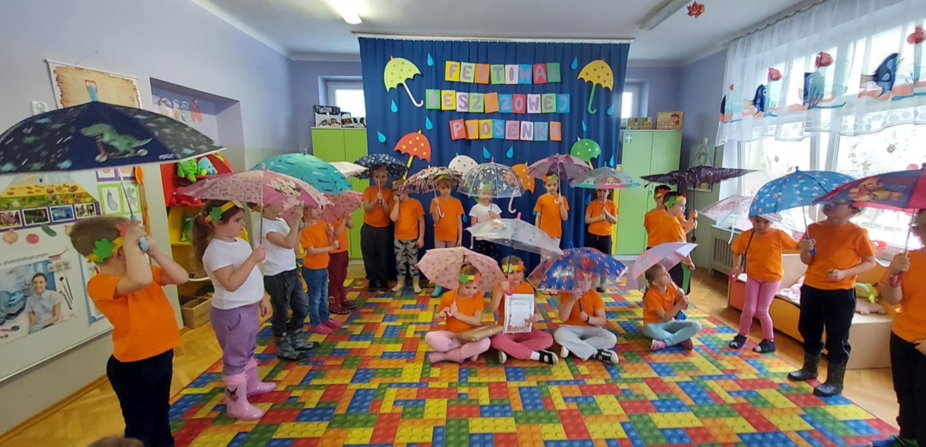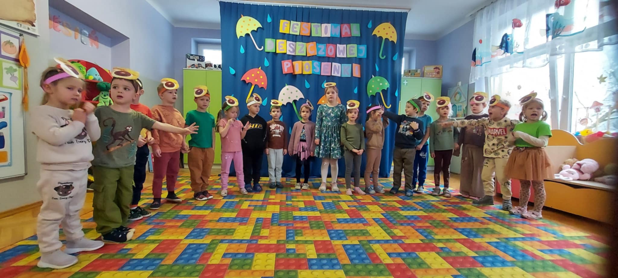 26 listopada w naszym przedszkolu odbył się wyjątkowy Festiwal Piosenki Deszczowej, który zgromadził dzieci ze wszystkich czterech grup. To radosne wydarzenie stało się doskonałą okazją do zaprezentowania talentów muzycznych naszych przedszkolaków oraz wspólnego świętowania uroków jesieni.