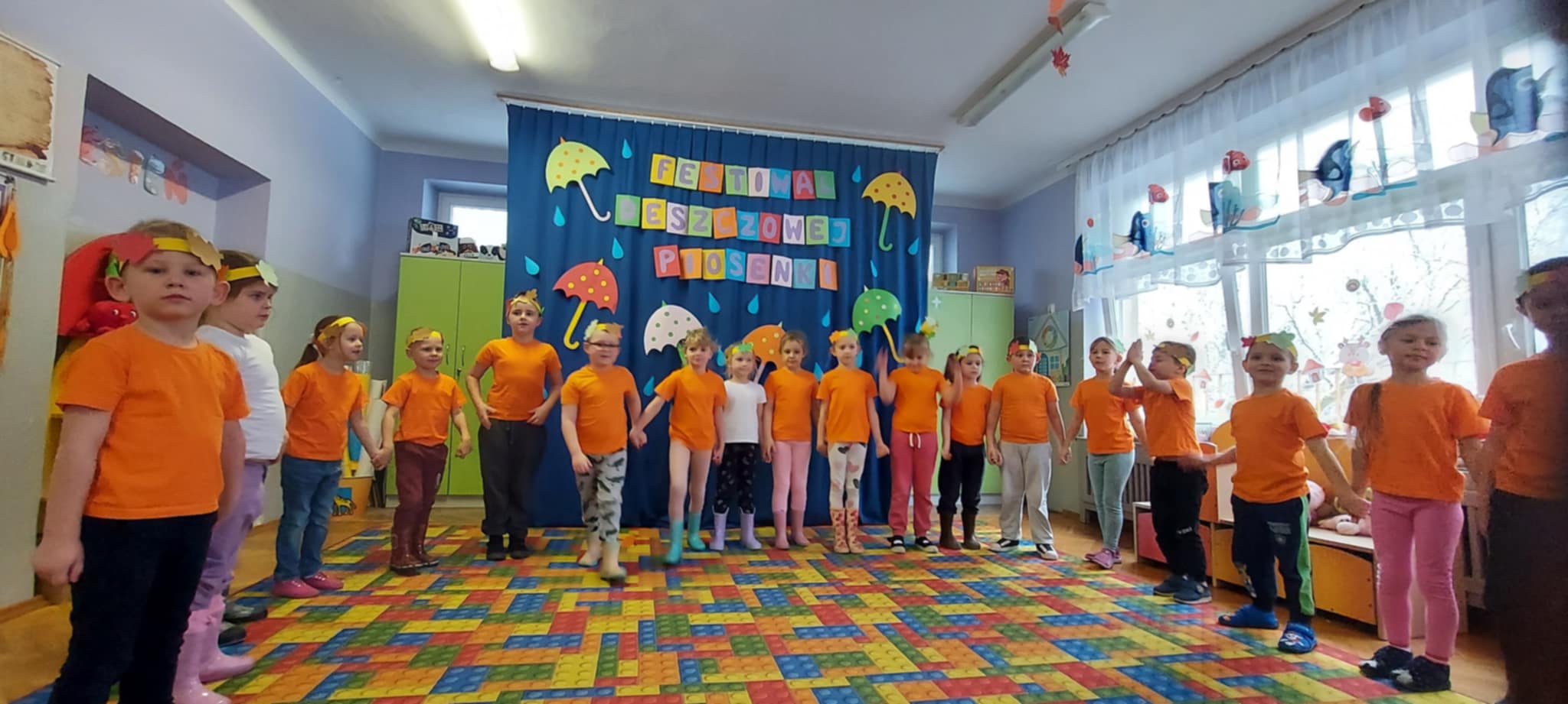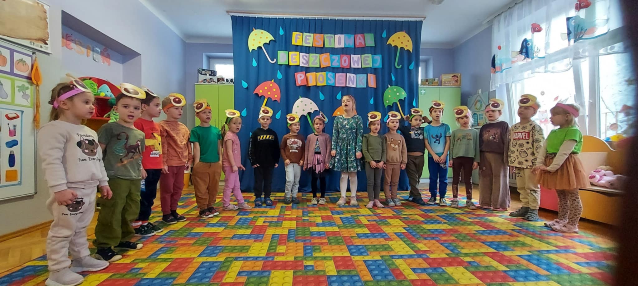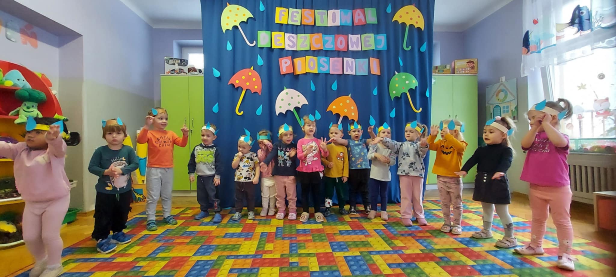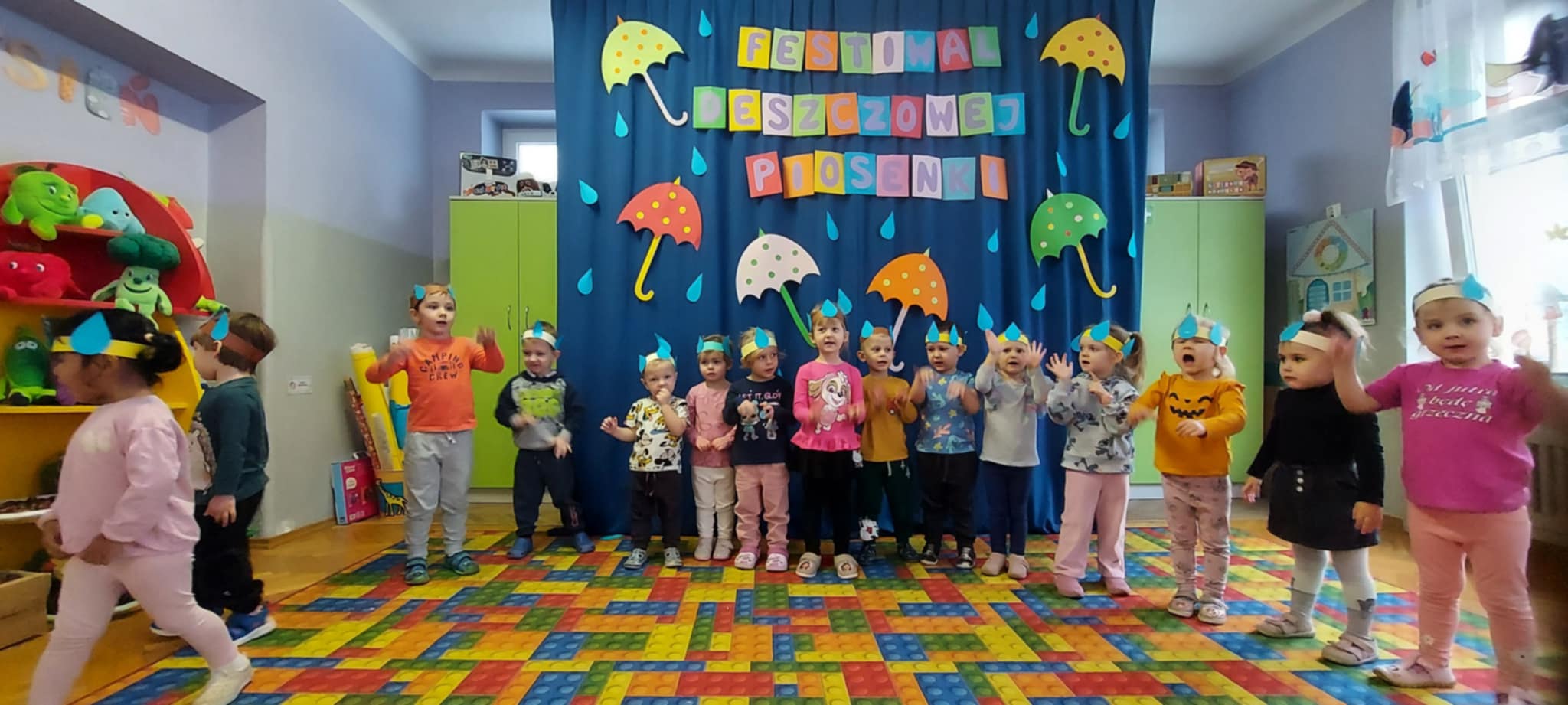 26 listopada w naszym przedszkolu odbył się wyjątkowy Festiwal Piosenki Deszczowej, który zgromadził dzieci ze wszystkich czterech grup. To radosne wydarzenie stało się doskonałą okazją do zaprezentowania talentów muzycznych naszych przedszkolaków oraz wspólnego świętowania uroków jesieni.