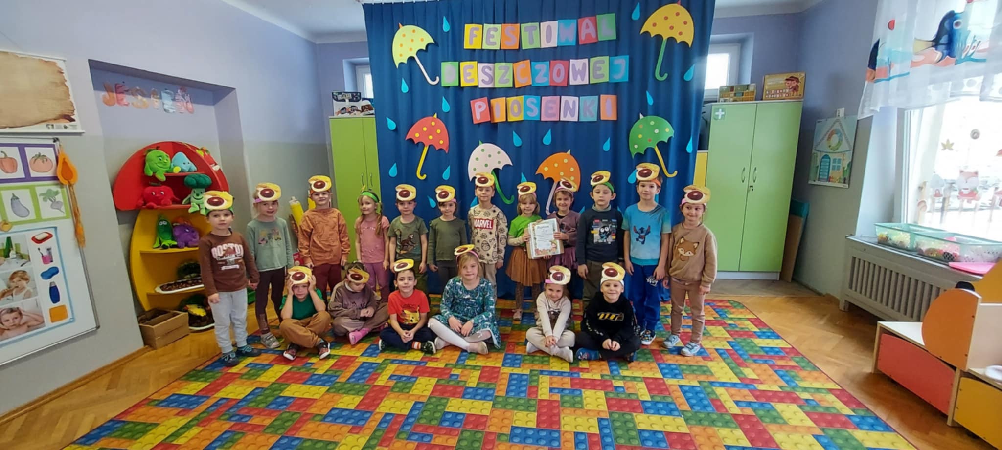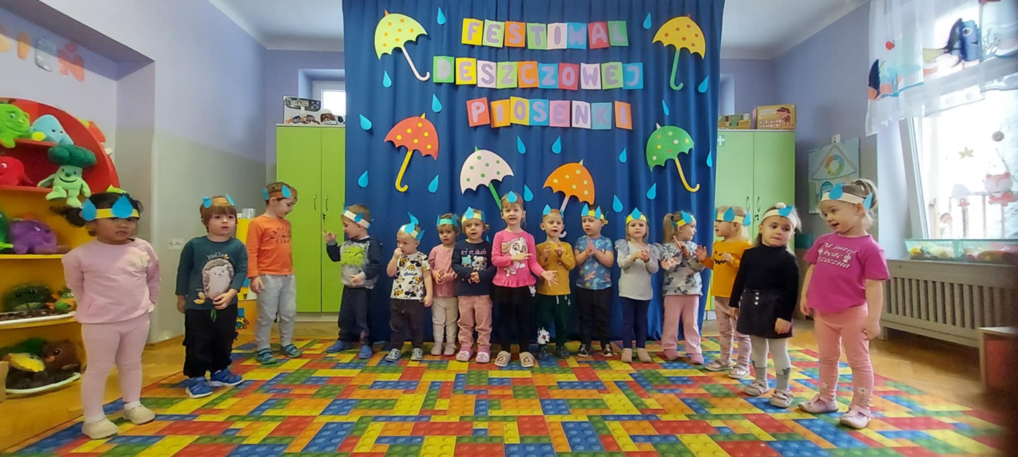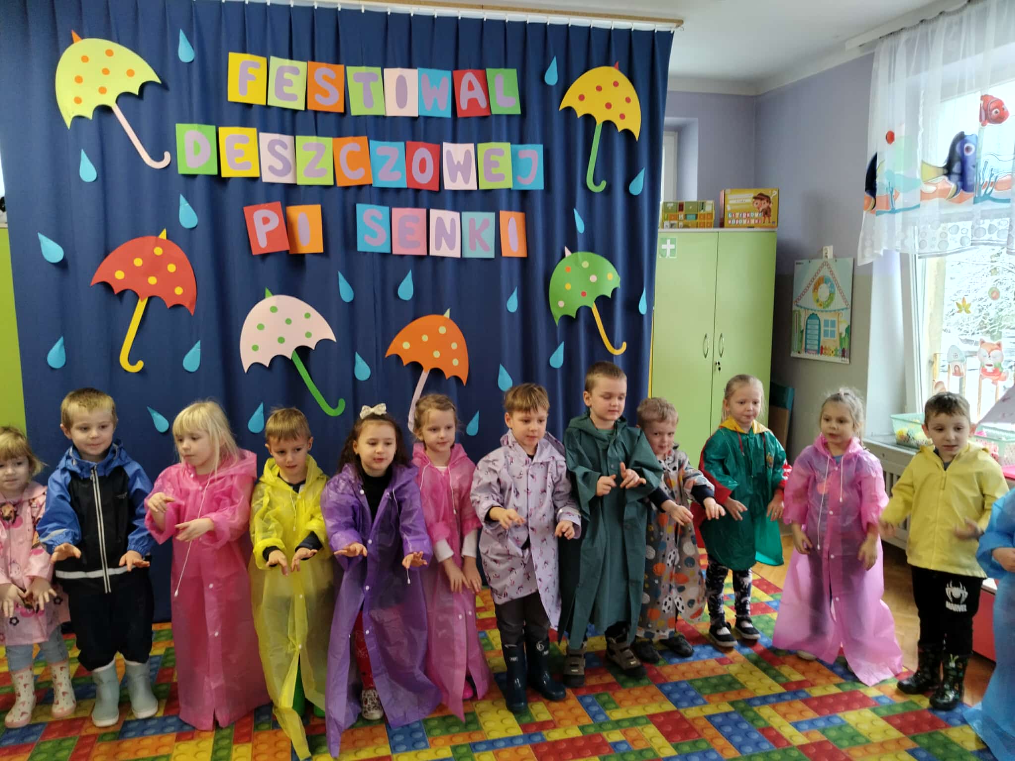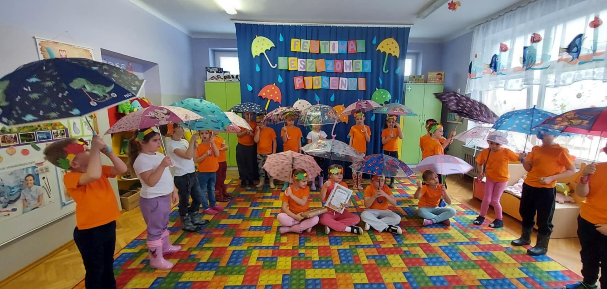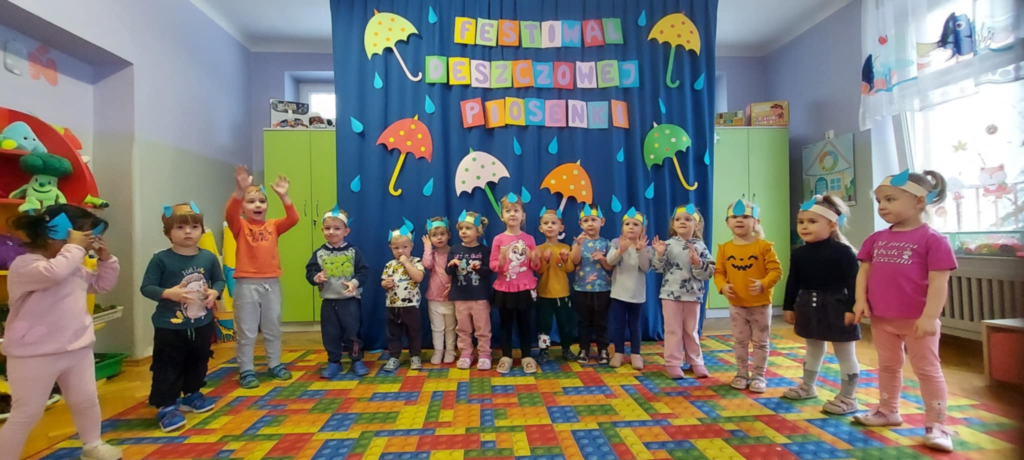 26 listopada w naszym przedszkolu odbył się wyjątkowy Festiwal Piosenki Deszczowej, który zgromadził dzieci ze wszystkich czterech grup. To radosne wydarzenie stało się doskonałą okazją do zaprezentowania talentów muzycznych naszych przedszkolaków oraz wspólnego świętowania uroków jesieni.