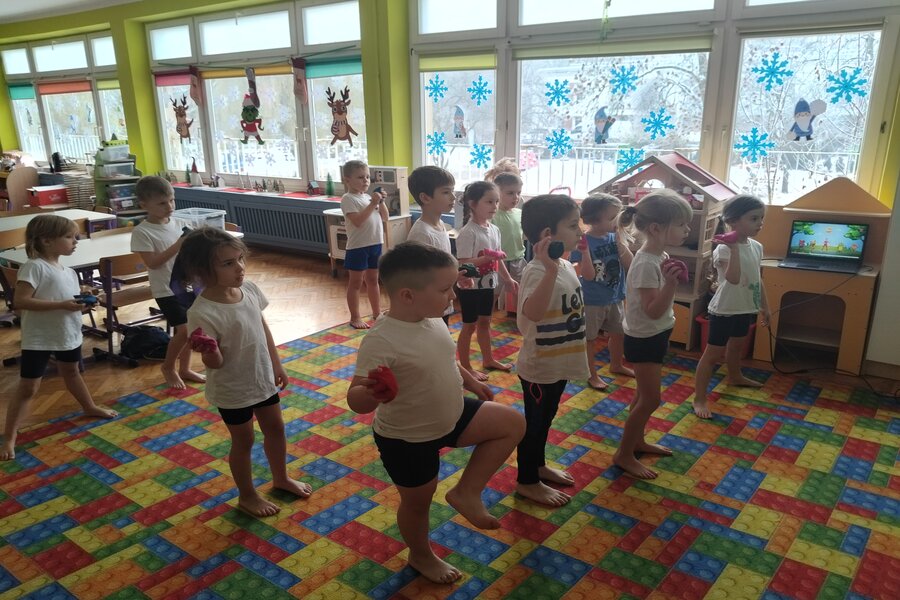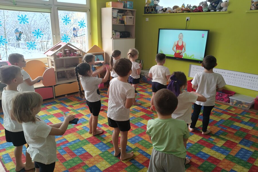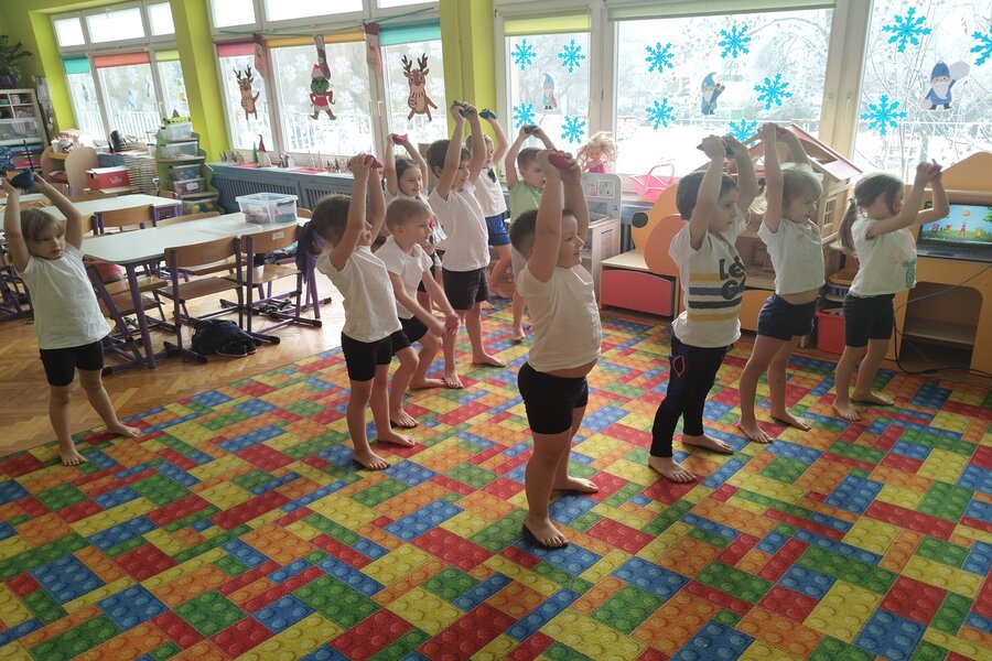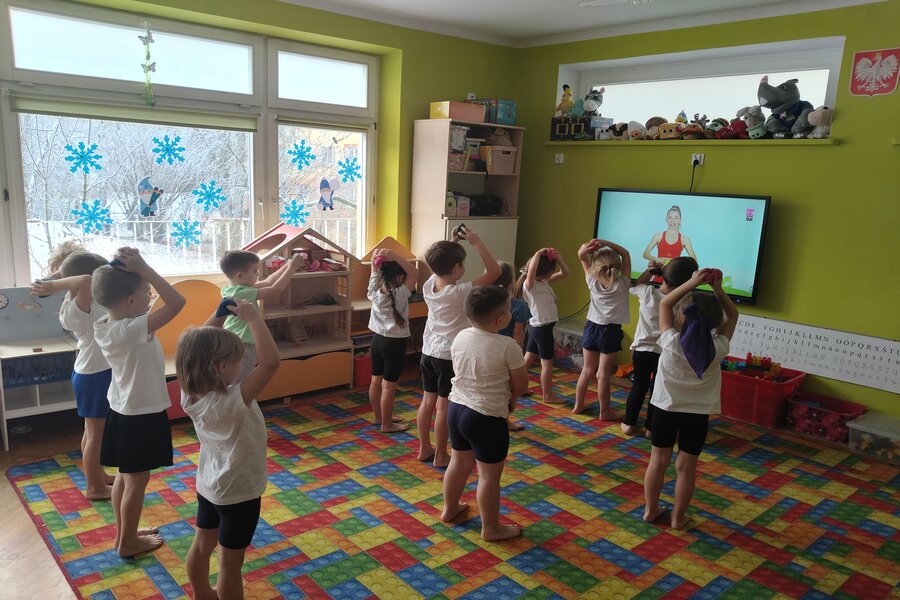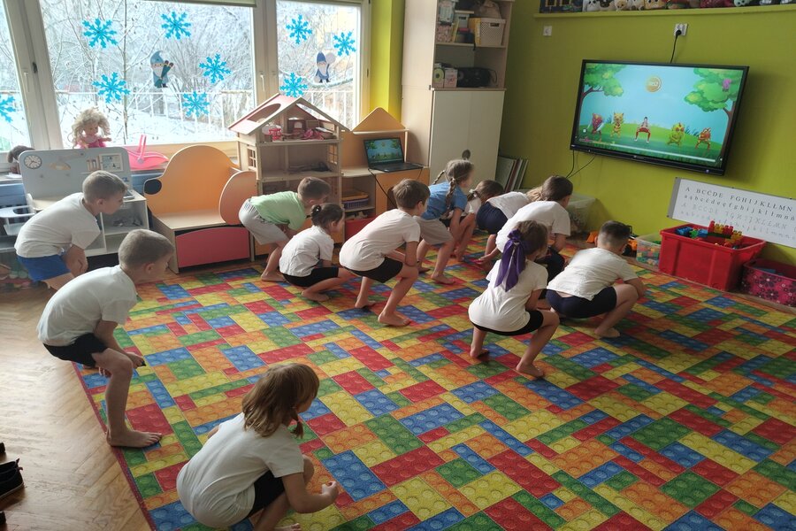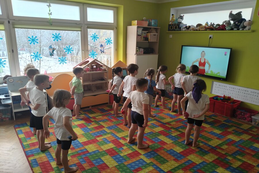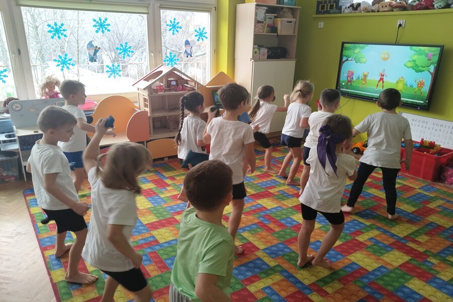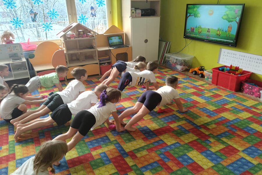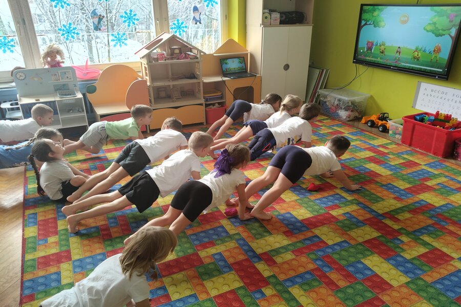 Truskawki jak zawsze dbają o swoje zdrowie i kondycje fizyczną. Na koniec tygodnia wszyscy przebrali się w swoje stroje do ćwiczeń. Przedszkolaki ćwiczyły z Ewą Chodakowską dobrze się przy tym bawiąc, dbały o swoje mięśnie rozciągając je i wzmacniając. Na koniec dobrze wykonanych ćwiczeń truskawki dostały stempelek i czekają na kolejne gimnastyczne wyzwania.