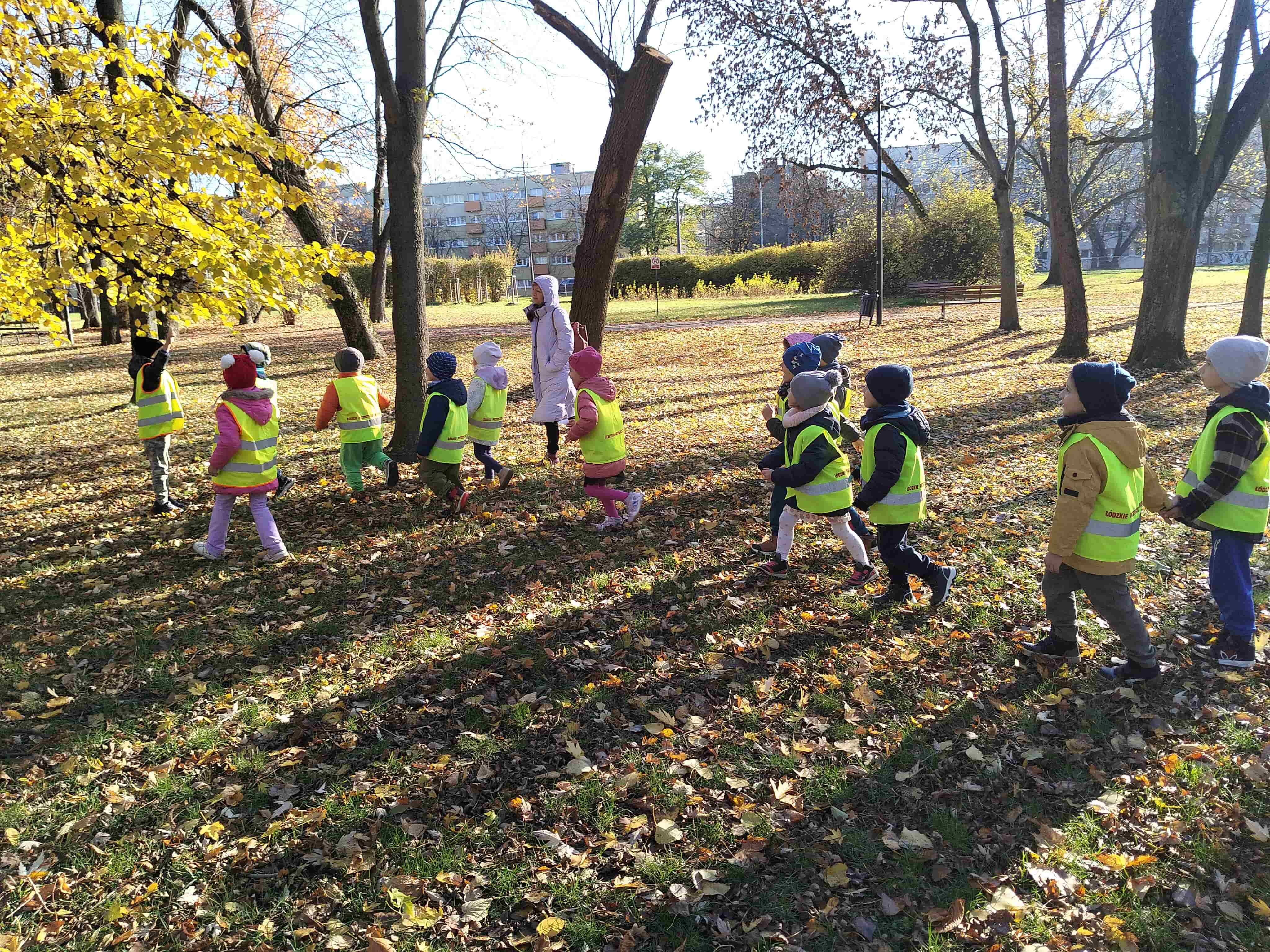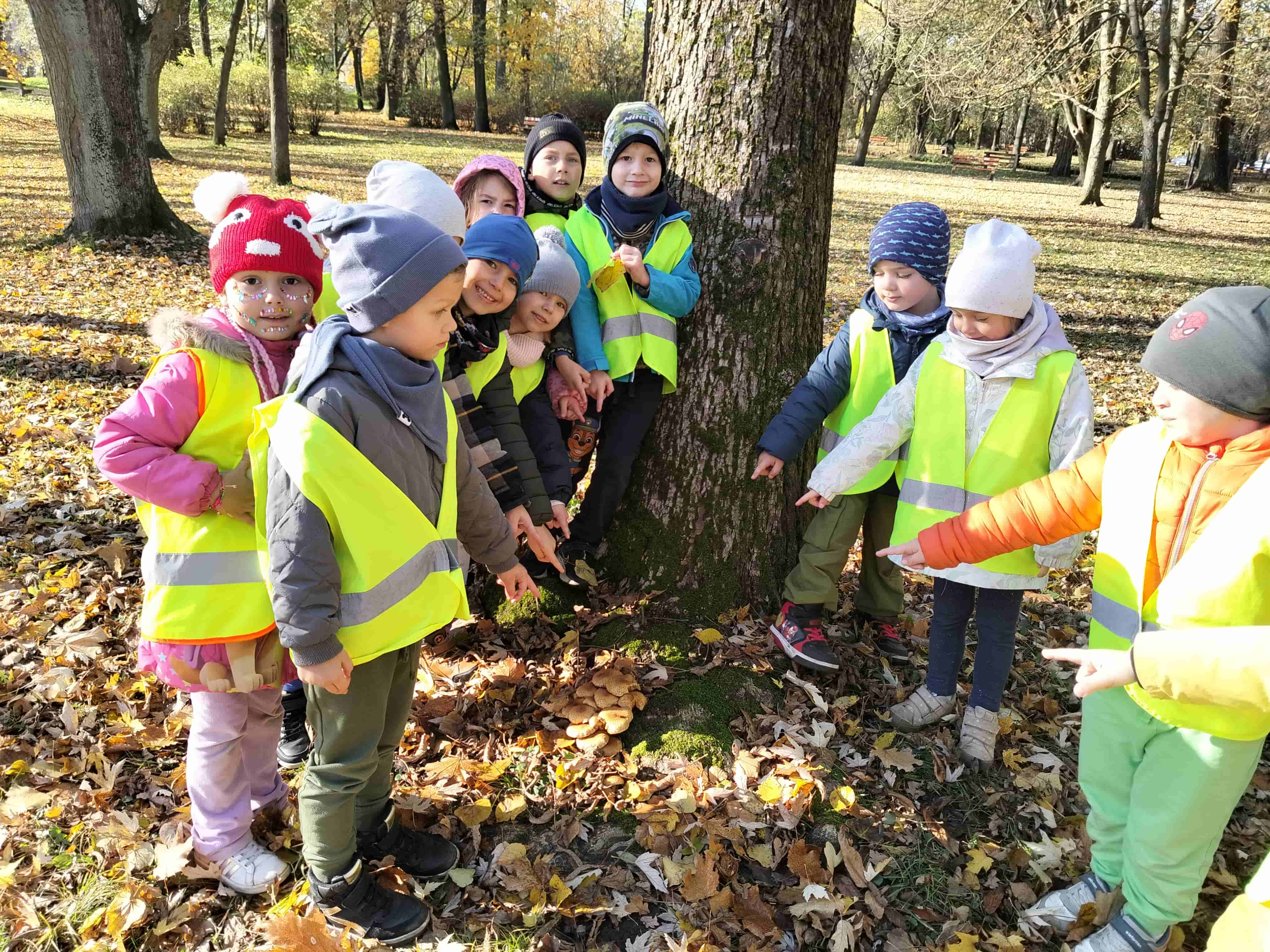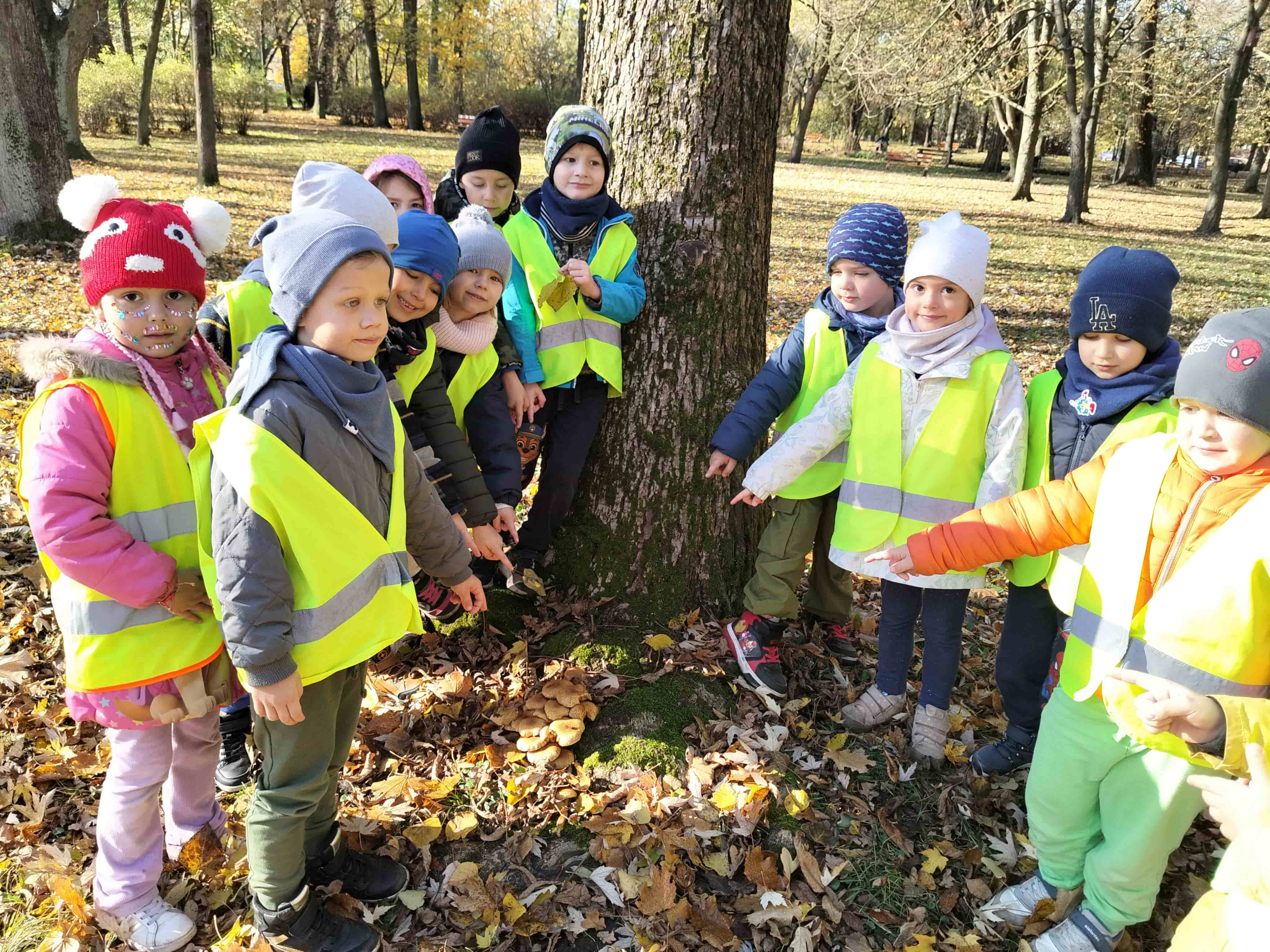 Truskawki lubią przebywać na świeżym powietrzu dbając o swoje zdrowie często korzystamy z naszego ogrodu przedszkolnego. Dzisiaj jednak postanowiliśmy wybrać się na jesienny spacer by obserwować otaczające nas piękno przyrody. Przedszkolaki podziwiały kaczki w parku, szukały kasztanów miedzy drzewami gdzie potem urządziły sobie slalom. Wszyscy dobrze się bawili szukając wiewiórek na drzewach ale zamiast tego znaleźliśmy grzyby, których nikt nie dotykał tylko podziwialiśmy. Zmierzając ku placu zabaw dostrzegliśmy kapliczkę i palące się znicze z okazji zbliżającego się dnia ,,Wszystkich Świętych''. Nasze truskawki wykorzystały czas na powietrzu jak zawsze wyśmienicie, popatrzcie sami jak miło upłynął nam czas.