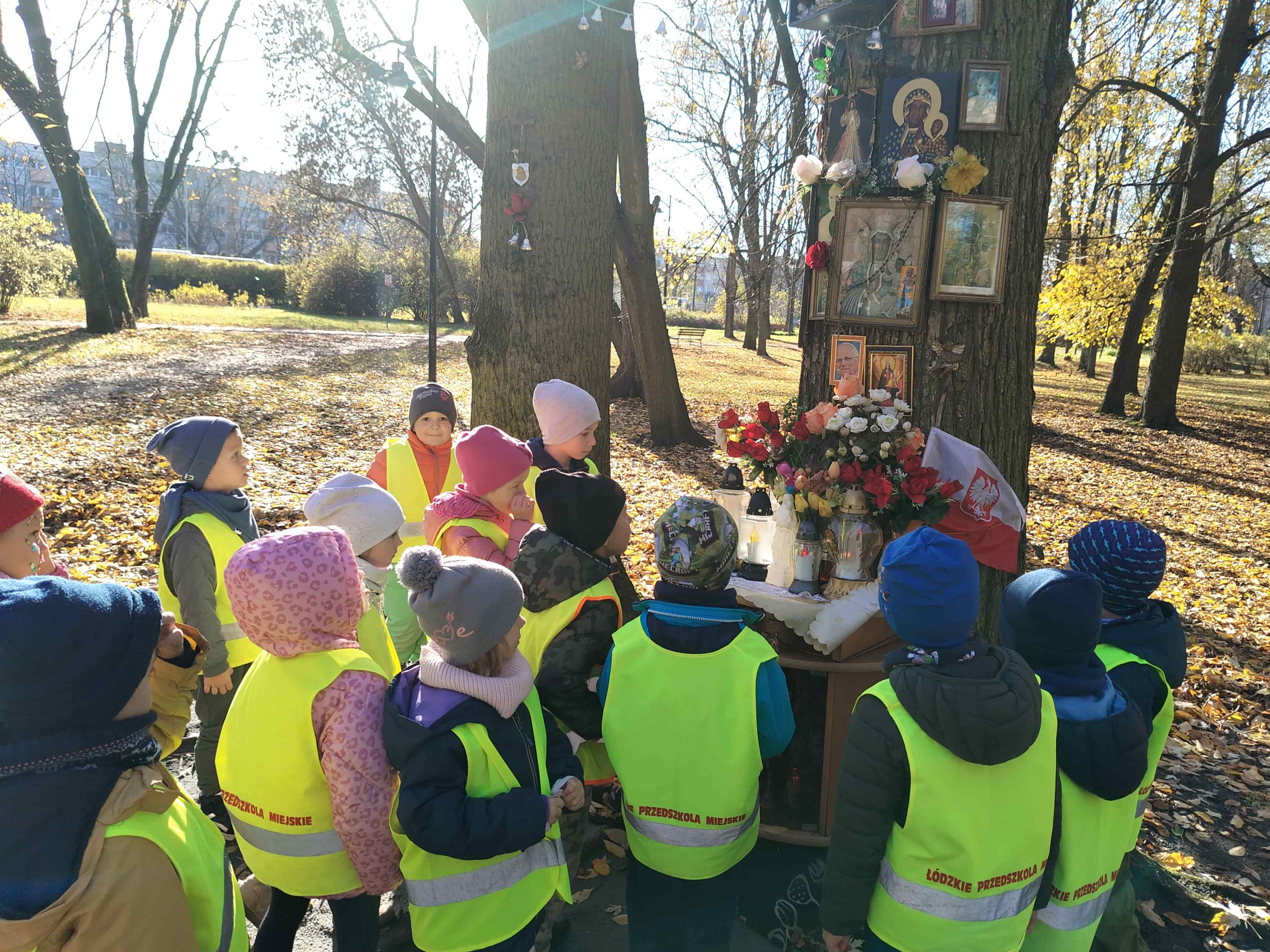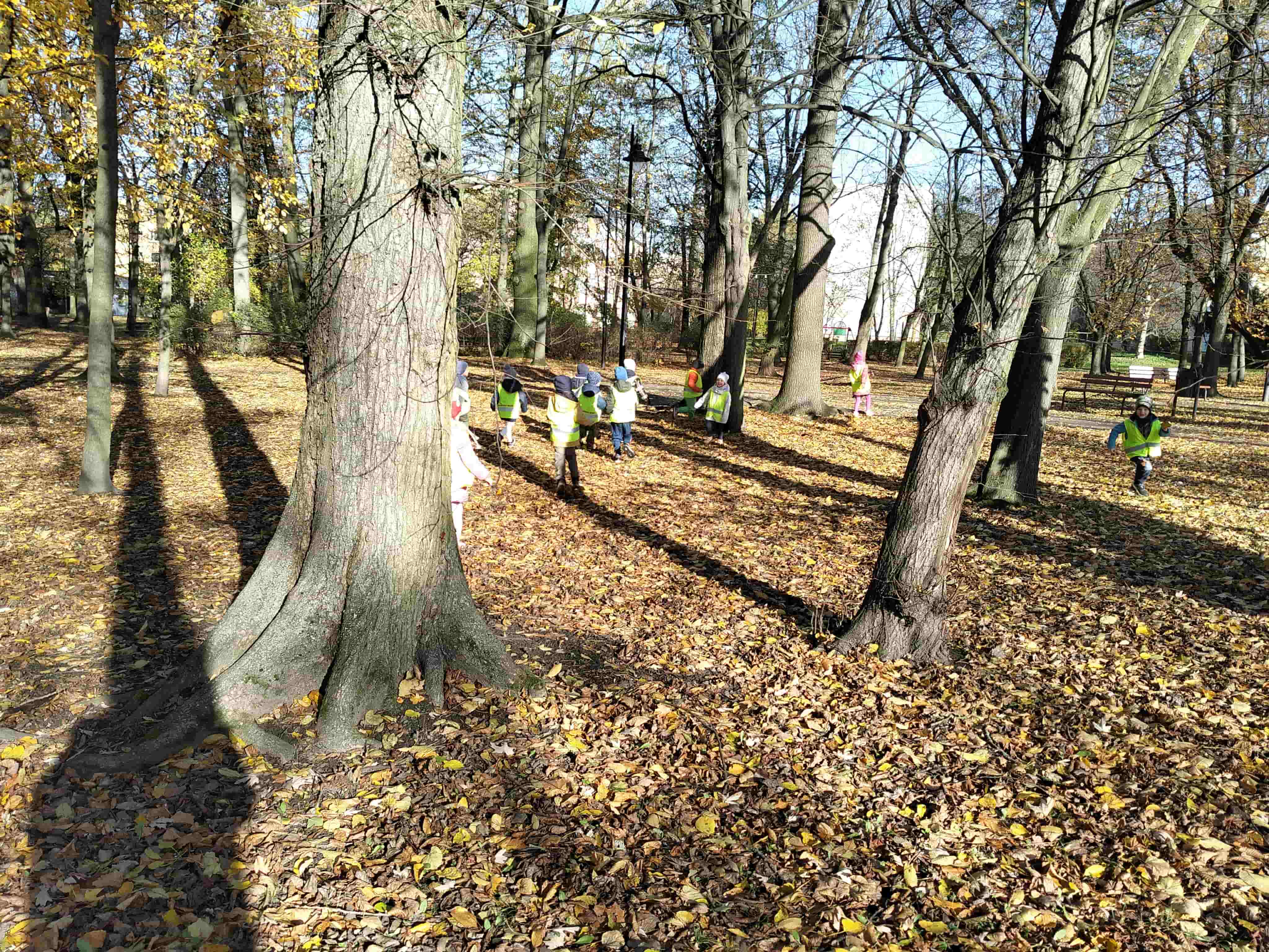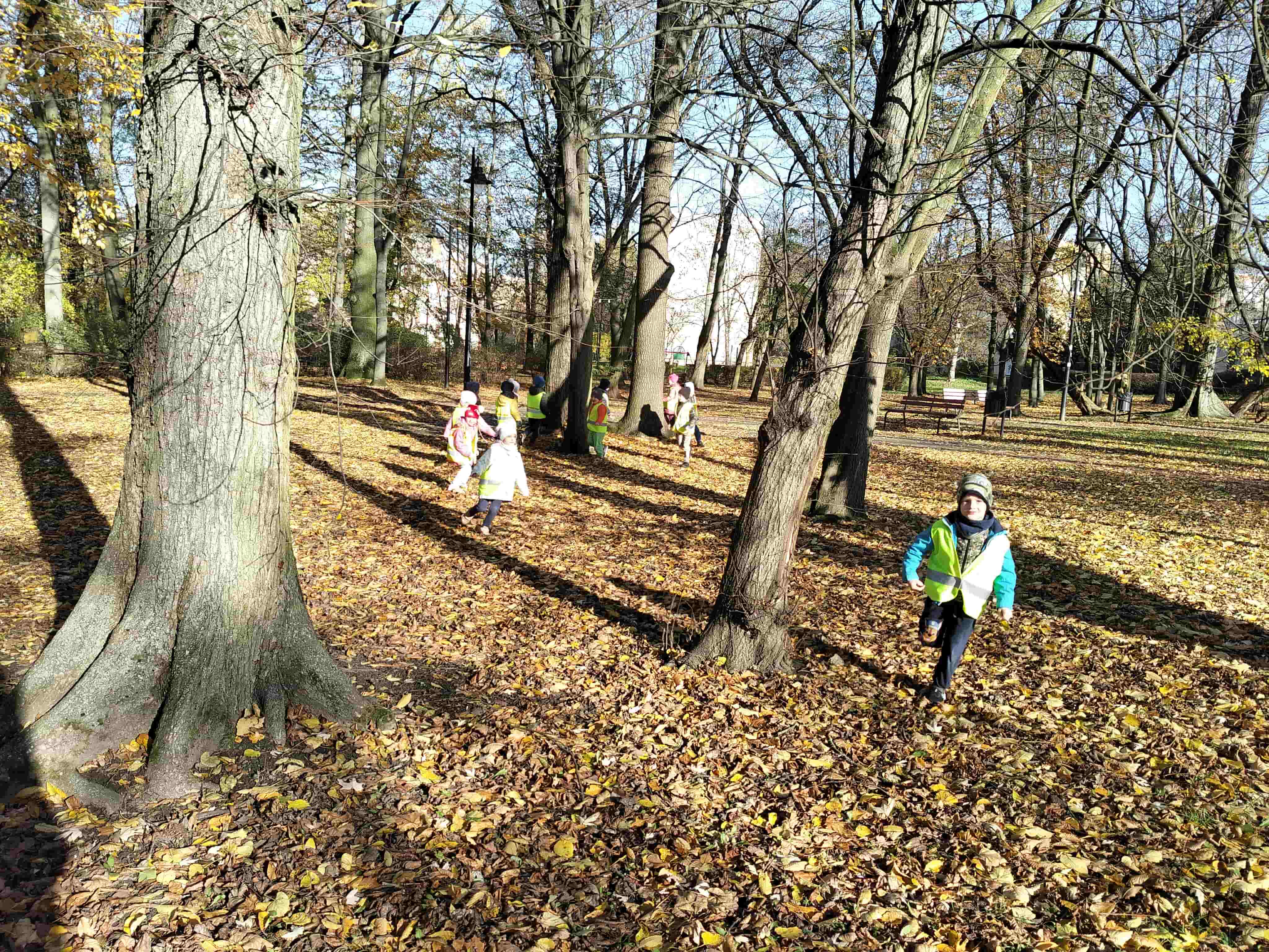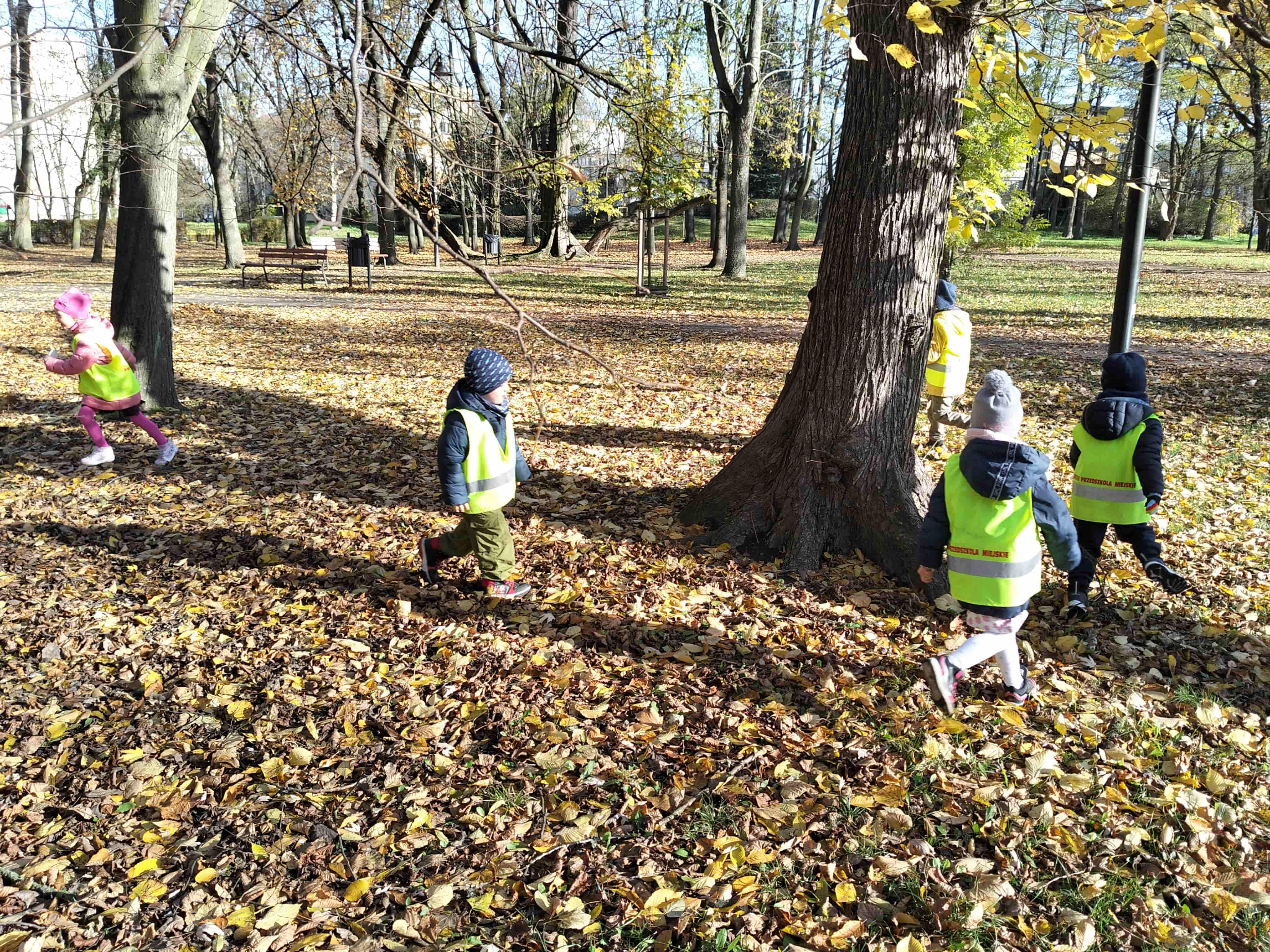 Truskawki lubią przebywać na świeżym powietrzu dbając o swoje zdrowie często korzystamy z naszego ogrodu przedszkolnego. Dzisiaj jednak postanowiliśmy wybrać się na jesienny spacer by obserwować otaczające nas piękno przyrody. Przedszkolaki podziwiały kaczki w parku, szukały kasztanów miedzy drzewami gdzie potem urządziły sobie slalom. Wszyscy dobrze się bawili szukając wiewiórek na drzewach ale zamiast tego znaleźliśmy grzyby, których nikt nie dotykał tylko podziwialiśmy. Zmierzając ku placu zabaw dostrzegliśmy kapliczkę i palące się znicze z okazji zbliżającego się dnia ,,Wszystkich Świętych''. Nasze truskawki wykorzystały czas na powietrzu jak zawsze wyśmienicie, popatrzcie sami jak miło upłynął nam czas.