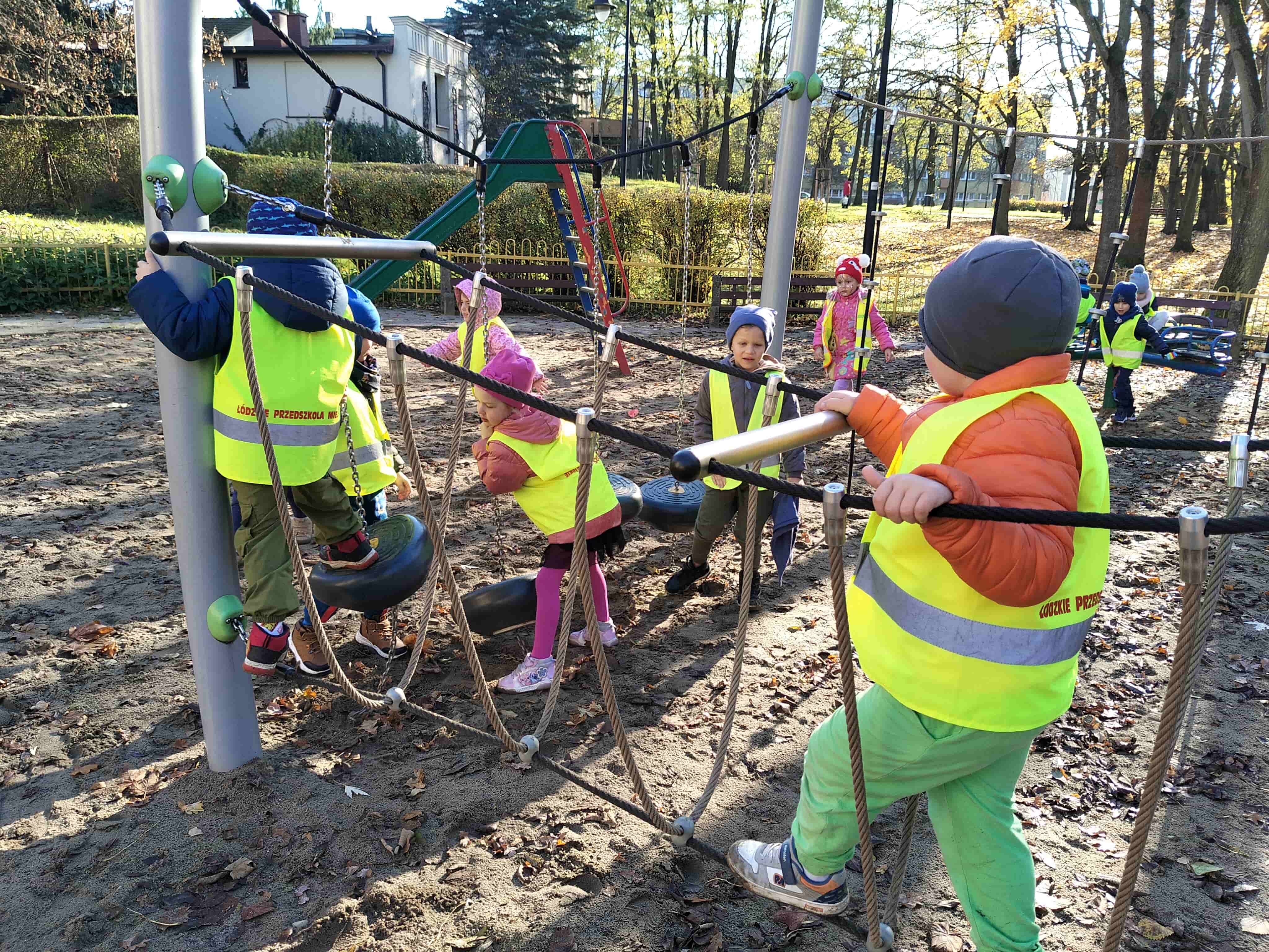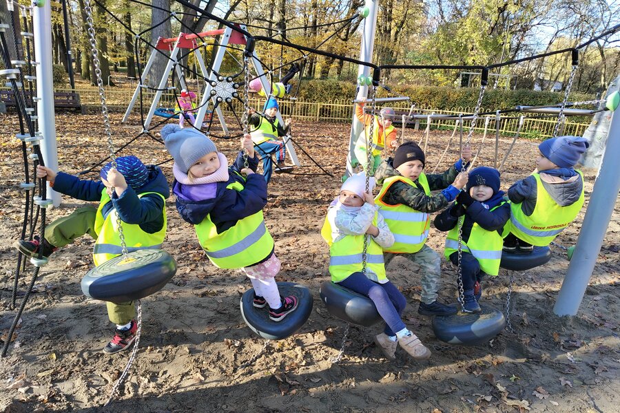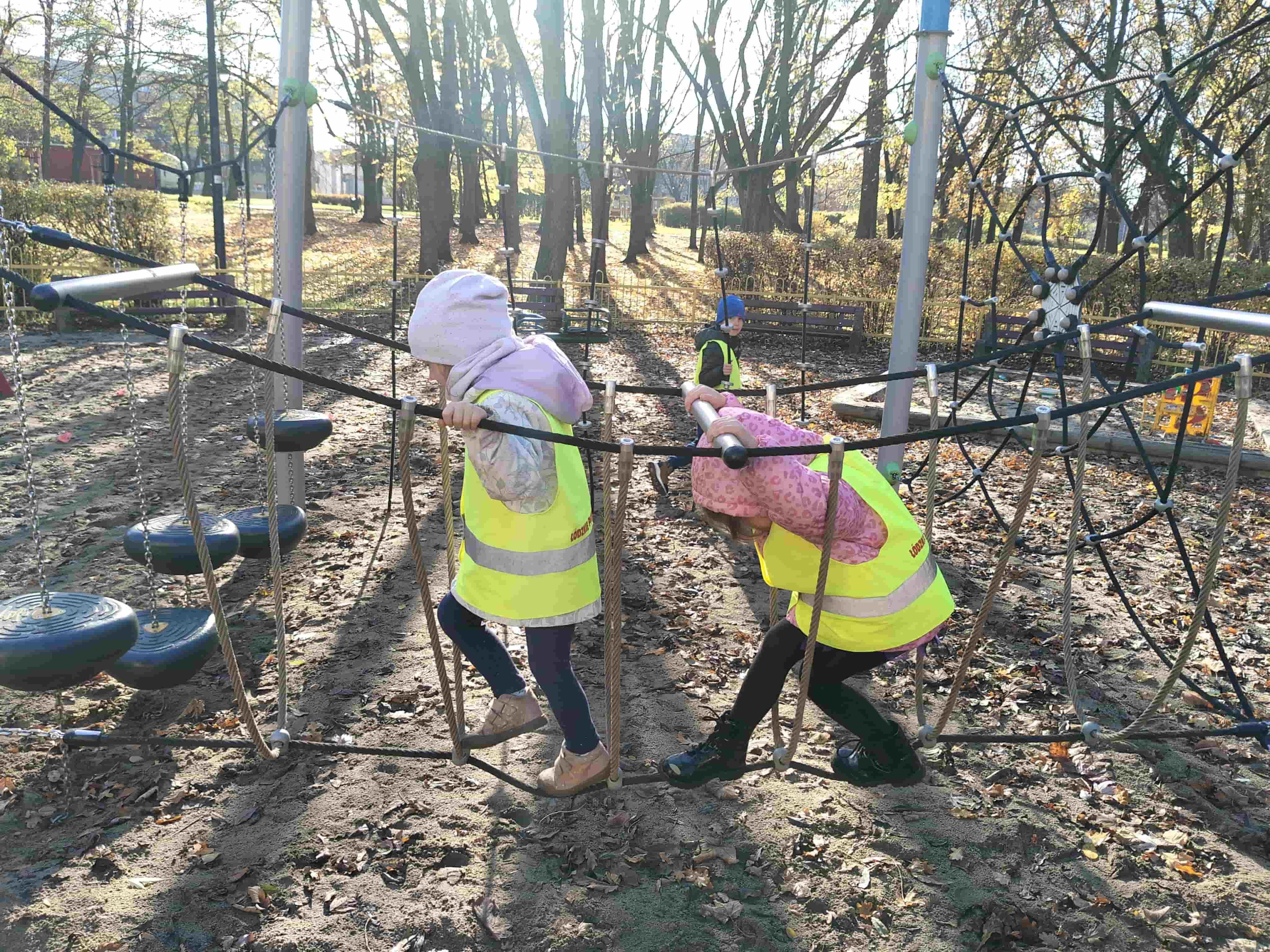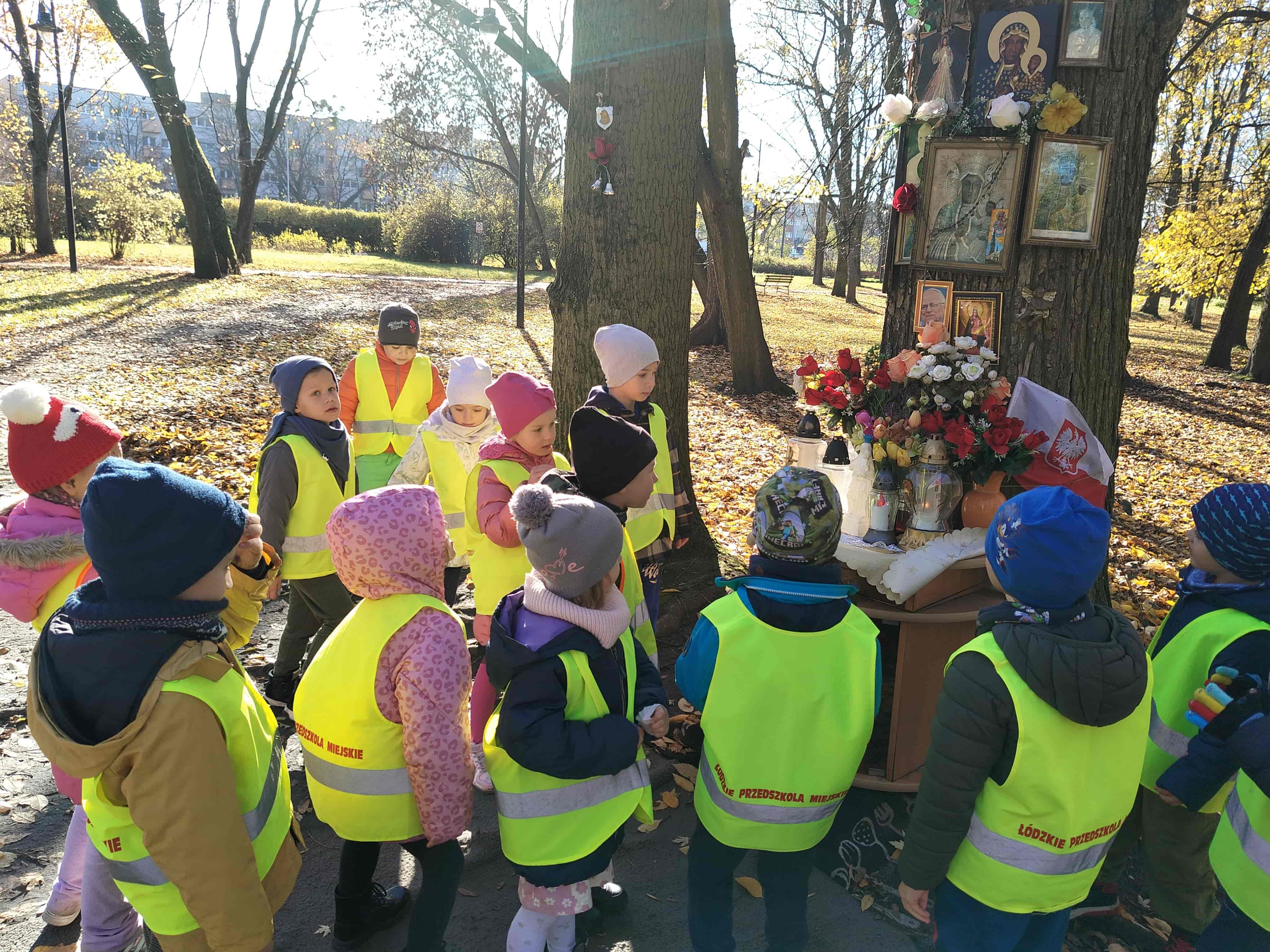 Truskawki lubią przebywać na świeżym powietrzu dbając o swoje zdrowie często korzystamy z naszego ogrodu przedszkolnego. Dzisiaj jednak postanowiliśmy wybrać się na jesienny spacer by obserwować otaczające nas piękno przyrody. Przedszkolaki podziwiały kaczki w parku, szukały kasztanów miedzy drzewami gdzie potem urządziły sobie slalom. Wszyscy dobrze się bawili szukając wiewiórek na drzewach ale zamiast tego znaleźliśmy grzyby, których nikt nie dotykał tylko podziwialiśmy. Zmierzając ku placu zabaw dostrzegliśmy kapliczkę i palące się znicze z okazji zbliżającego się dnia ,,Wszystkich Świętych''. Nasze truskawki wykorzystały czas na powietrzu jak zawsze wyśmienicie, popatrzcie sami jak miło upłynął nam czas.
