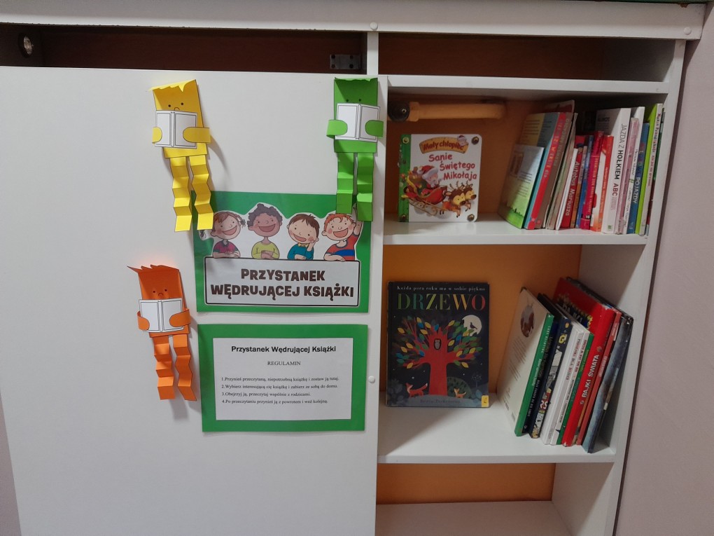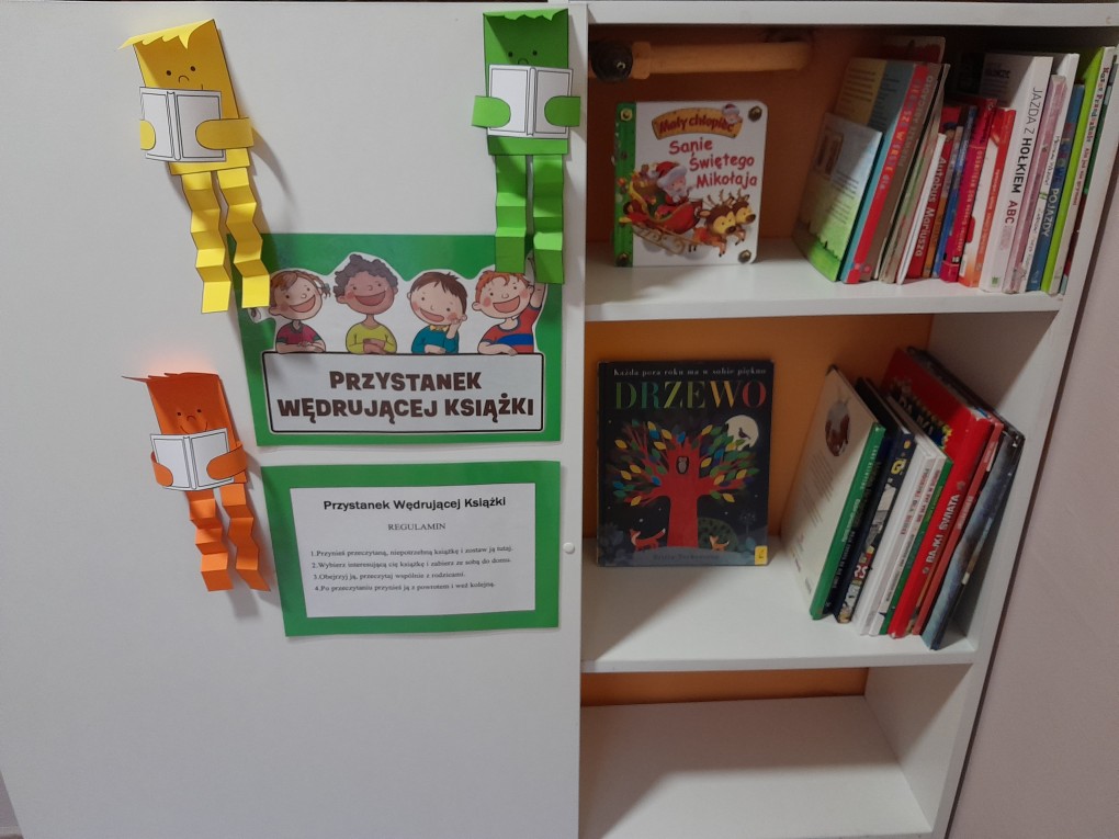 Z radością informujemy, że w naszym przedszkolu zaczął działać "Kącik Wędrującej Książki". To specjalne miejsce, w którym dzieci wraz z rodzicami mogą wymieniać się ciekawymi książkami, odkrywać nowe opowieści i wspólnie spędzać czas na czytaniu. Kącik powstał w ramach realizacji Programu "Mali Czytelnicy", organizowanego w ramach akcji "Cała Polska Czyta Dzieciom".