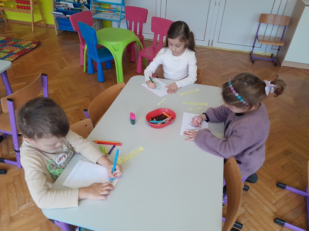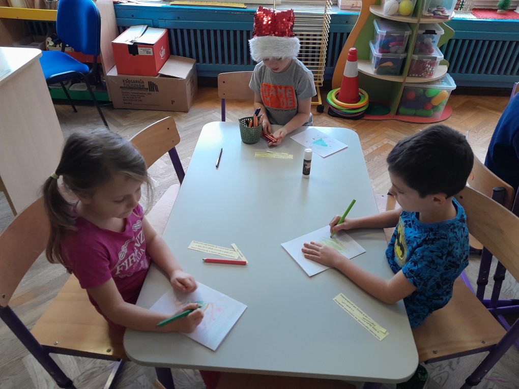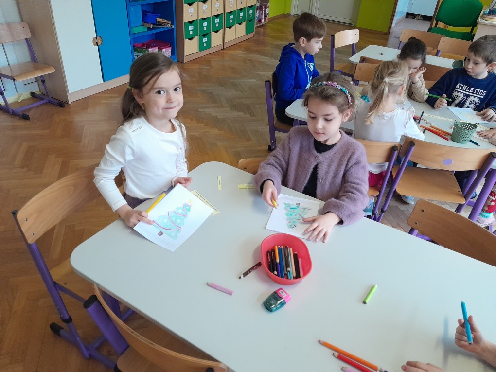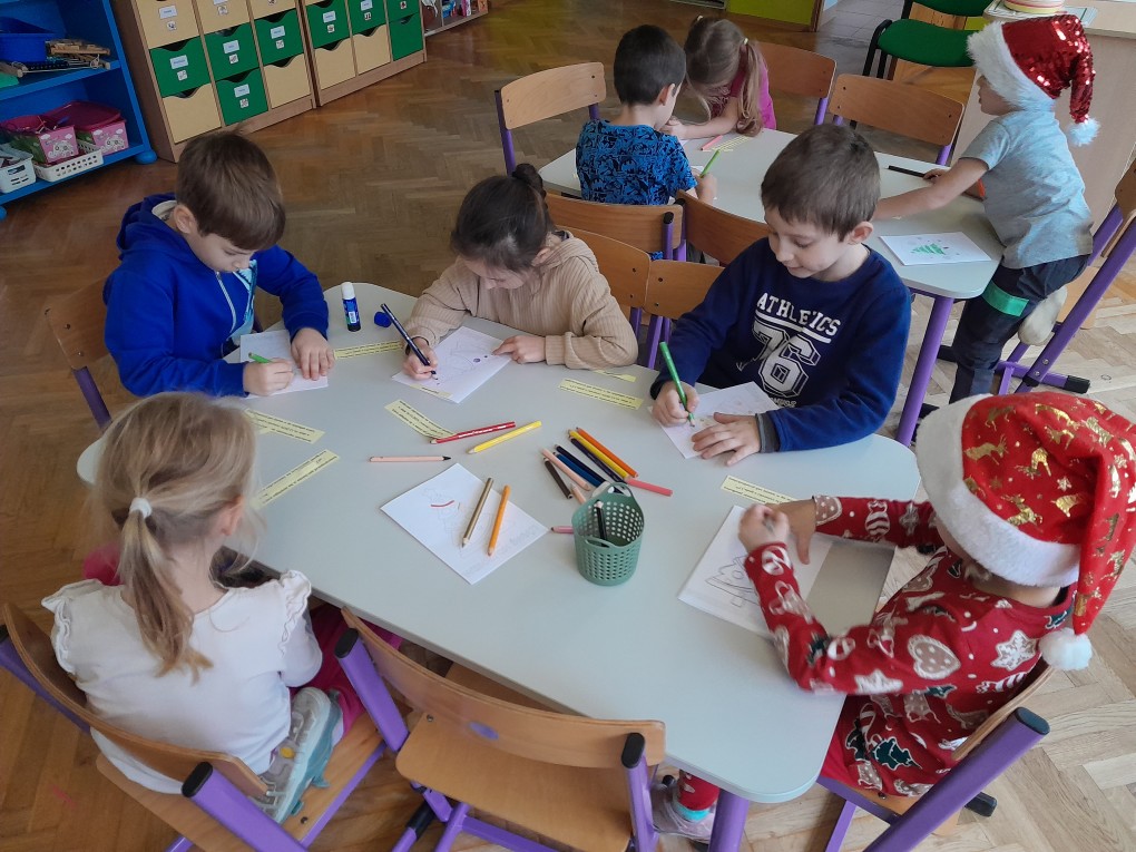 Truskawki z radością otworzyły kolejne okienko kalendarza adwentowego. Tym razem czekało na nie wyjątkowe zadanie - przygotowanie zaproszeń dla rodziców na jasełka. Dzieci z zaangażowaniem kolorowały obrazki, tworząc piękne i wyjątkowe kartki. Wspólna praca przyniosła im wiele radości i wprowadziła wszystkich w magiczny, przedświąteczny nastrój.