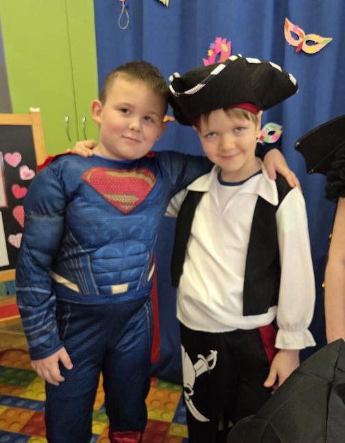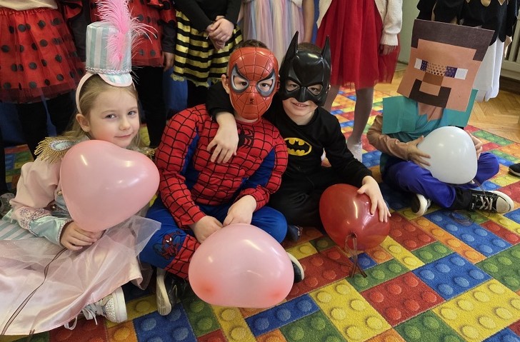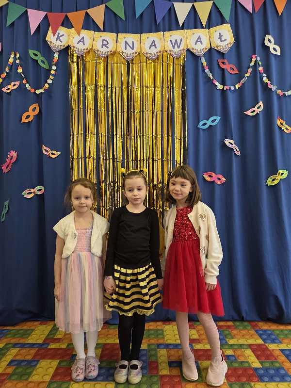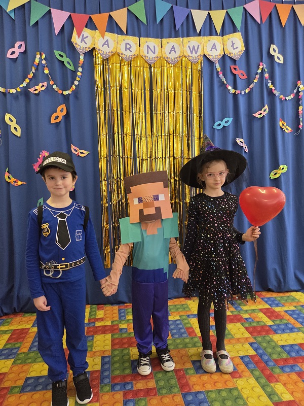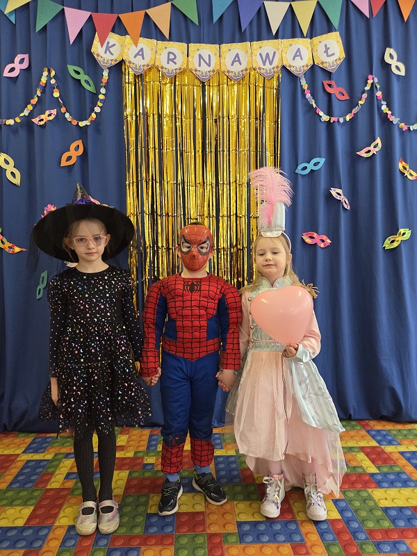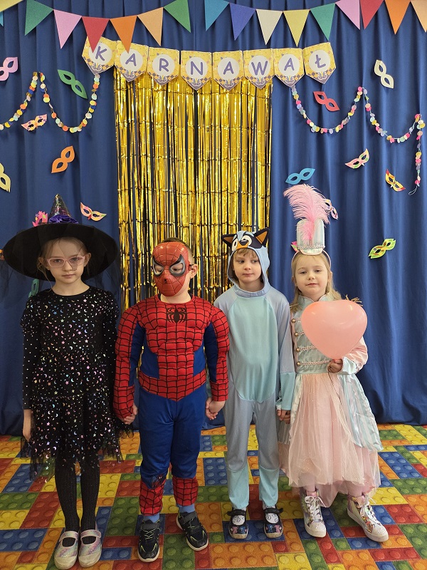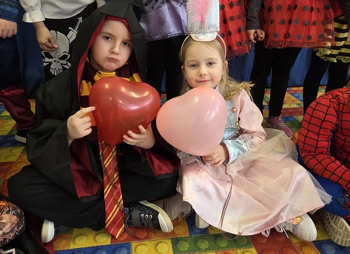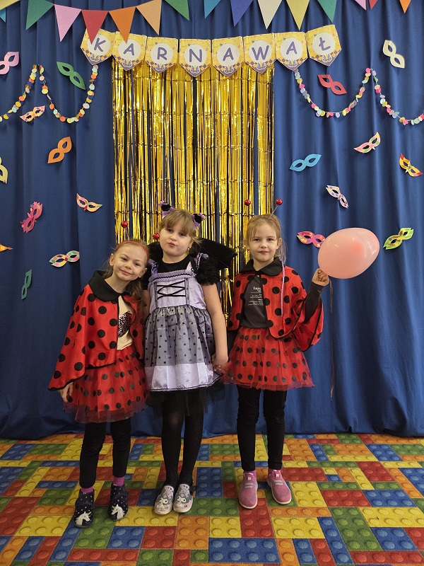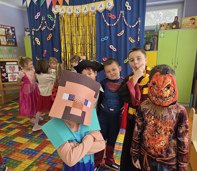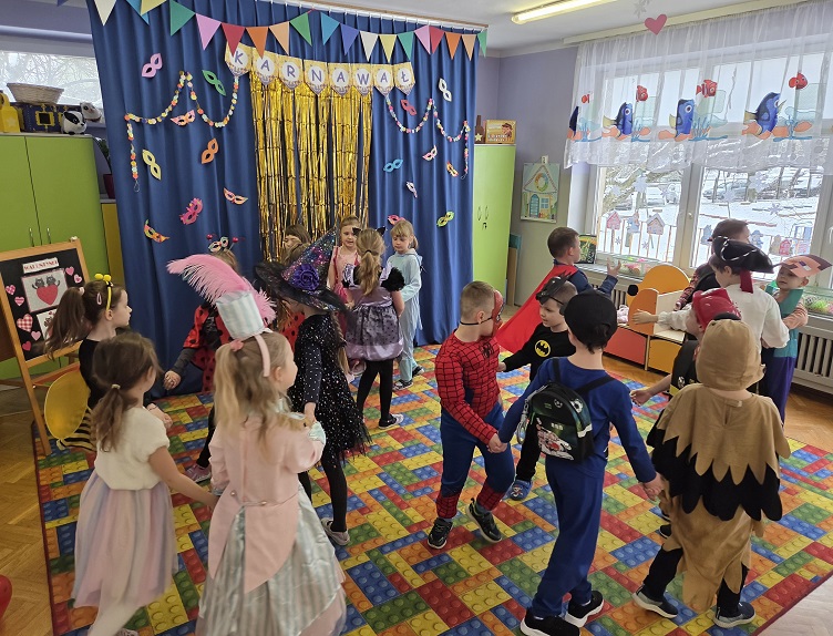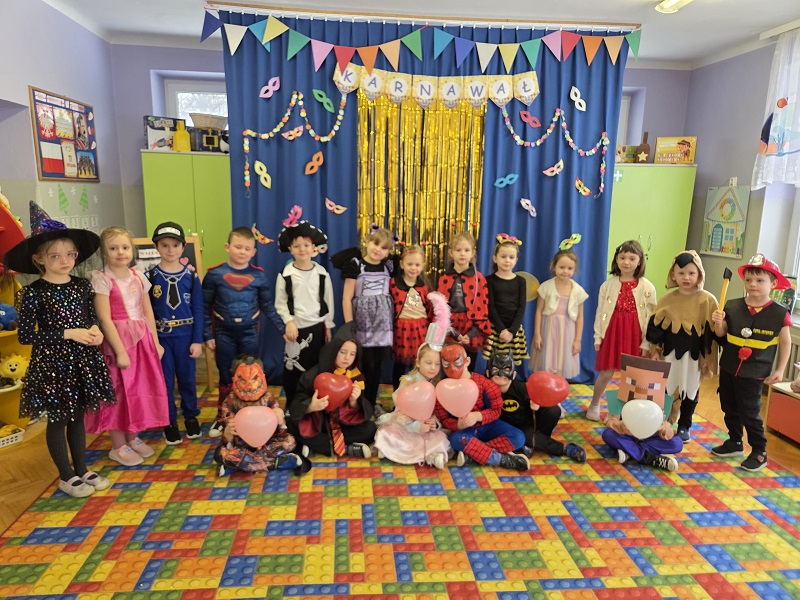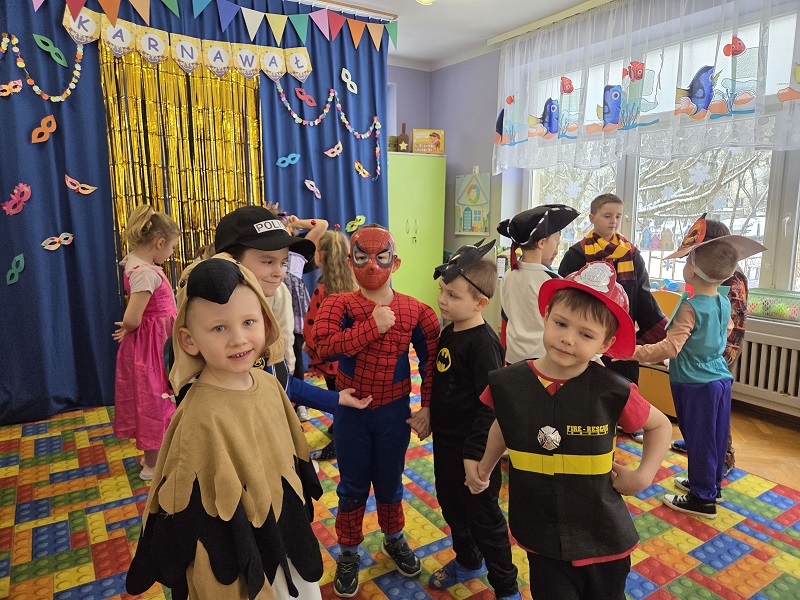 Przedszkolaki z grupy Biedronek uczestniczyły w zabawach karnawałowych, biorąc udział w konkurencjach zręcznościowych, zabawach ruchowych i tanecznych. Dzieci przebrane były za bohaterów znanych bajek i filmów, wróżki, królewny, czarownice i zwierzęta.