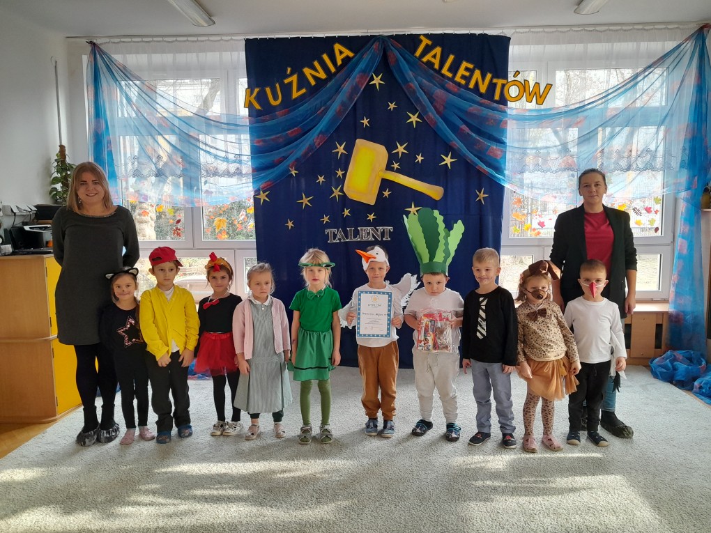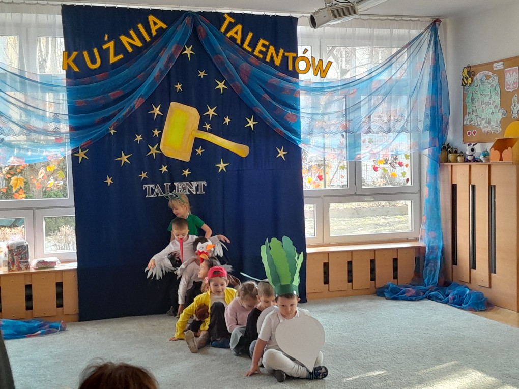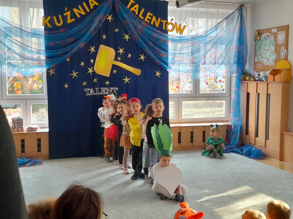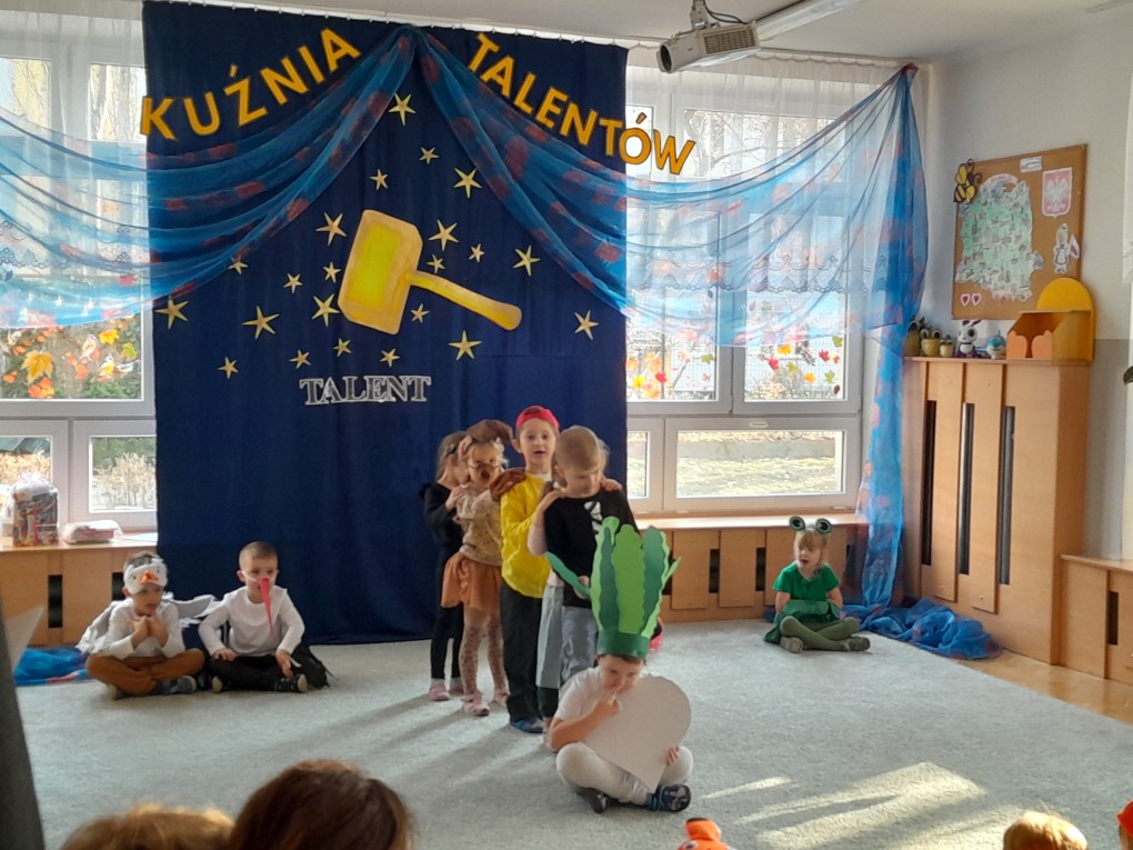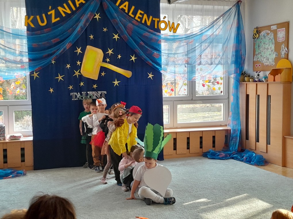 20 listopada dzieci z naszej grupy wzięły udział w konkursie "Kuźnia talentów", organizowanym w Przedszkolu Miejskim nr 124 w Łodzi. Podczas występu mali artyści zaprezentowali inscenizację wiersza Juliana Tuwima "Rzepka", wykazując się wspaniałą znajomością tekstu oraz ekspresją i radością ze wspólnego występowania. Serdecznie gratulujemy wszystkim uczestnikom i dziękujemy za reprezentowanie naszego przedszkola.
