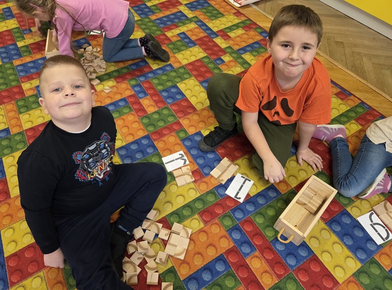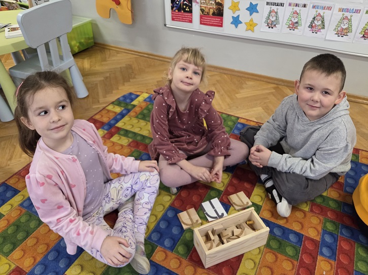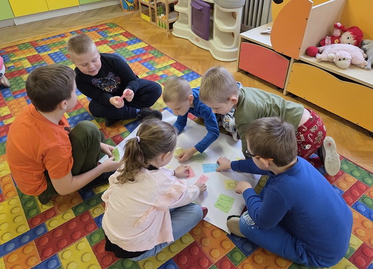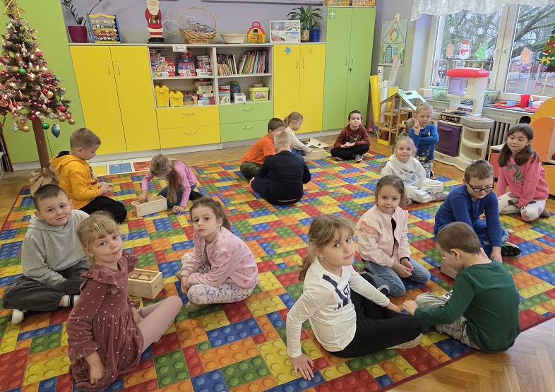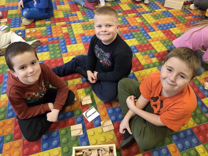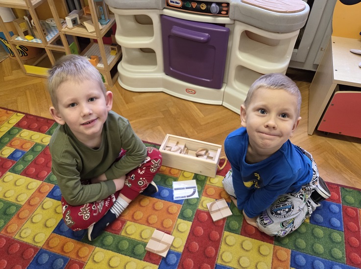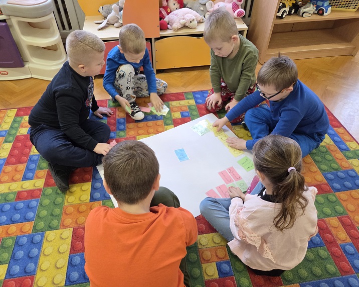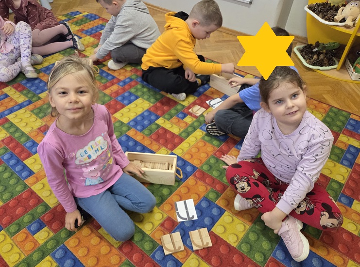 Przedszkolaki z grupy Biedronek utrwalając poznane litery: u i n, słuchają wierszy: "Wizyta w muzeum", "Nosalowe królestwo", wykonują ćwiczenia językowe i słowne, układają litery z klocków konstrukcyjnych w małych zespołach oraz uczestniczą w zabawach w parach: "Moja ulubiona litera", "Literowe pary", "Jaka to litera?", kontynuując realizację innowacji pedagogicznej "Skuteczne Zdziwienie - Wyzwalające Myślenie".
