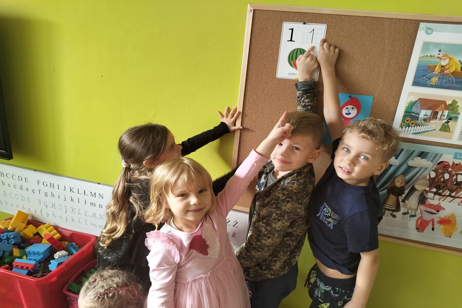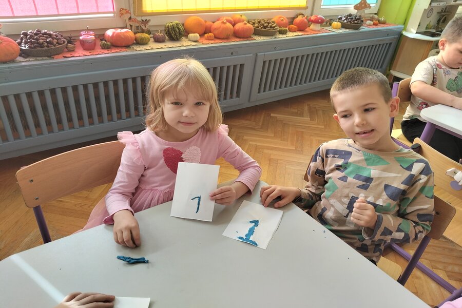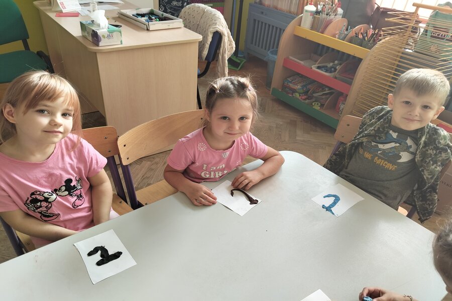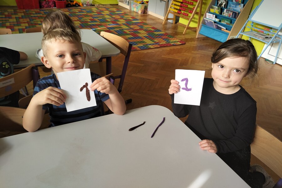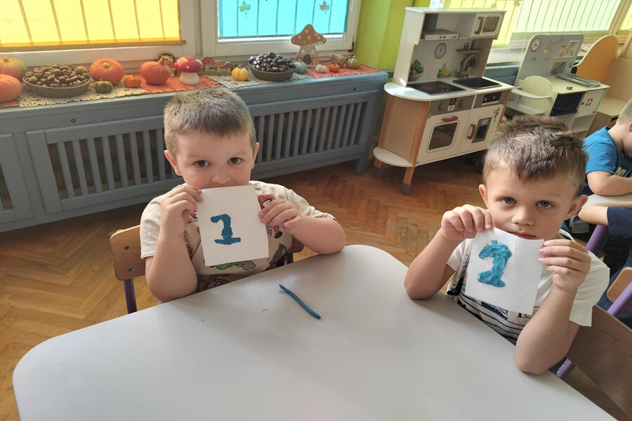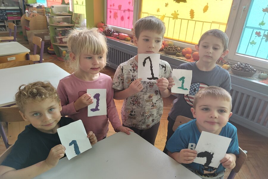 Nasze przedszkolaki wysłuchały bajki ,,Charlie i cyferki'' poznając pierwszą cyfrę ,,1''. Wszyscy wyszukiwali jedynek w sali na różnych przedmiotach, sami lepili jedynki z plasteliny, pracowali w swoich książkach i rozwiązywali różne zadania matematyczne z cyferkami ucząc się prawidłowej kolejności liczenia.
