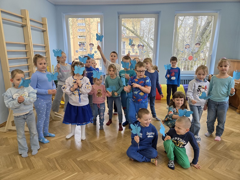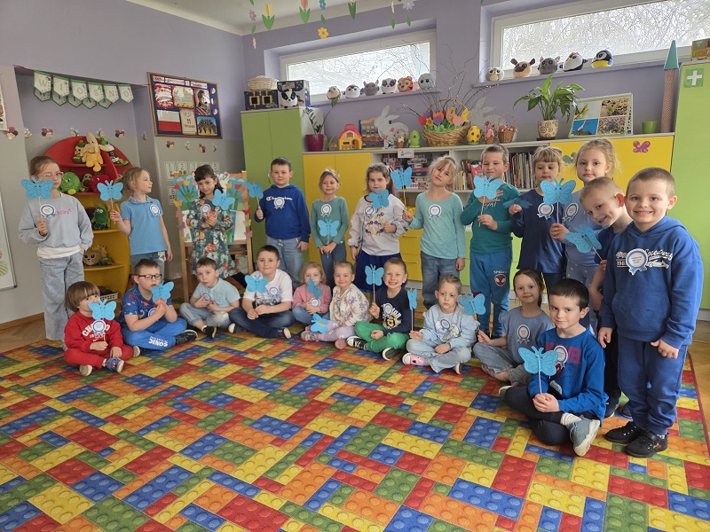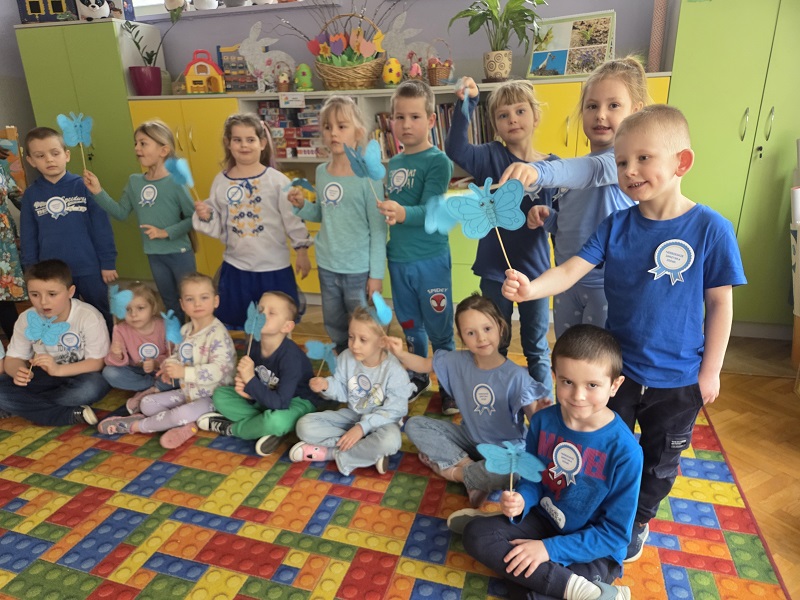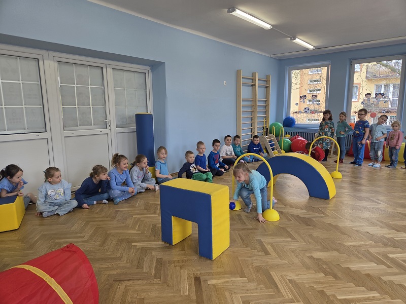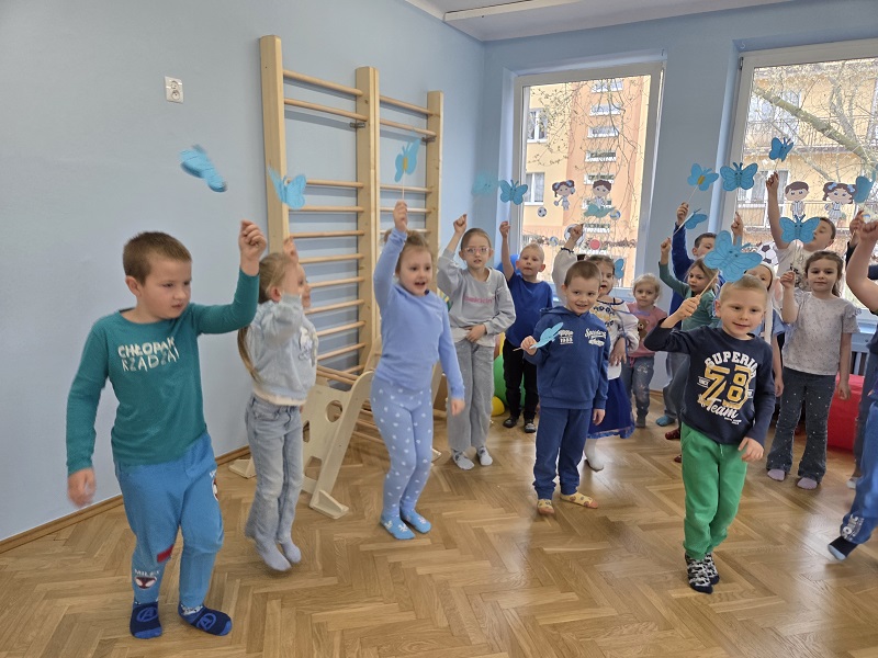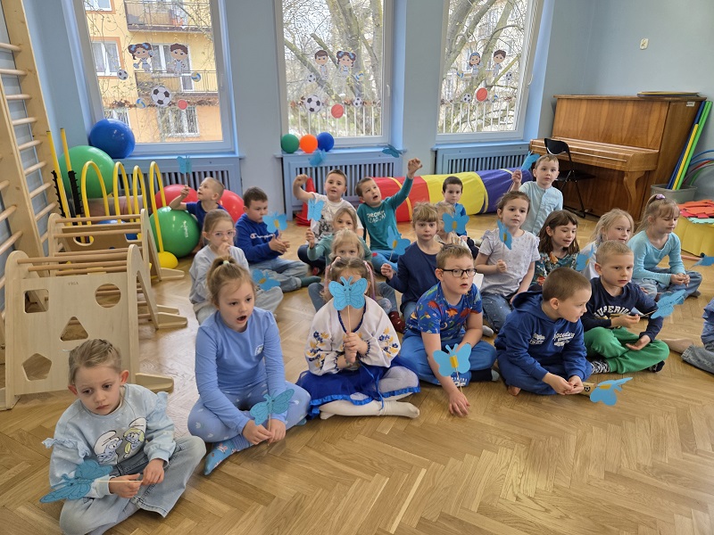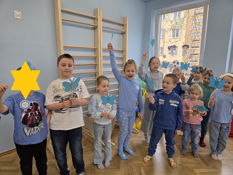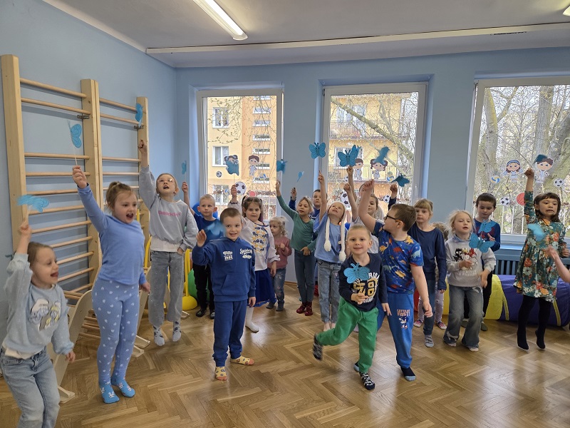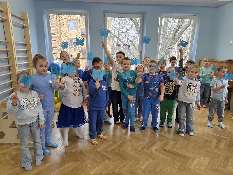 Przedszkolaki z grupy Biedronek uczestniczyły w Niebieskich Igrzyskach, które są formą obchodów Światowego Dnia Świadomości Autyzmu, poprzez wspólne zabawy ruchowe i taneczne oraz małe zawody sportowe. Przedszkolaki doskonaliły swoją sprawność fizyczną, koordynację ruchowo-wzrokową, koncentrację, a co najważniejsze - wspólną zabawę, wspierając się na wzajem.