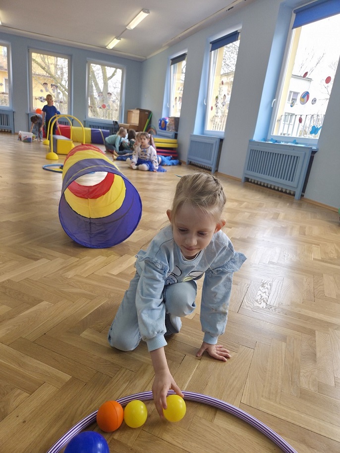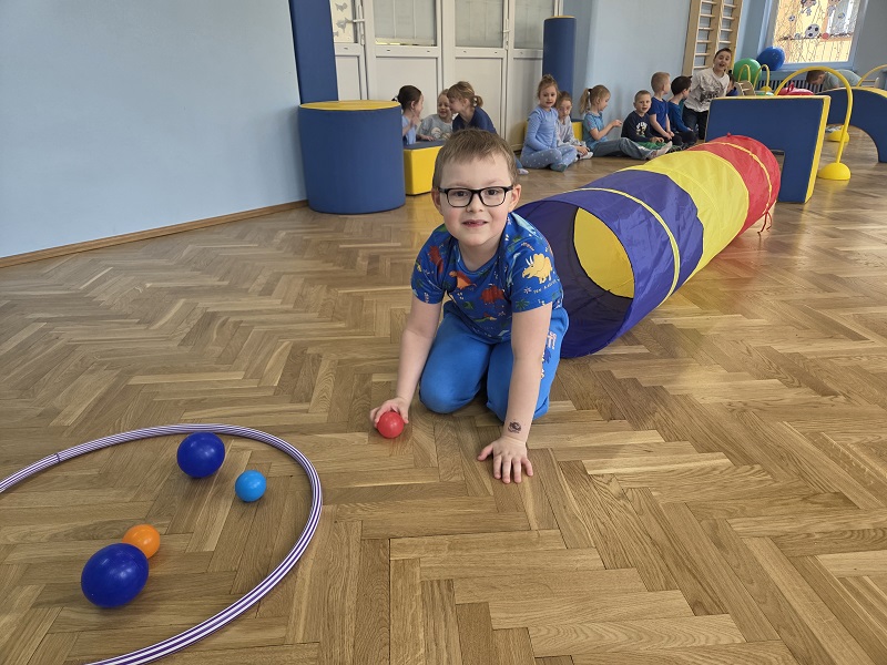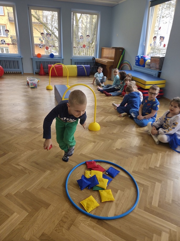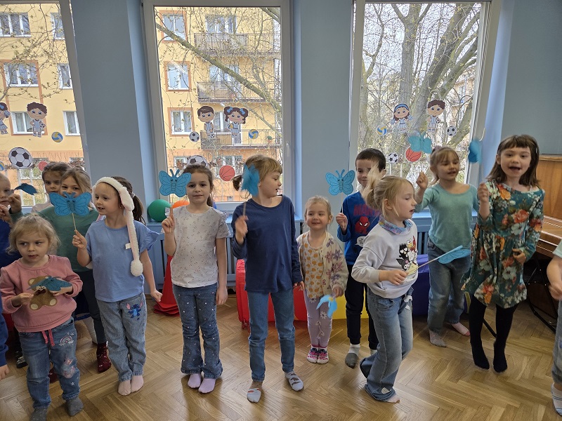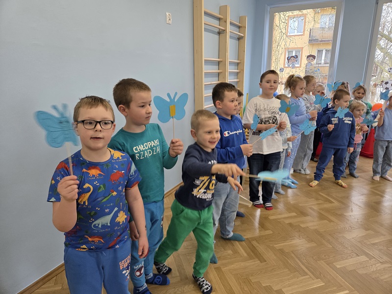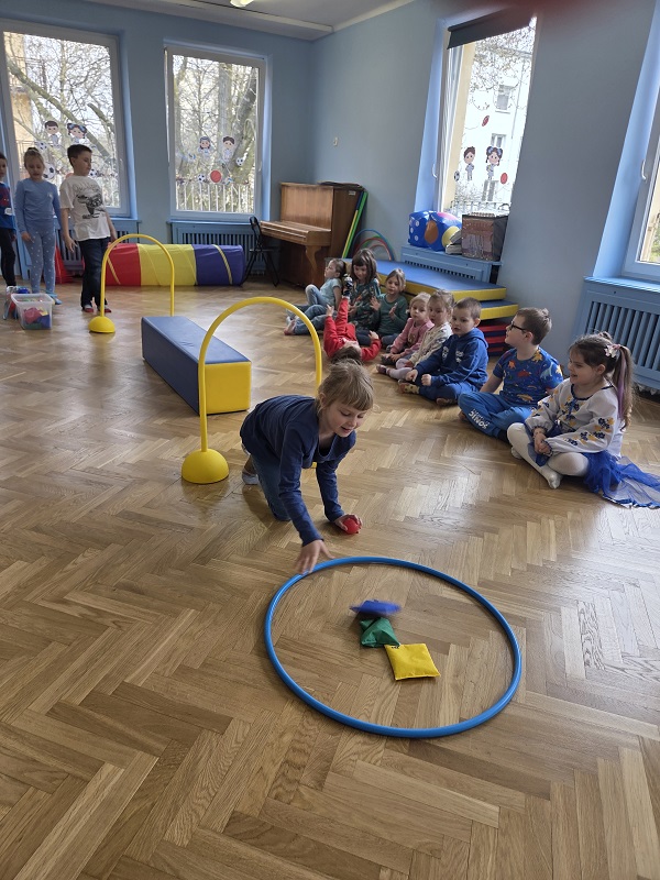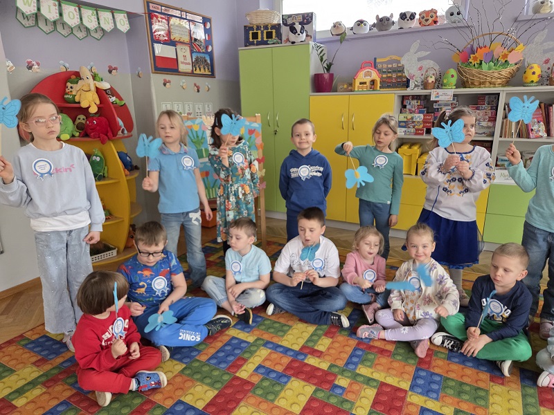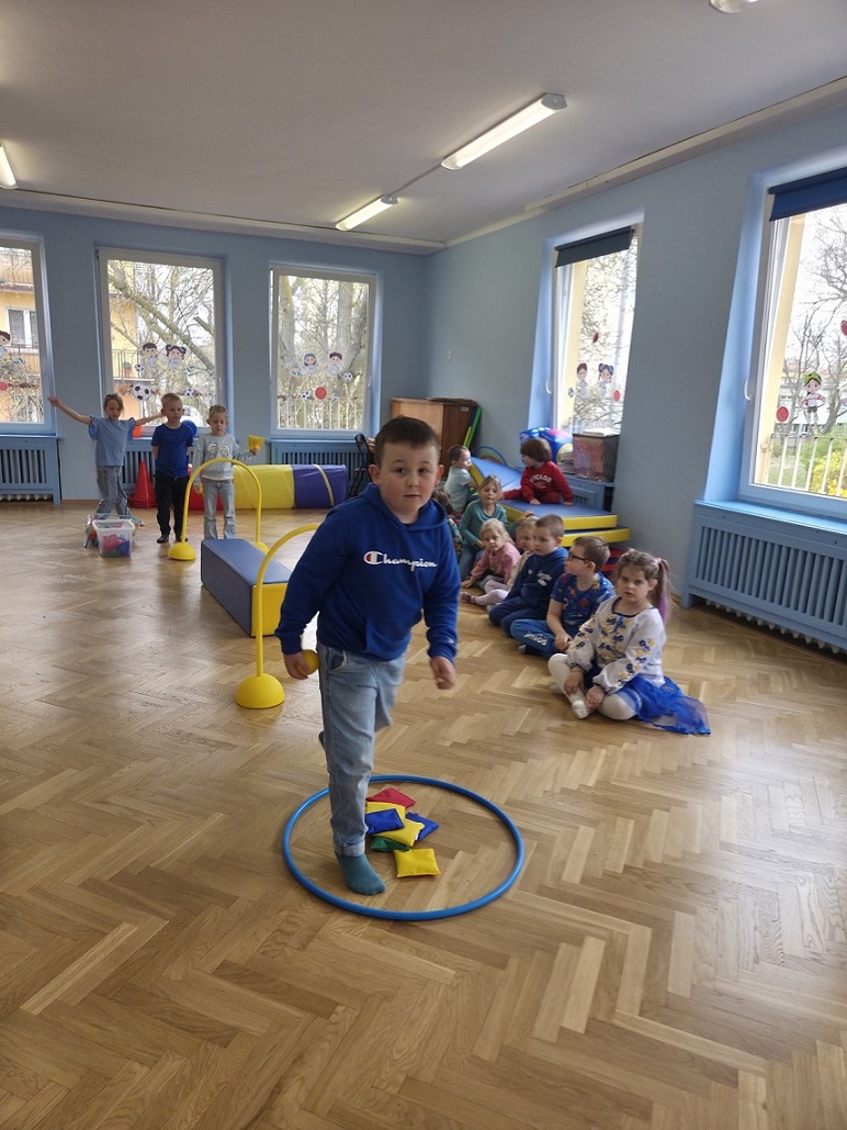 Przedszkolaki z grupy Biedronek uczestniczyły w Niebieskich Igrzyskach, które są formą obchodów Światowego Dnia Świadomości Autyzmu, poprzez wspólne zabawy ruchowe i taneczne oraz małe zawody sportowe. Przedszkolaki doskonaliły swoją sprawność fizyczną, koordynację ruchowo-wzrokową, koncentrację, a co najważniejsze - wspólną zabawę, wspierając się na wzajem.
