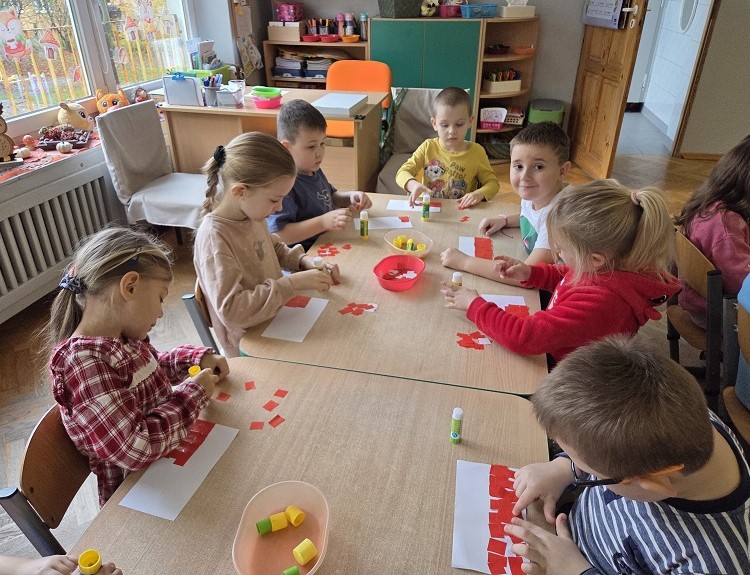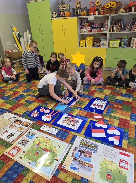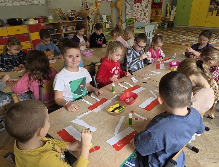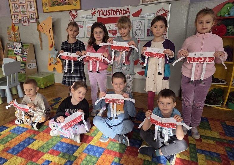 Obchody świąt narodowych – “11 listopada - Święto Niepodległości” są okazją do rozmów o naszej Ojczyźnie. W celu przybliżenia tematyki patriotycznej grupa Biedronek śpiewała piosenki, poznawała symbole narodowe: godło, flagę oraz dumnie odśpiewały hymn narodowy. Przy piosence „Jesteśmy Polką i Polakiem” przedszkolaki ,,wsiadły” do pociągu i odwiedziły najważniejsze miasta naszego kraju. Utrwalając znajomość polskich symboli, dzieci na zajęciach wykonały flagi i kotyliony. Zajęcia te miały na celu kształtowanie miłości i przywiązania do ojczyzny, do wolnego kraju jego kultury i tradycji. Dzięki temu dzieci utrwaliły znajomość symboli narodowych naszego państwa oraz poznały wydarzenia związane z odzyskaniem niepodległości przez Polskę.