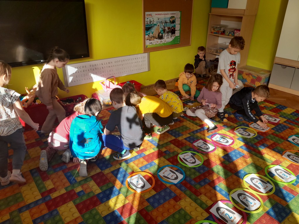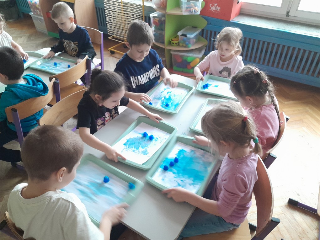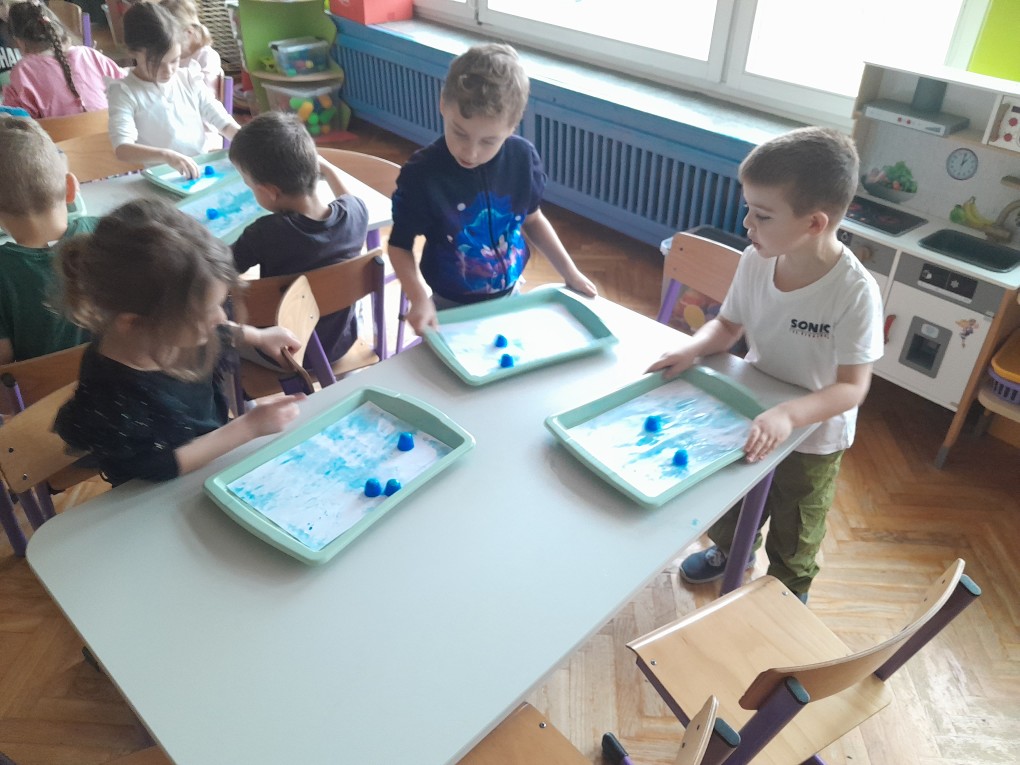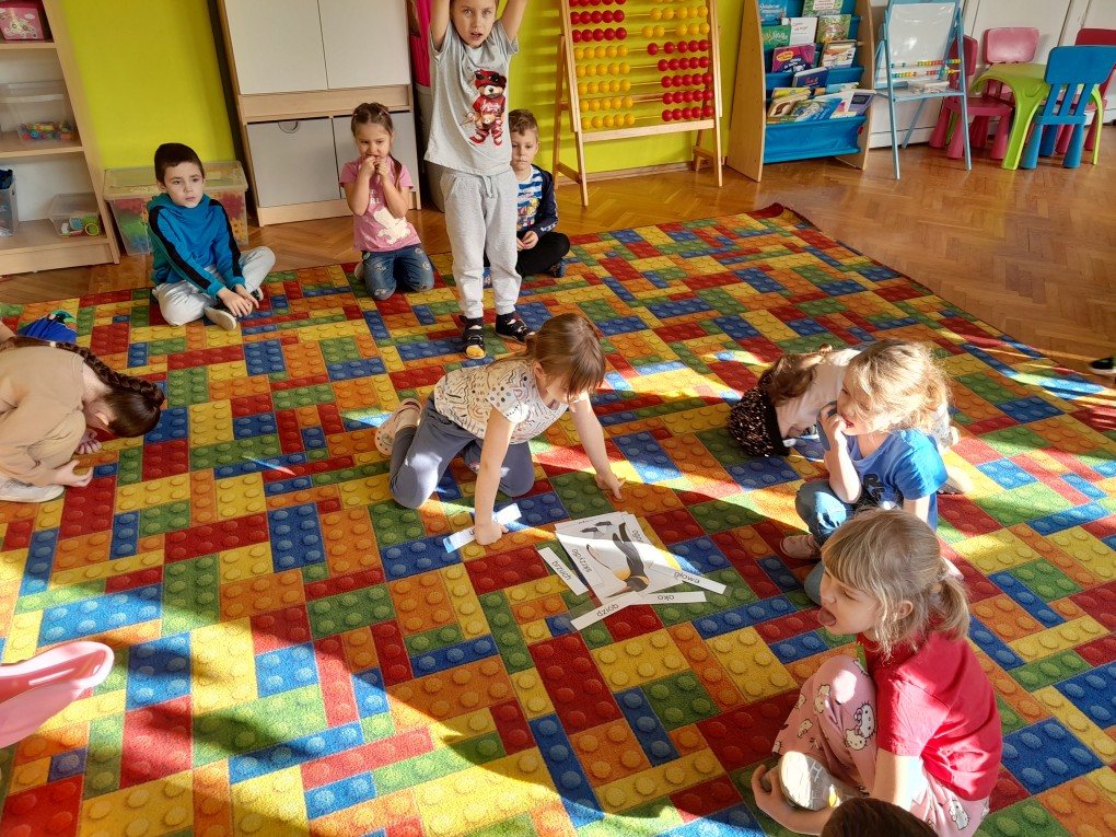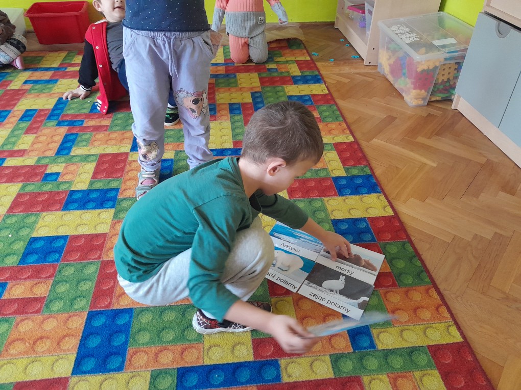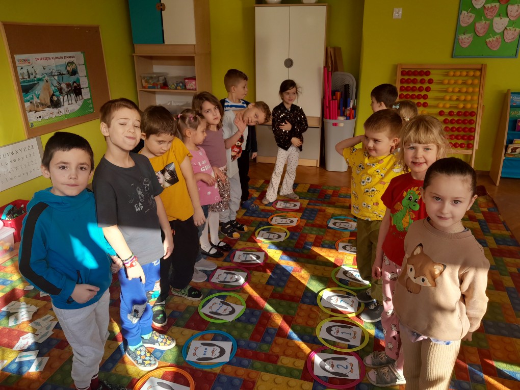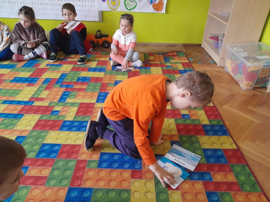 W tym tygodniu nasze przedszkolaki wybrały się w niezwykłą podróż do mroźnych krain – Arktyki i Antarktyki. Dzieci oglądały mapę świata i dowiedziały się, gdzie znajdują się obszary, na których przez cały rok panuje zima, a ziemię pokrywają śnieg i lód. Poznały zwierzęta polarne oraz uczyły się segregować je na te żyjące w Arktyce i te zamieszkujące Antarktykę. Podczas zajęć plastycznych wykonały urocze pingwinki, które przykleiły na wcześniej pomalowane kartki. Tło powstało z farb przygotowanych z kostek lodu z dodatkiem niebieskiej farby, co pozwoliło dzieciom w ciekawy sposób doświadczyć „lodowego” malowania. Z opowiadania o śnie małej Zosi przedszkolaki dowiedziały się, dlaczego na dalekiej północy buduje się kolorowe domy. Następnie w grupach konstruowały z klocków własne, barwne domki. Dzieci poznały również życie pingwinów i wiele ciekawostek na ich temat. Uczyły się nazywać części ciała pingwina, a pomagał im w tym nasz Mateusz, który odczytywał przygotowane napisy. Nie zabrakło także zabaw ruchowych i matematycznych, podczas których dzieci utrwalały umiejętność liczenia oraz rozpoznawania cyfr. To był tydzień pełen nowych doświadczeń, radości i wspólnej nauki!