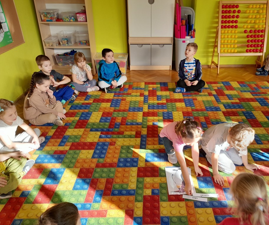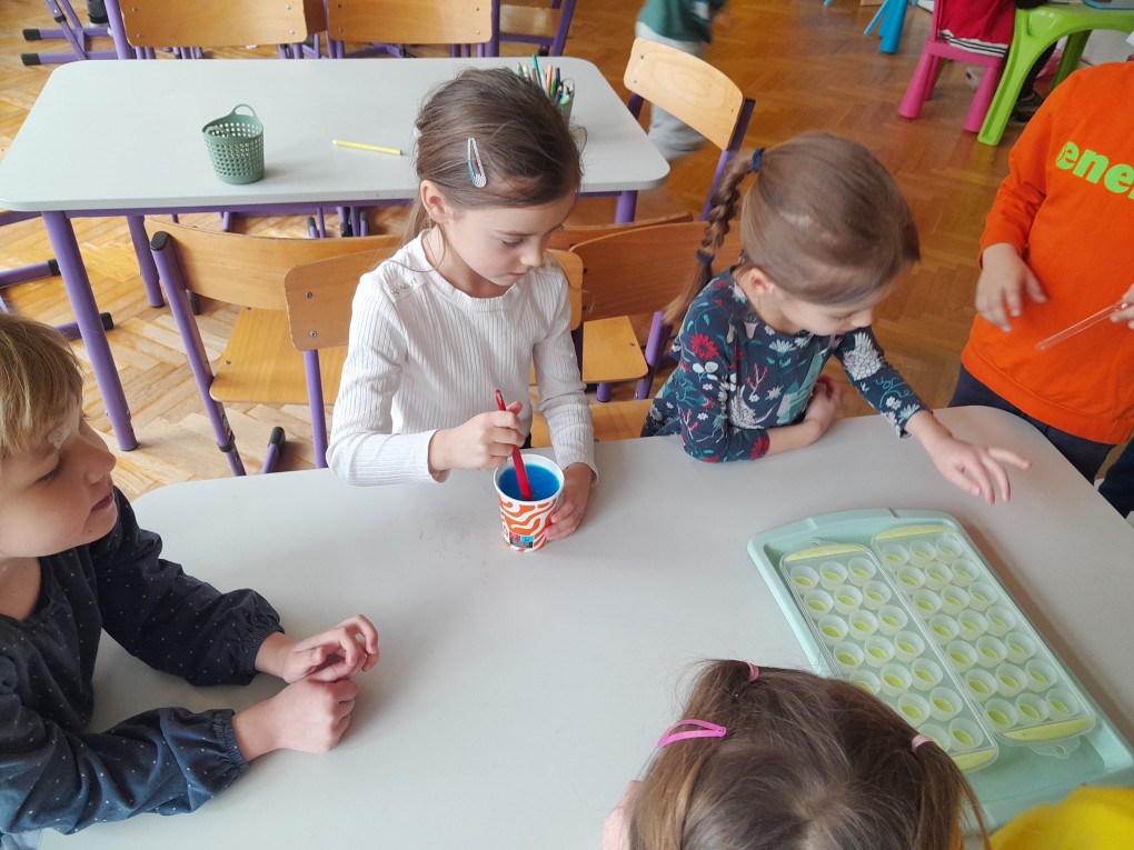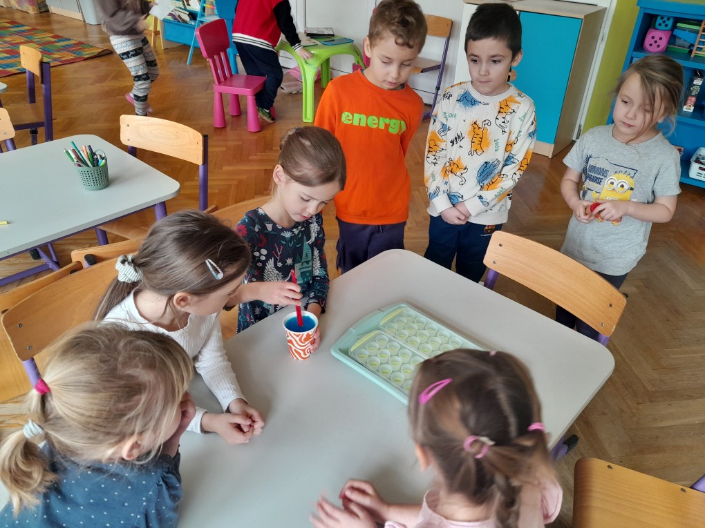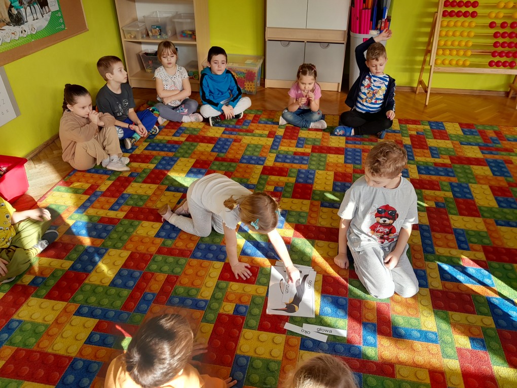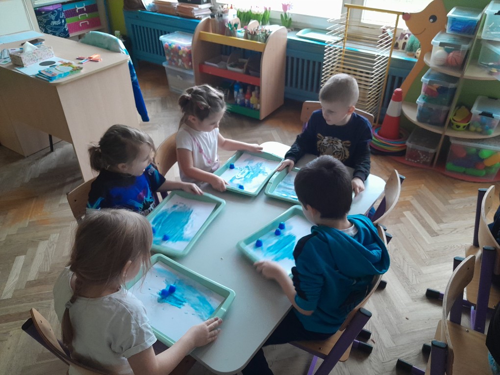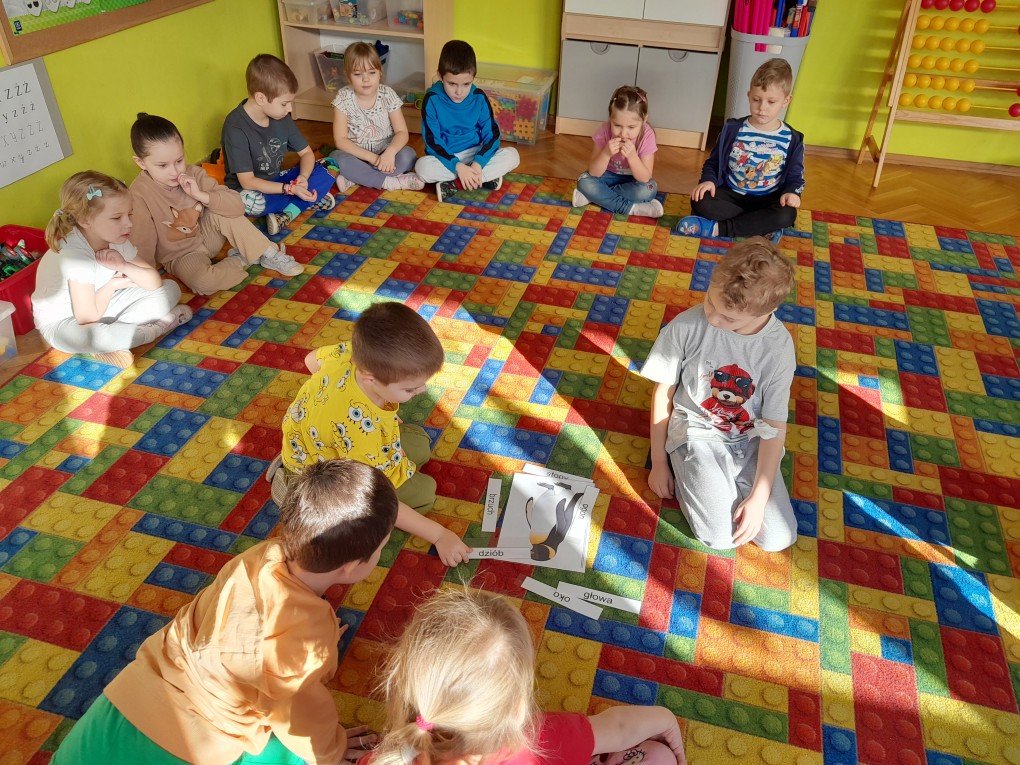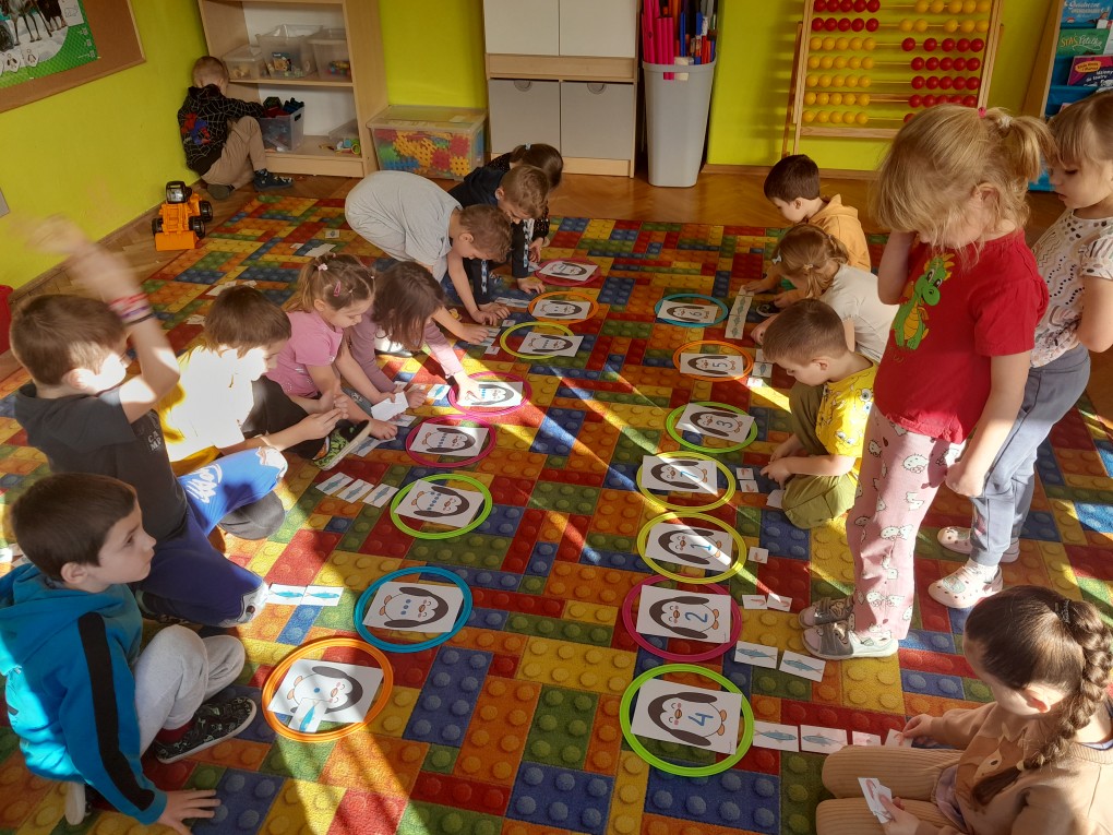 W tym tygodniu nasze przedszkolaki wybrały się w niezwykłą podróż do mroźnych krain – Arktyki i Antarktyki. Dzieci oglądały mapę świata i dowiedziały się, gdzie znajdują się obszary, na których przez cały rok panuje zima, a ziemię pokrywają śnieg i lód. Poznały zwierzęta polarne oraz uczyły się segregować je na te żyjące w Arktyce i te zamieszkujące Antarktykę. Podczas zajęć plastycznych wykonały urocze pingwinki, które przykleiły na wcześniej pomalowane kartki. Tło powstało z farb przygotowanych z kostek lodu z dodatkiem niebieskiej farby, co pozwoliło dzieciom w ciekawy sposób doświadczyć „lodowego” malowania. Z opowiadania o śnie małej Zosi przedszkolaki dowiedziały się, dlaczego na dalekiej północy buduje się kolorowe domy. Następnie w grupach konstruowały z klocków własne, barwne domki. Dzieci poznały również życie pingwinów i wiele ciekawostek na ich temat. Uczyły się nazywać części ciała pingwina, a pomagał im w tym nasz Mateusz, który odczytywał przygotowane napisy. Nie zabrakło także zabaw ruchowych i matematycznych, podczas których dzieci utrwalały umiejętność liczenia oraz rozpoznawania cyfr. To był tydzień pełen nowych doświadczeń, radości i wspólnej nauki!