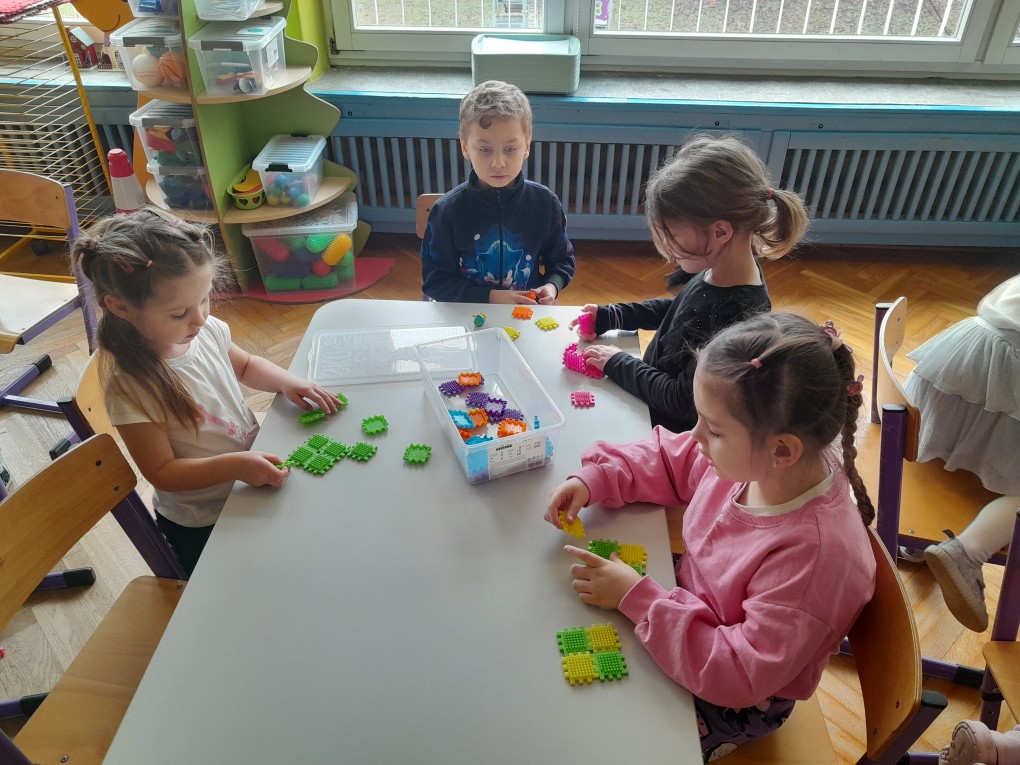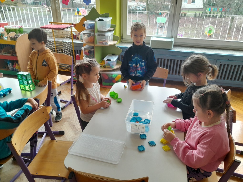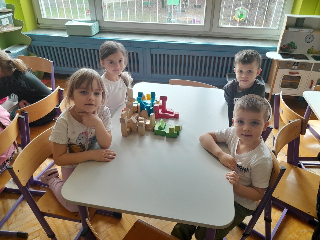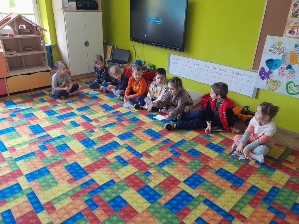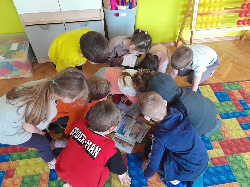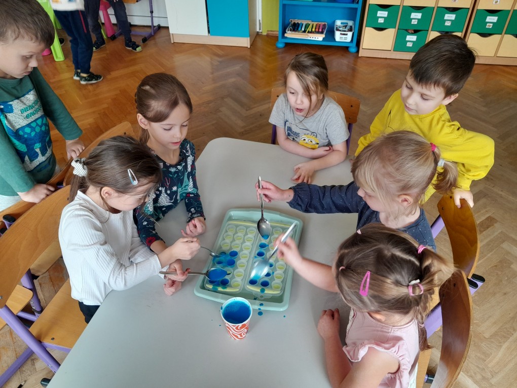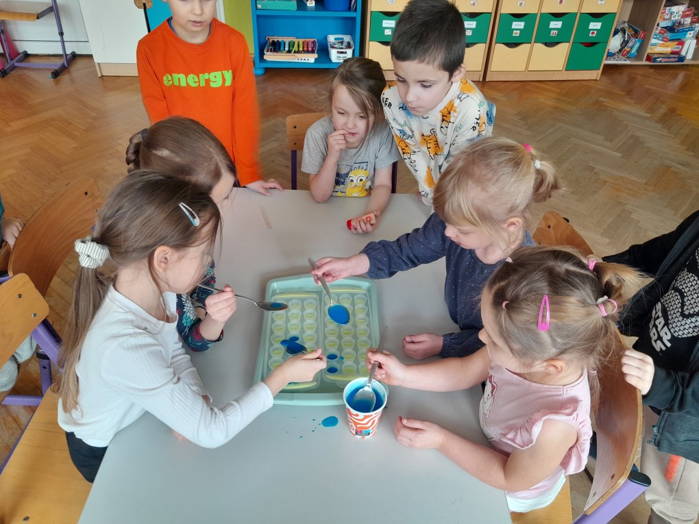 W tym tygodniu nasze przedszkolaki wybrały się w niezwykłą podróż do mroźnych krain – Arktyki i Antarktyki. Dzieci oglądały mapę świata i dowiedziały się, gdzie znajdują się obszary, na których przez cały rok panuje zima, a ziemię pokrywają śnieg i lód. Poznały zwierzęta polarne oraz uczyły się segregować je na te żyjące w Arktyce i te zamieszkujące Antarktykę. Podczas zajęć plastycznych wykonały urocze pingwinki, które przykleiły na wcześniej pomalowane kartki. Tło powstało z farb przygotowanych z kostek lodu z dodatkiem niebieskiej farby, co pozwoliło dzieciom w ciekawy sposób doświadczyć „lodowego” malowania. Z opowiadania o śnie małej Zosi przedszkolaki dowiedziały się, dlaczego na dalekiej północy buduje się kolorowe domy. Następnie w grupach konstruowały z klocków własne, barwne domki. Dzieci poznały również życie pingwinów i wiele ciekawostek na ich temat. Uczyły się nazywać części ciała pingwina, a pomagał im w tym nasz Mateusz, który odczytywał przygotowane napisy. Nie zabrakło także zabaw ruchowych i matematycznych, podczas których dzieci utrwalały umiejętność liczenia oraz rozpoznawania cyfr. To był tydzień pełen nowych doświadczeń, radości i wspólnej nauki!