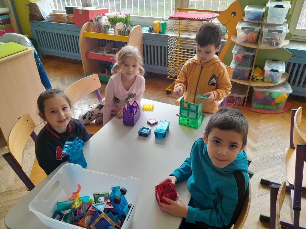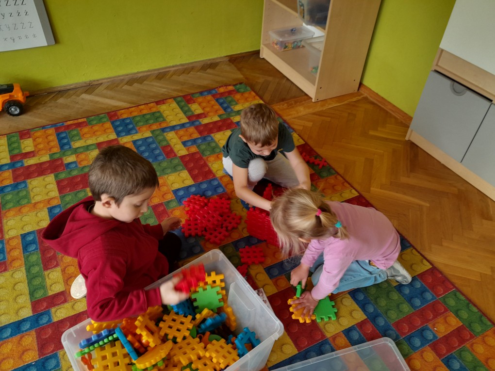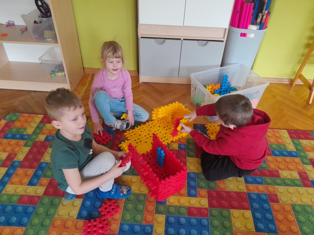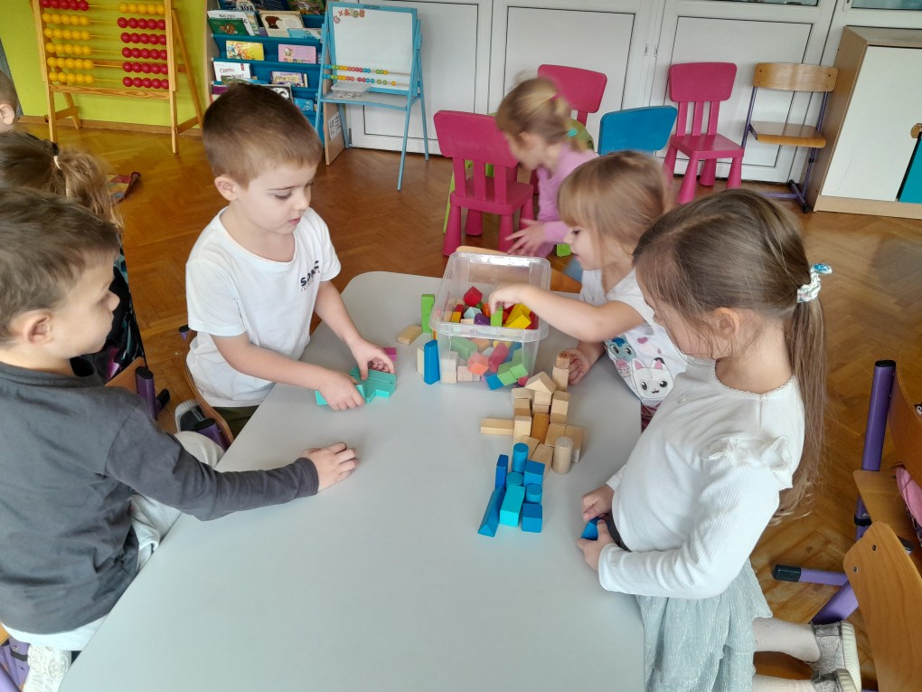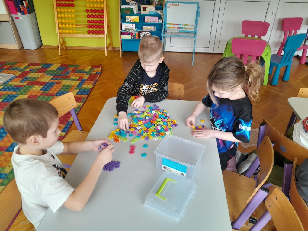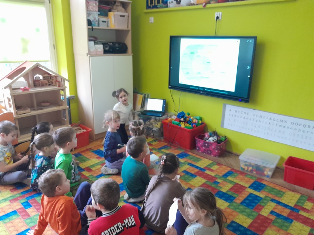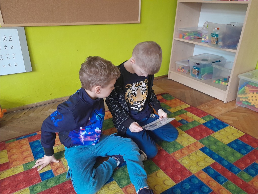W tym tygodniu nasze przedszkolaki wybrały się w niezwykłą podróż do mroźnych krain – Arktyki i Antarktyki. Dzieci oglądały mapę świata i dowiedziały się, gdzie znajdują się obszary, na których przez cały rok panuje zima, a ziemię pokrywają śnieg i lód. Poznały zwierzęta polarne oraz uczyły się segregować je na te żyjące w Arktyce i te zamieszkujące Antarktykę. Podczas zajęć plastycznych wykonały urocze pingwinki, które przykleiły na wcześniej pomalowane kartki. Tło powstało z farb przygotowanych z kostek lodu z dodatkiem niebieskiej farby, co pozwoliło dzieciom w ciekawy sposób doświadczyć „lodowego” malowania. Z opowiadania o śnie małej Zosi przedszkolaki dowiedziały się, dlaczego na dalekiej północy buduje się kolorowe domy. Następnie w grupach konstruowały z klocków własne, barwne domki. Dzieci poznały również życie pingwinów i wiele ciekawostek na ich temat. Uczyły się nazywać części ciała pingwina, a pomagał im w tym nasz Mateusz, który odczytywał przygotowane napisy. Nie zabrakło także zabaw ruchowych i matematycznych, podczas których dzieci utrwalały umiejętność liczenia oraz rozpoznawania cyfr. To był tydzień pełen nowych doświadczeń, radości i wspólnej nauki!