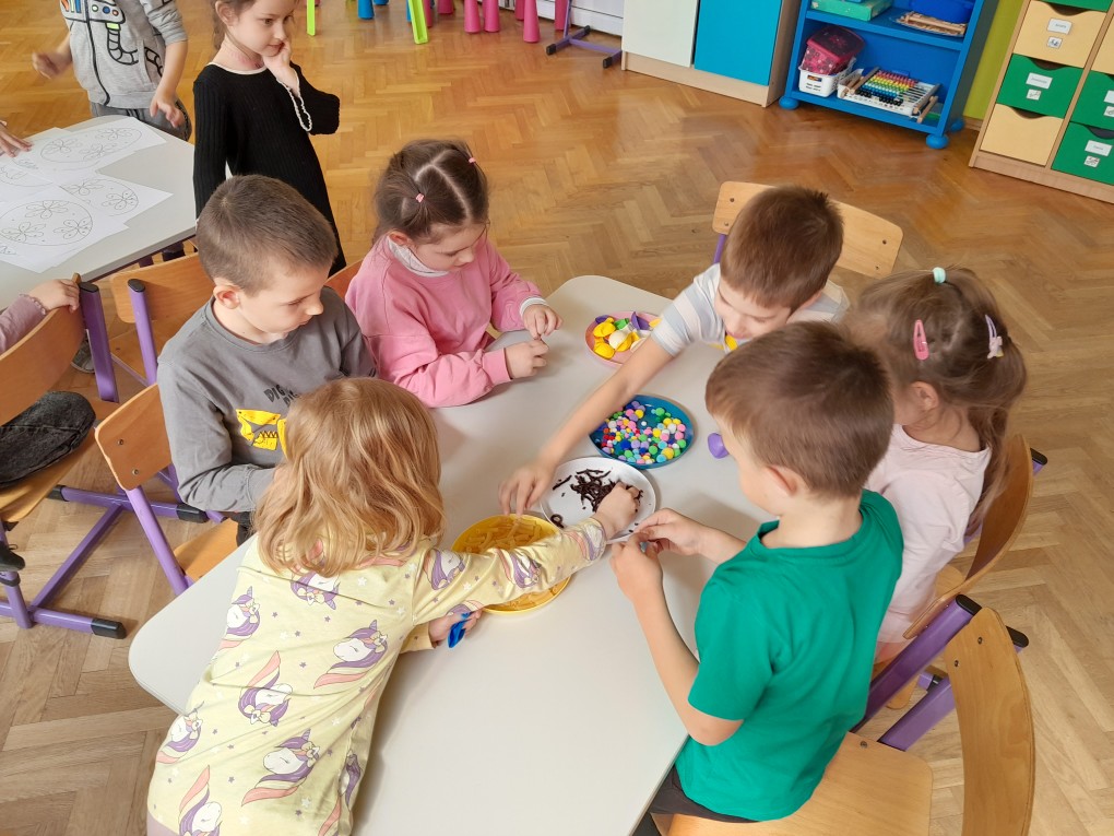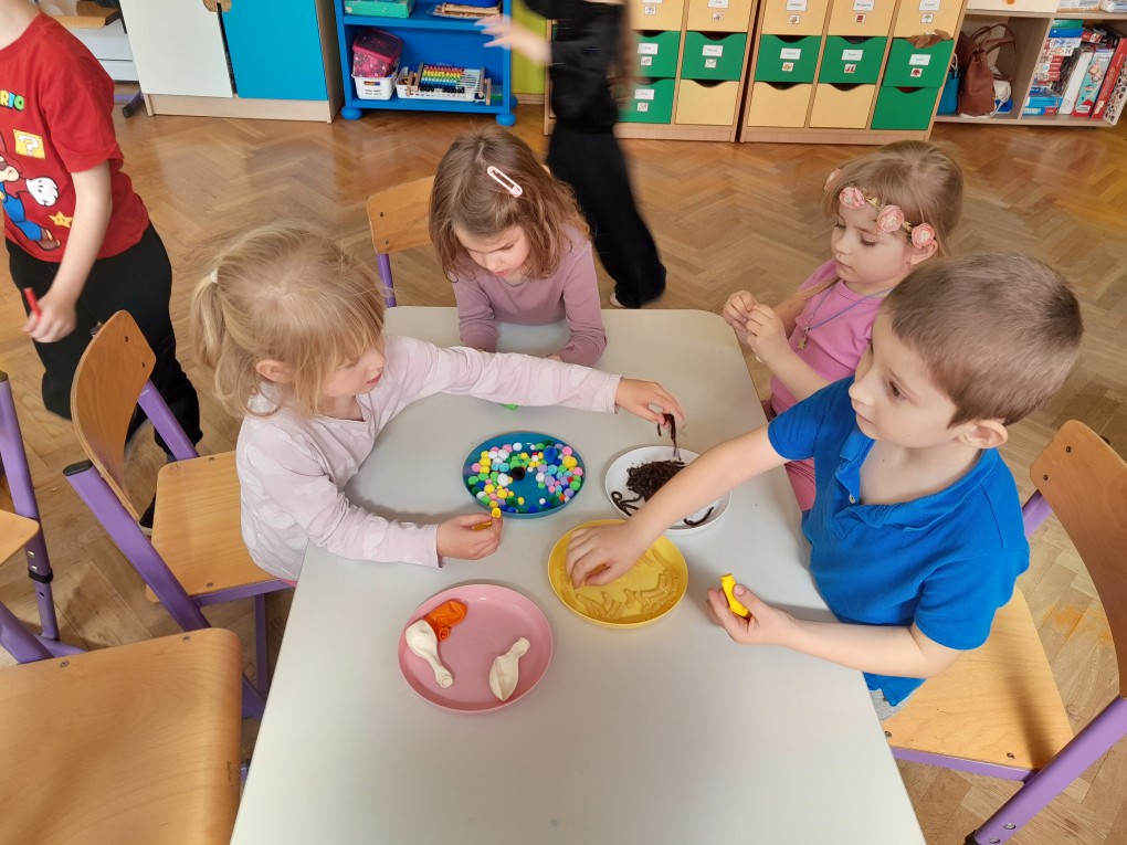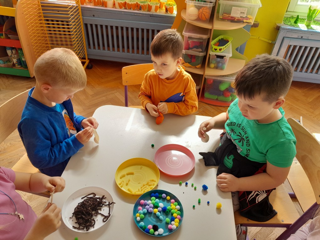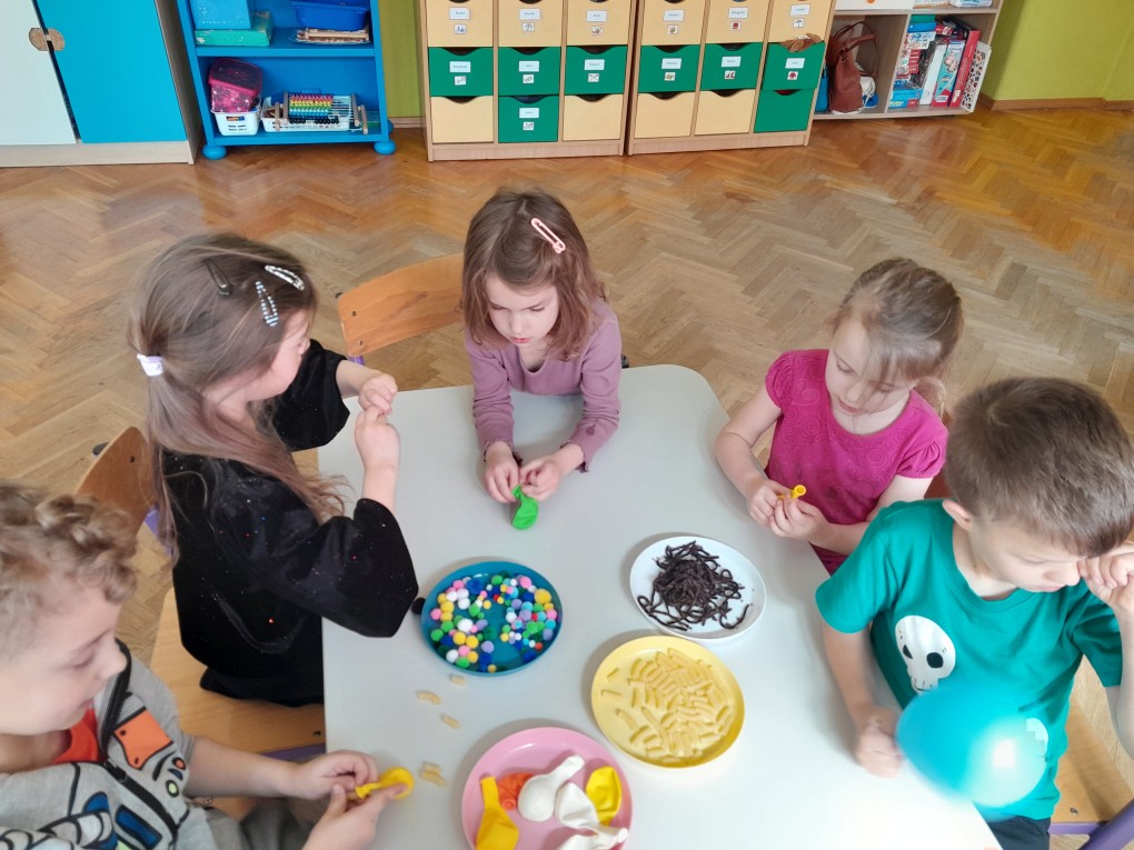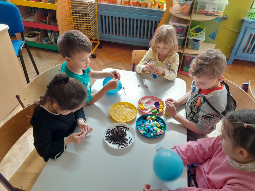 W ramach drugiego tygodnia projektu edukacyjnego "Świętujemy! Freblujemy!" dzieci wykonały sensoryczne balony. Do ich wnętrza włożyły różnorodne materiały, takie jak włóczka, pompony oraz makaron, a następnie balony zostały nadmuchane. Podczas wspólnych zabaw słuchowych dzieci z dużym zaangażowaniem rozpoznawały, które balony wydają takie same dźwięki. Było to nie tylko świetne ćwiczenie dla zmysłów, ale także doskonała okazja do nauki poprzez zabawę.