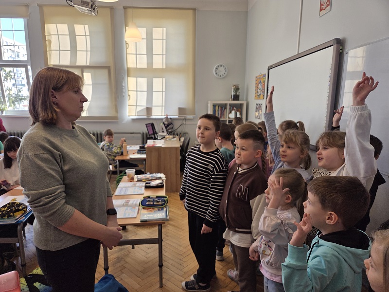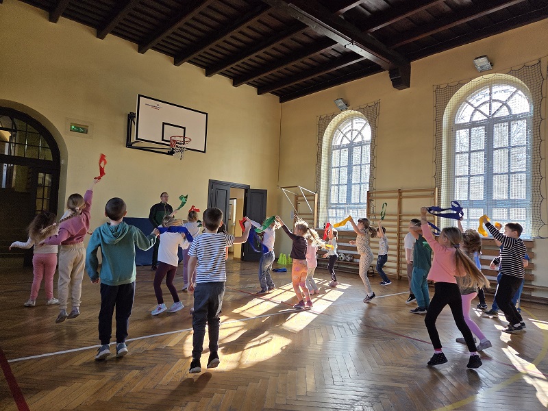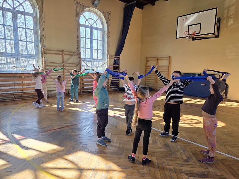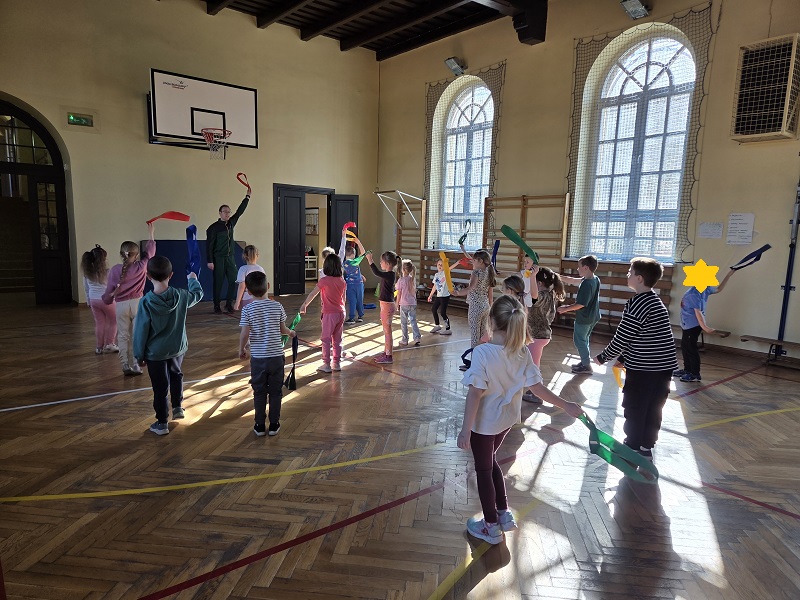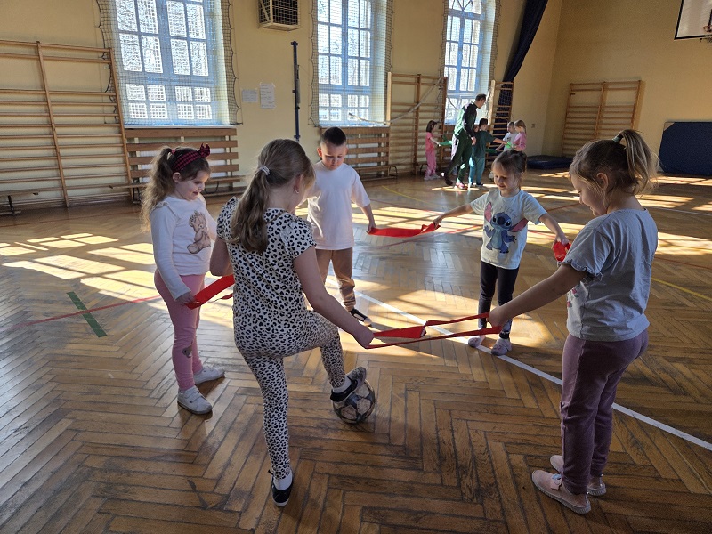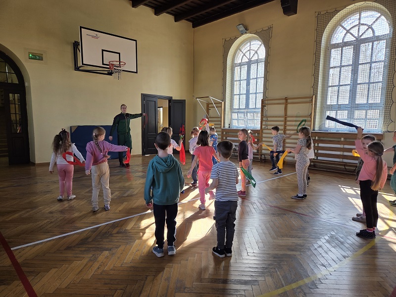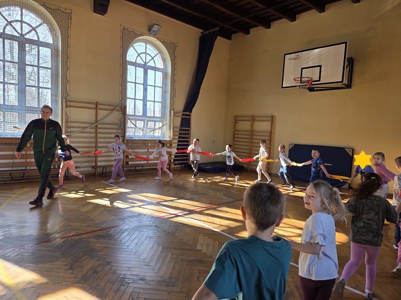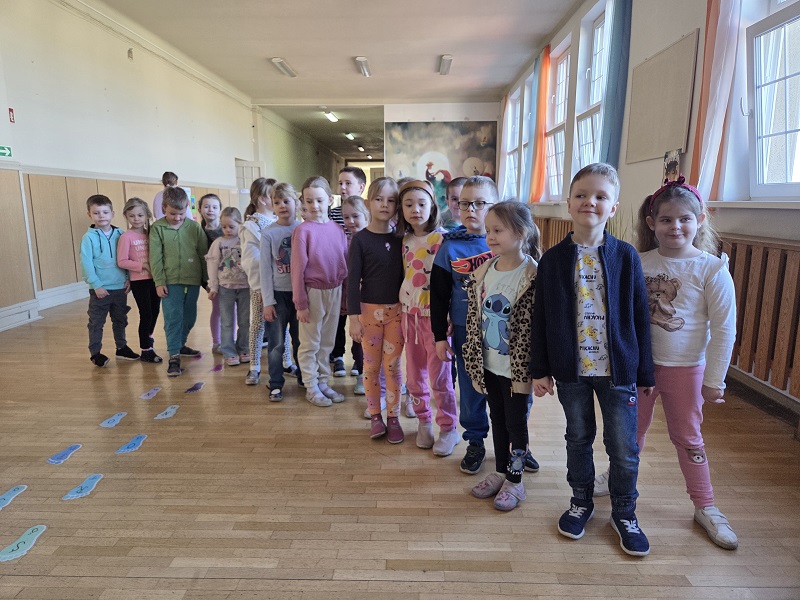 W dniu 3 marca 2026r. przedszkolaki z grupy Biedronek poznawały pobliską Szkołę Podstawową Nr 42 im. Stanisława Stasica, w Łodzi - zwiedzały budynek, odwiedziły najciekawsze i najważniejsze miejsca w szkole - sale szkolne, bibliotekę, świetlicę oraz salę gimnastyczną. Uczestniczyły w bajkowych zabawach - rozwiązując zagadki, w komnacie wiedzy oraz uczestnicząc w zabawach ruchowych i sportowych. Dzień był pełen wrażeń, pytań i dobrej zabawy.
