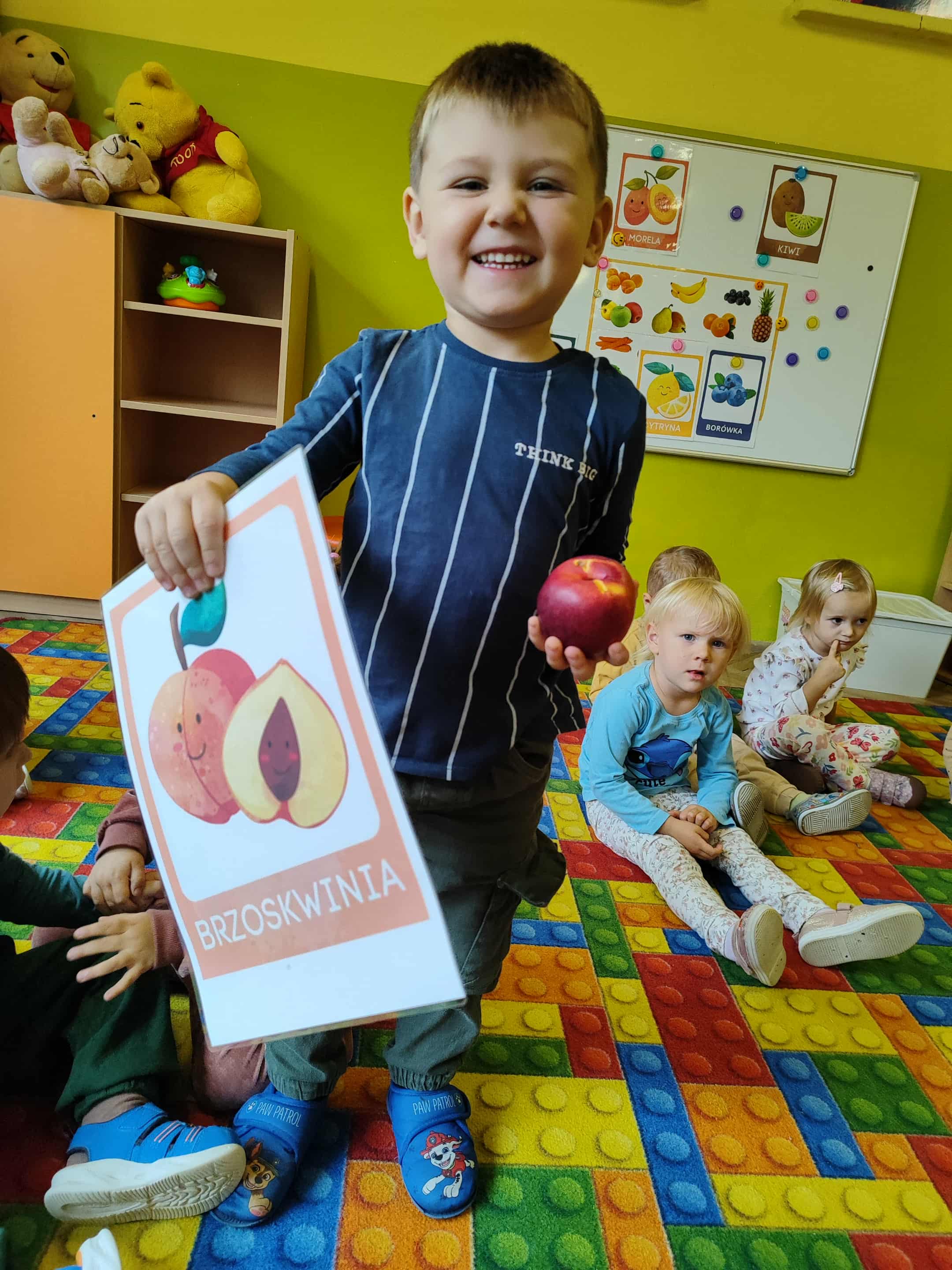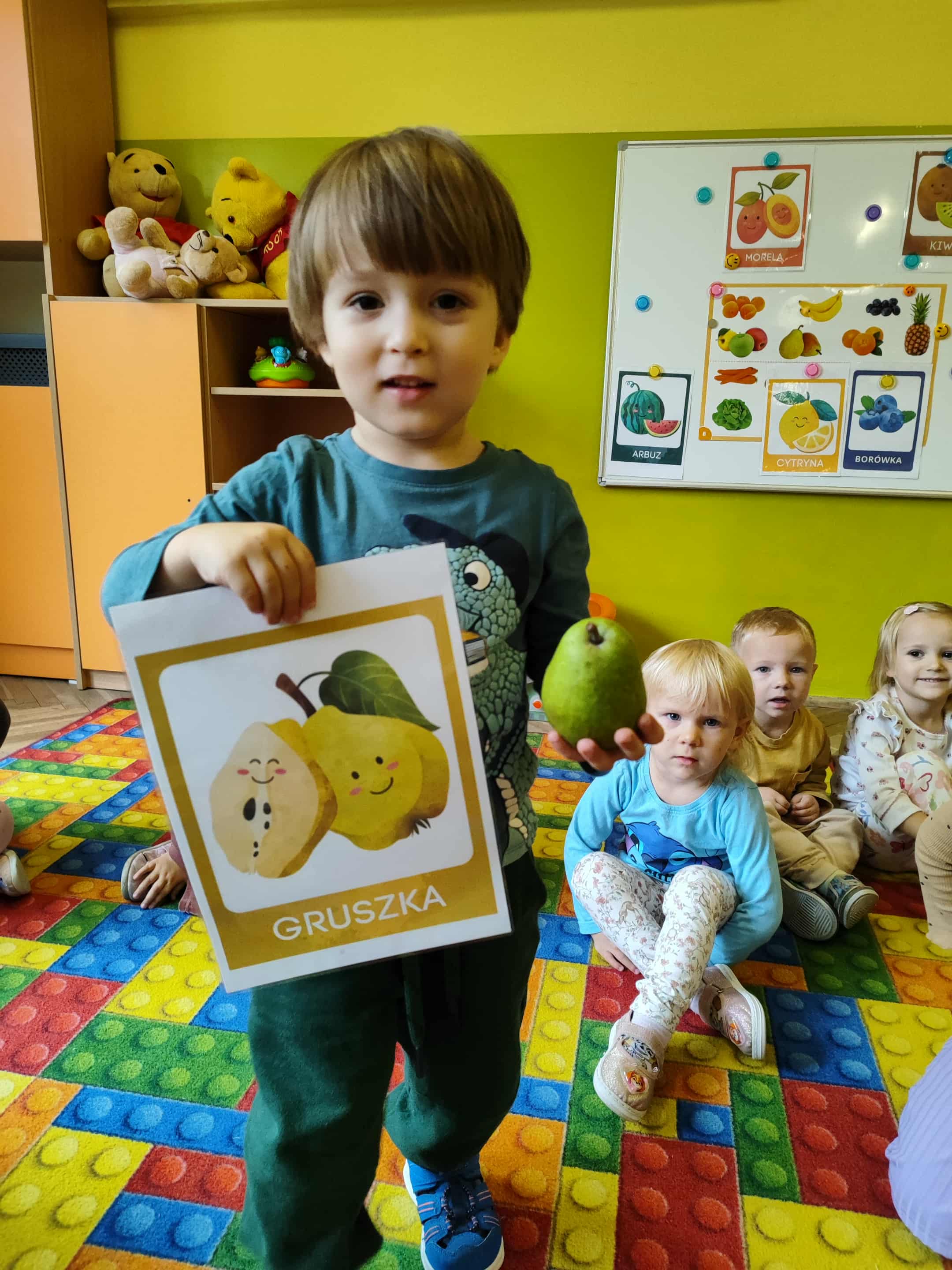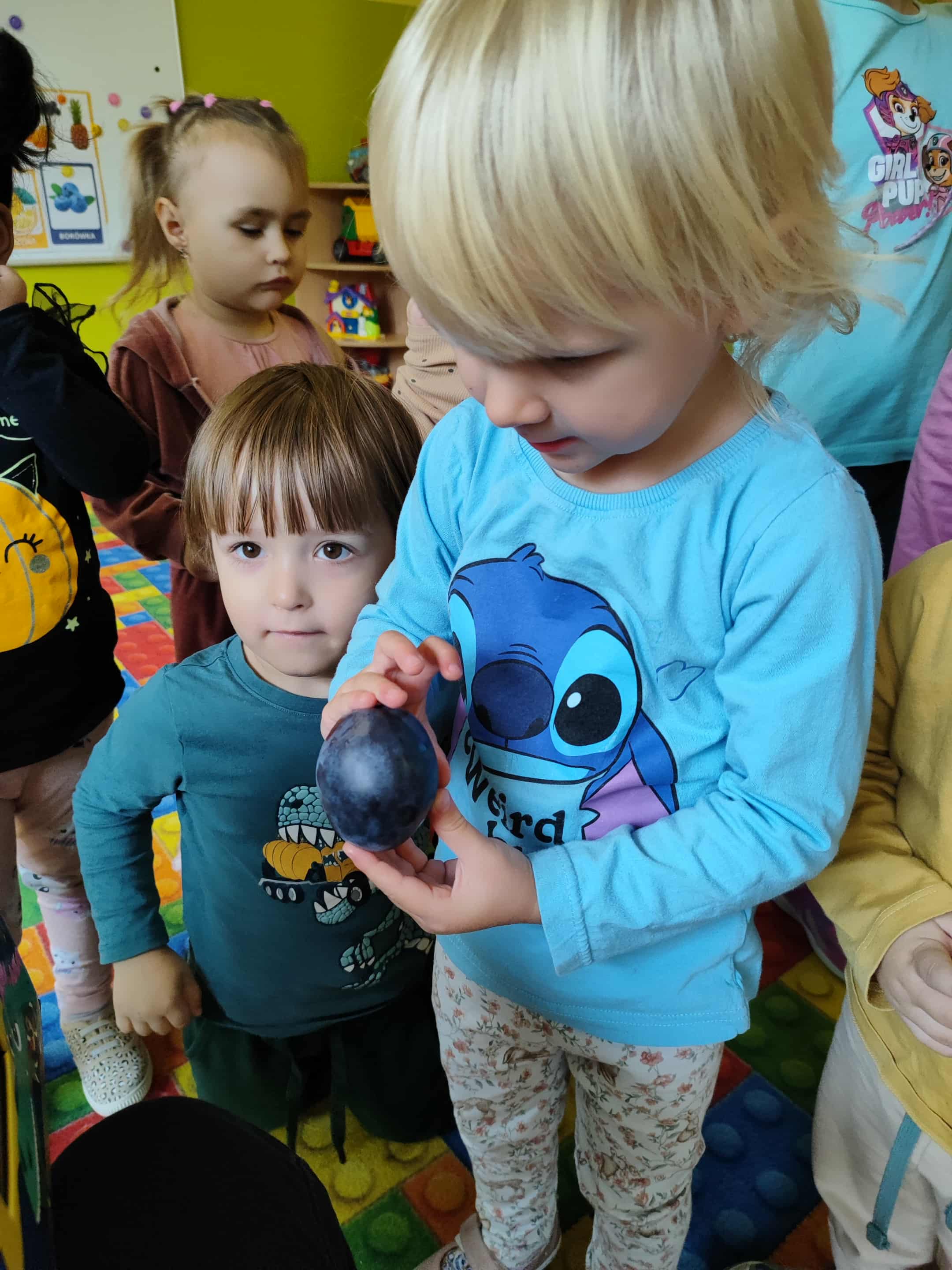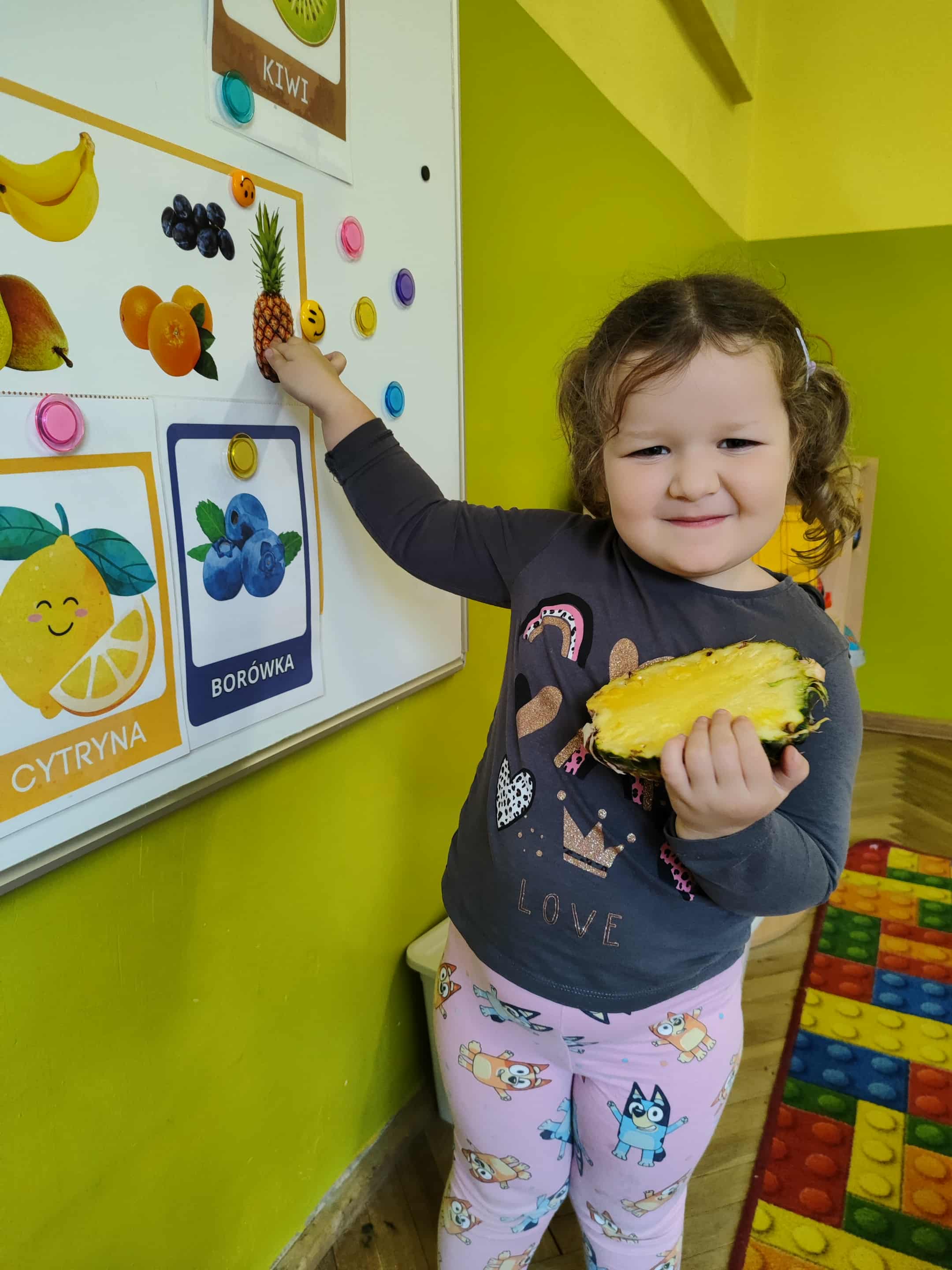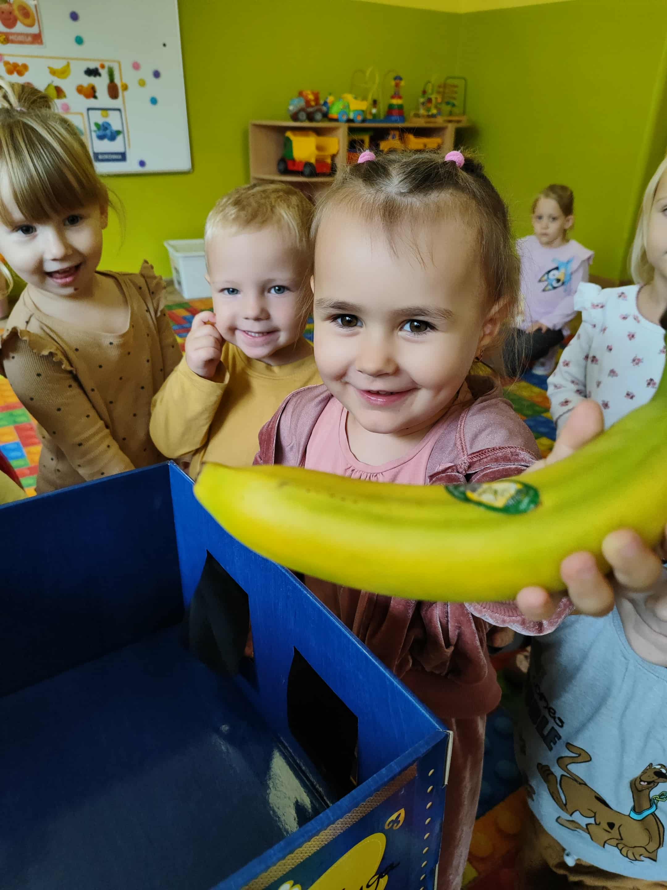 Dzieci samodzielnie kroiły i przyrządzały sałatkę owocową przestrzegając zasad bezpieczeństwa przy posługiwaniu się nożem. Własnoręcznie zrobiona sałatka wyśmienicie dzieciom smakowała.