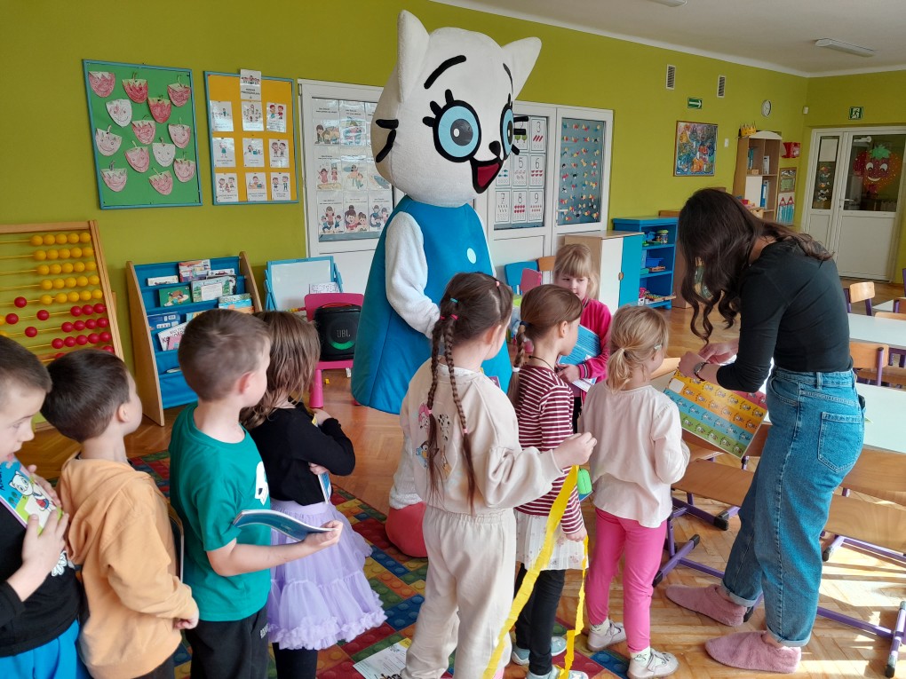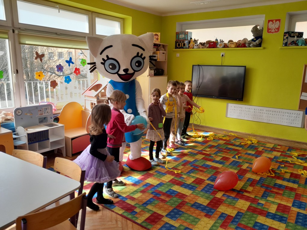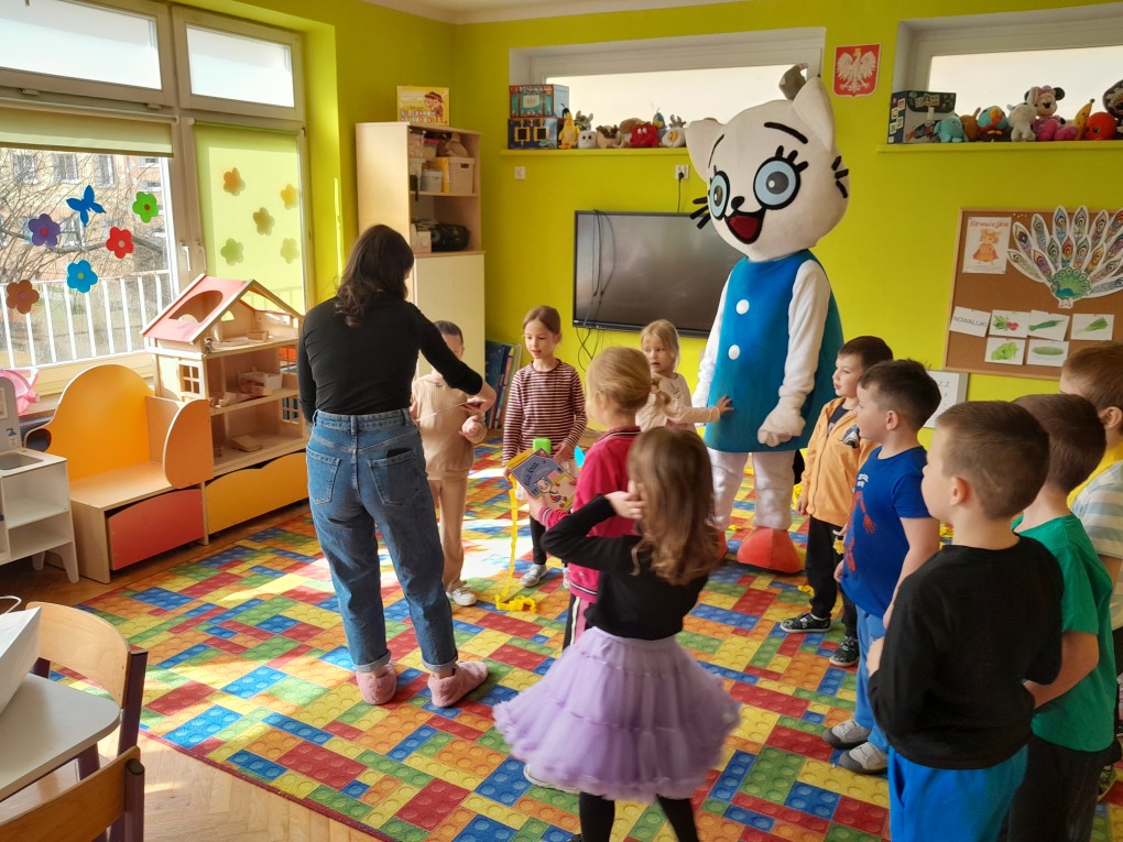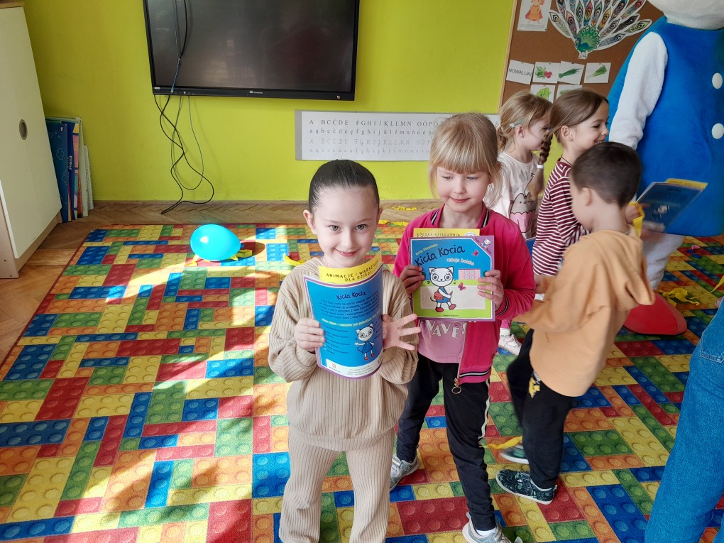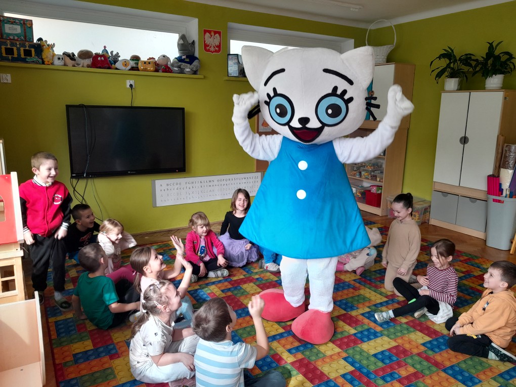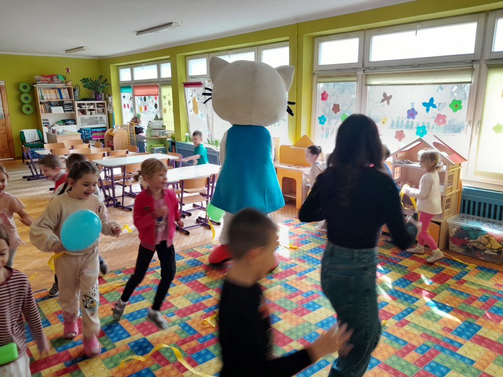 Dziś w naszej grupie odbyło się wyjątkowe spotkanie z bohaterką książek – Kicią Kocią. Spotkanie zostało zorganizowane we współpracy z księgarnią „Zaczytana Łódka”. Na początku zaproszeni goście przeczytali dzieciom książkę „Kicia Kocia ratuje boisko”, która wzbudziła duże zainteresowanie naszych Truskawek. Następnie do naszej sali zawitała sama Kicia Kocia – ulubiona bohaterka wszystkich dzieci! Rozpoczęła się wspaniała zabawa przy muzyce, z kolorowymi balonami i mnóstwem uśmiechu. Na zakończenie spotkania każde dziecko otrzymało książkę oraz naklejki, które będą miłą pamiątką tego radosnego dnia.