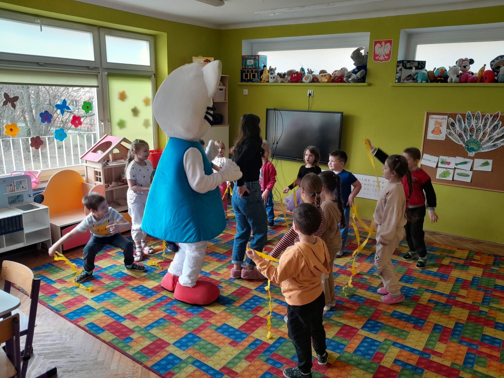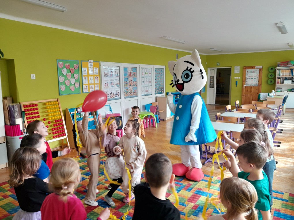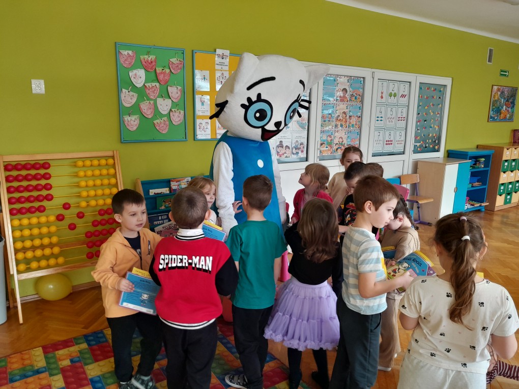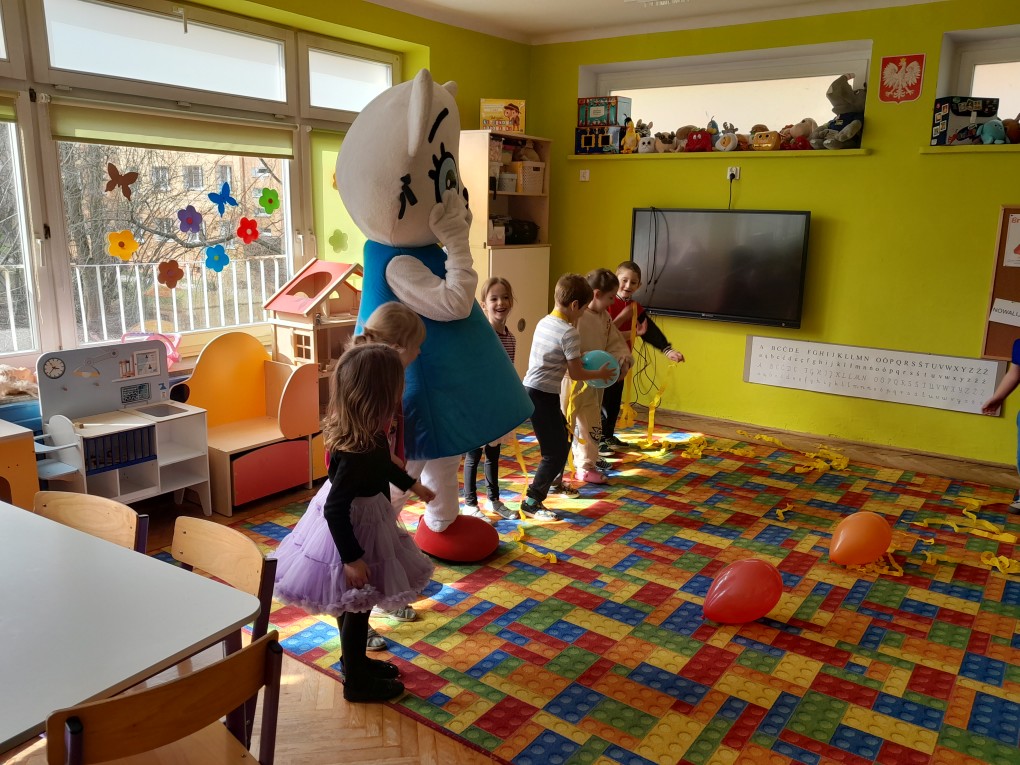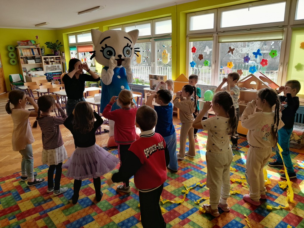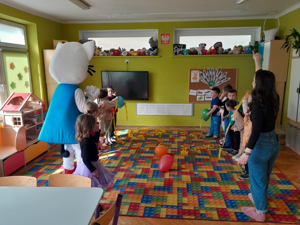 Dziś w naszej grupie odbyło się wyjątkowe spotkanie z bohaterką książek – Kicią Kocią. Spotkanie zostało zorganizowane we współpracy z księgarnią „Zaczytana Łódka”. Na początku zaproszeni goście przeczytali dzieciom książkę „Kicia Kocia ratuje boisko”, która wzbudziła duże zainteresowanie naszych Truskawek. Następnie do naszej sali zawitała sama Kicia Kocia – ulubiona bohaterka wszystkich dzieci! Rozpoczęła się wspaniała zabawa przy muzyce, z kolorowymi balonami i mnóstwem uśmiechu. Na zakończenie spotkania każde dziecko otrzymało książkę oraz naklejki, które będą miłą pamiątką tego radosnego dnia.