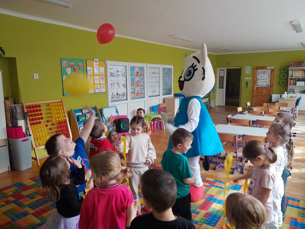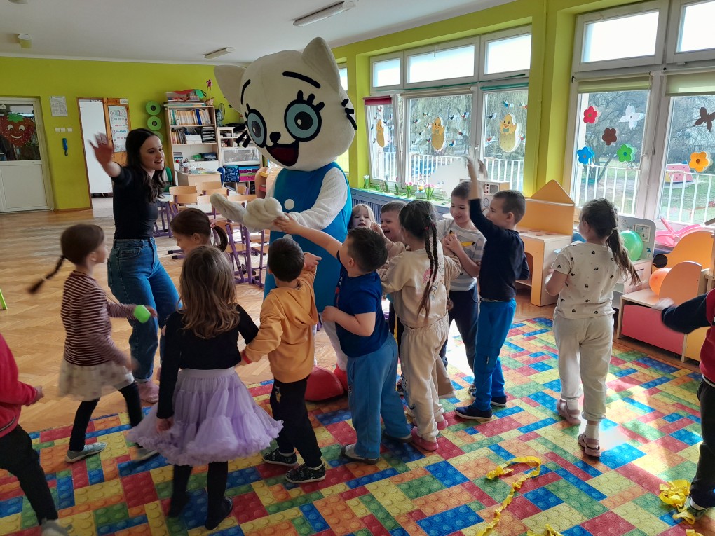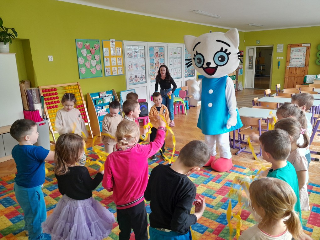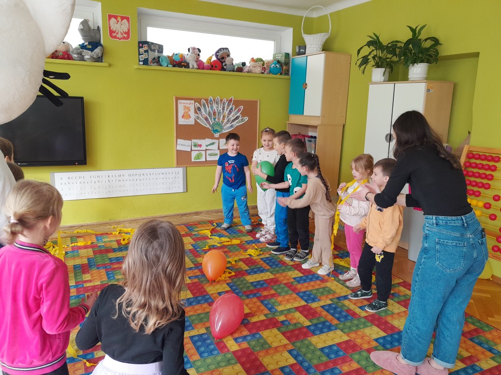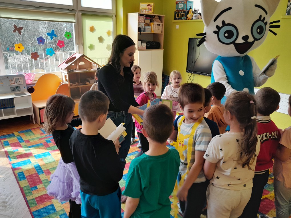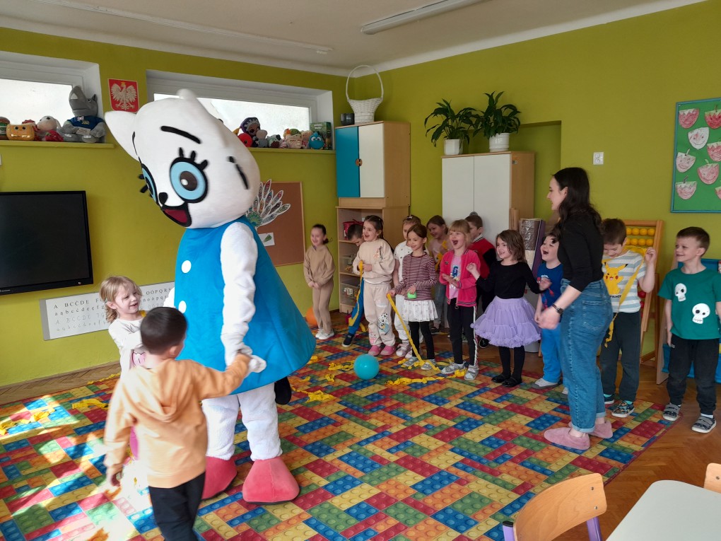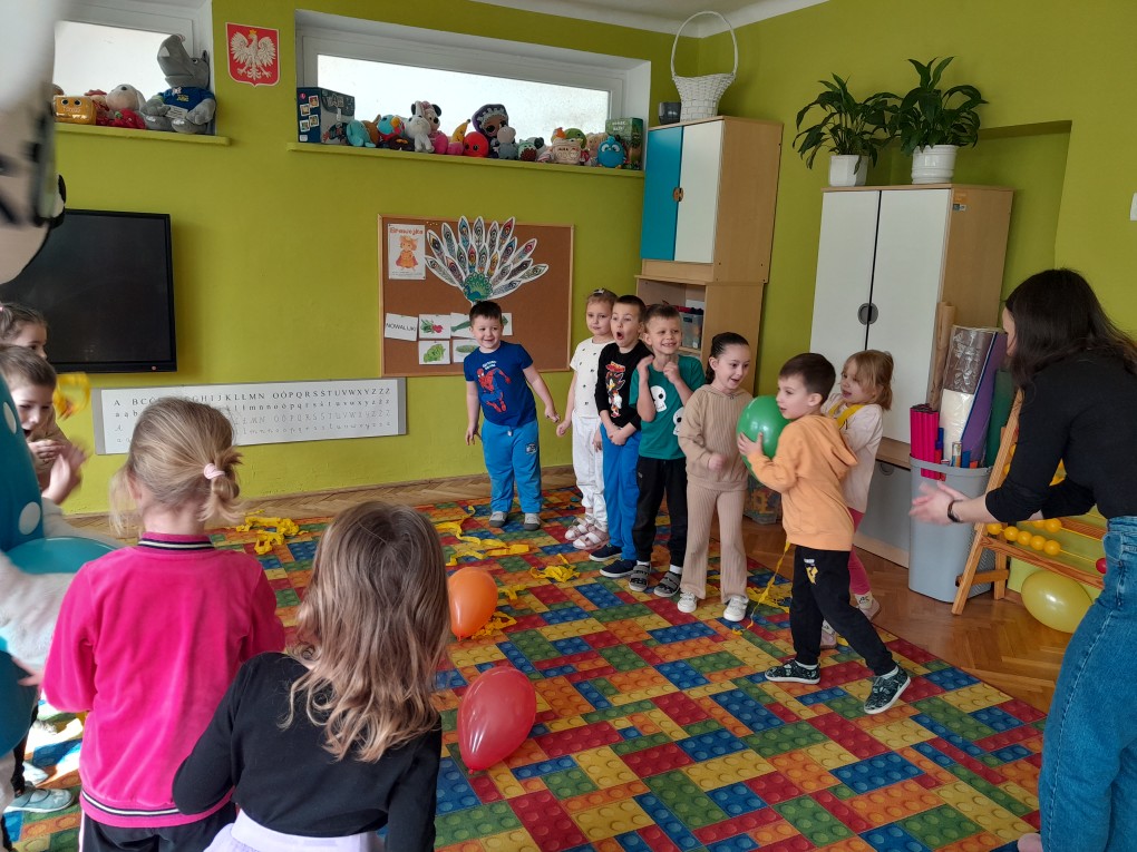 Dziś w naszej grupie odbyło się wyjątkowe spotkanie z bohaterką książek – Kicią Kocią. Spotkanie zostało zorganizowane we współpracy z księgarnią „Zaczytana Łódka”. Na początku zaproszeni goście przeczytali dzieciom książkę „Kicia Kocia ratuje boisko”, która wzbudziła duże zainteresowanie naszych Truskawek. Następnie do naszej sali zawitała sama Kicia Kocia – ulubiona bohaterka wszystkich dzieci! Rozpoczęła się wspaniała zabawa przy muzyce, z kolorowymi balonami i mnóstwem uśmiechu. Na zakończenie spotkania każde dziecko otrzymało książkę oraz naklejki, które będą miłą pamiątką tego radosnego dnia.