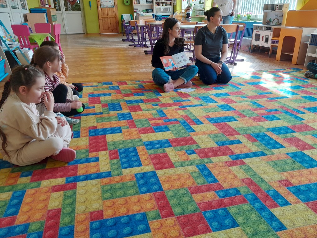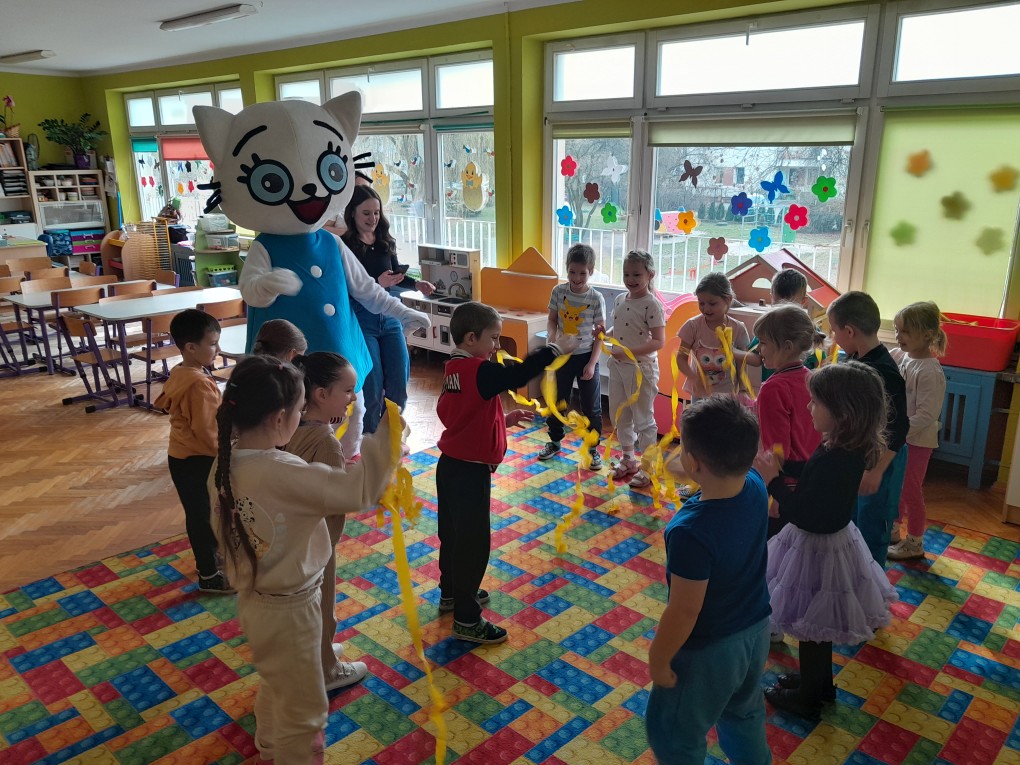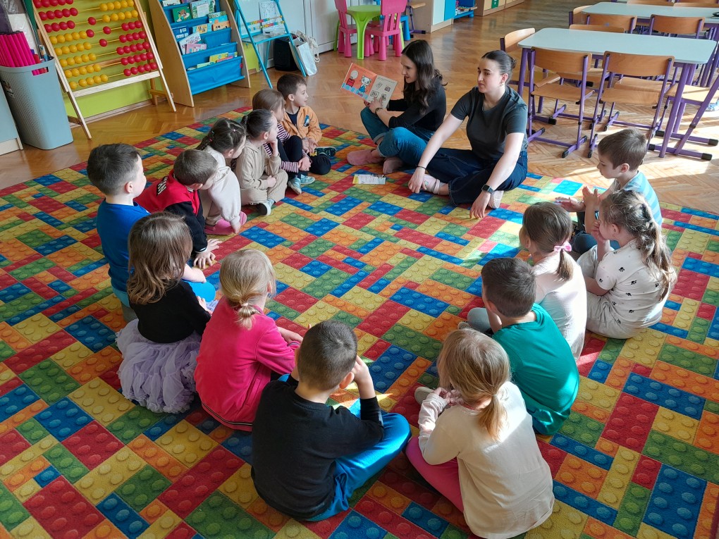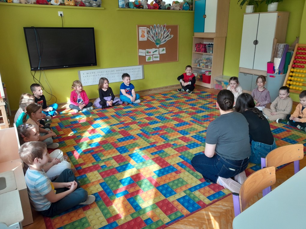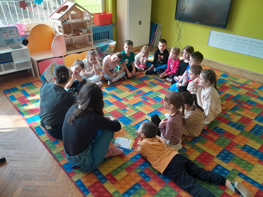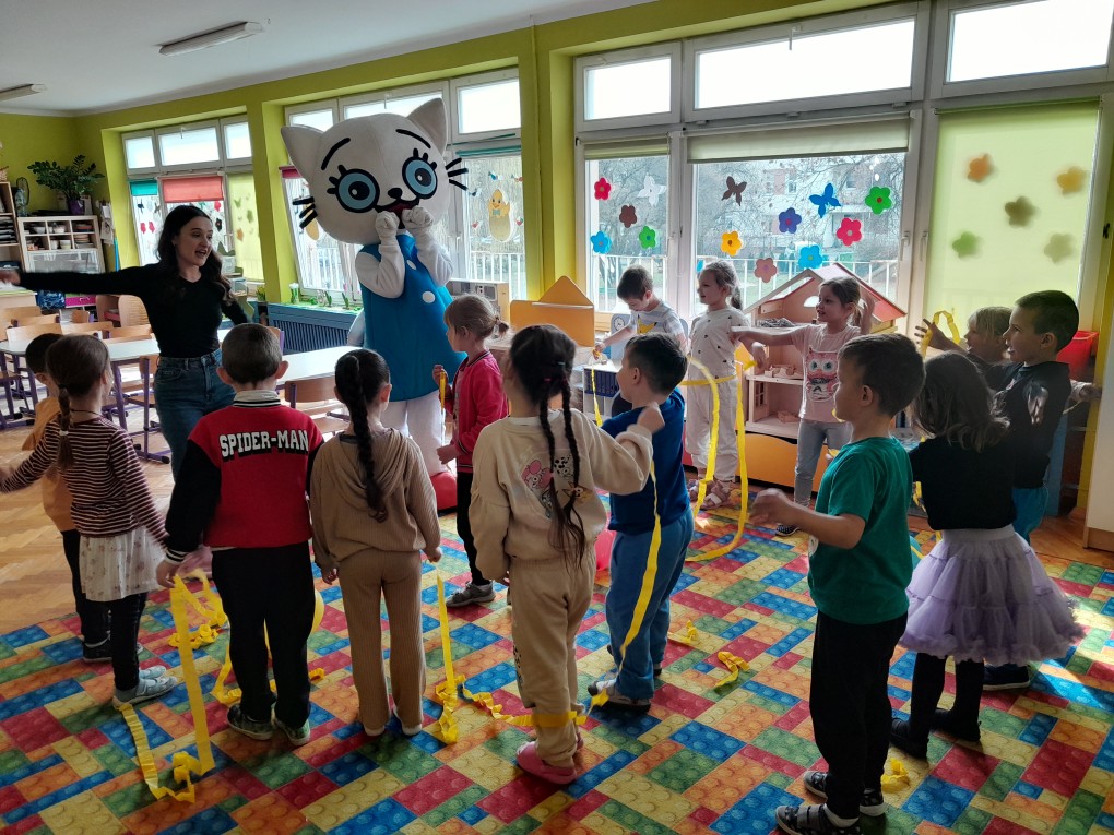 Dziś w naszej grupie odbyło się wyjątkowe spotkanie z bohaterką książek – Kicią Kocią. Spotkanie zostało zorganizowane we współpracy z księgarnią „Zaczytana Łódka”. Na początku zaproszeni goście przeczytali dzieciom książkę „Kicia Kocia ratuje boisko”, która wzbudziła duże zainteresowanie naszych Truskawek. Następnie do naszej sali zawitała sama Kicia Kocia – ulubiona bohaterka wszystkich dzieci! Rozpoczęła się wspaniała zabawa przy muzyce, z kolorowymi balonami i mnóstwem uśmiechu. Na zakończenie spotkania każde dziecko otrzymało książkę oraz naklejki, które będą miłą pamiątką tego radosnego dnia.