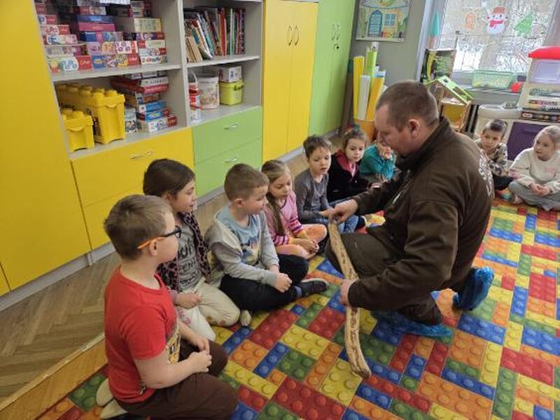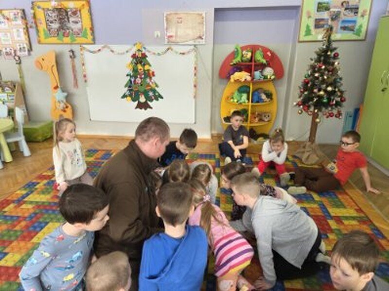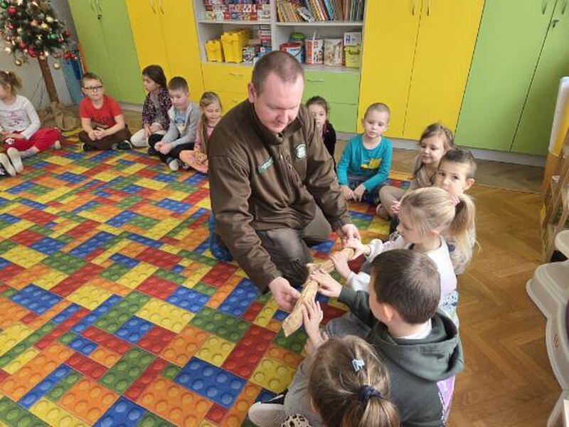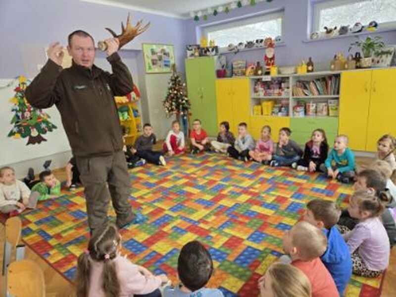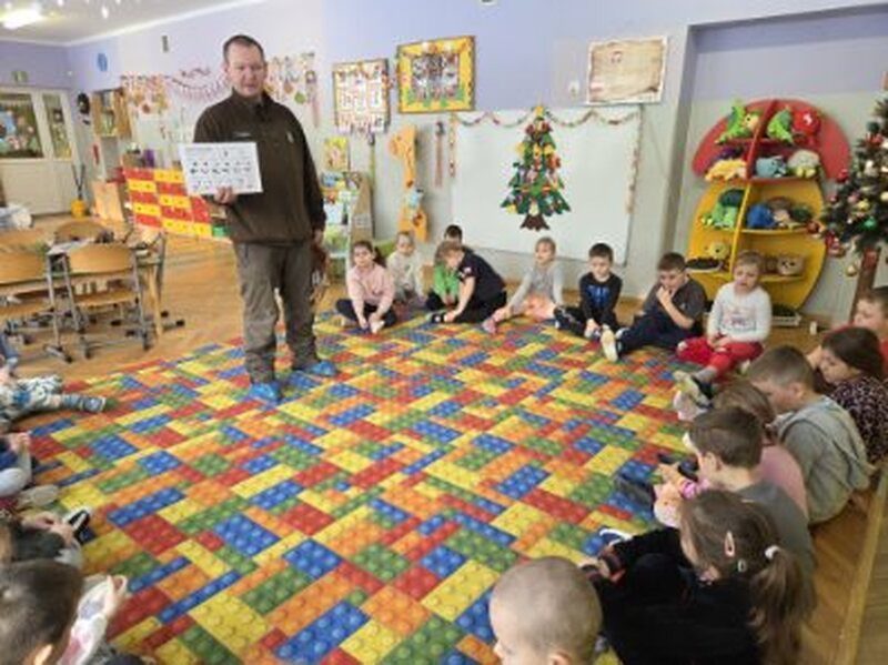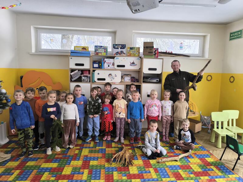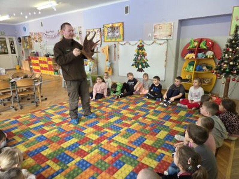 Do naszego przedszkola zawitał specjalny gość - Pan leśniczy pracujący w nadleśnictwie Grotniki. Celem tego spotkania było zapoznanie dzieci z pracą leśnika. Nasz gość opowiedział, a zarazem przypomniał dzieciom o zwierzętach występujących w lesie. Pan leśnik opowiedział również o sadzeniu lasu, przypomniał roślinność występującą w lesie oraz poszerzył nasze wiadomości o ochronie drzew przed szkodnikami. Przypomniał też, jak należy zachowywać się w lesie. Dzieci z dużym zainteresowaniem słuchały tych opowieści. Spotkanie upłynęło w miłej atmosferze, a wysłuchane ciekawostki i wiadomości poszerzyły wiedzę przyrodniczą przedszkolaków.