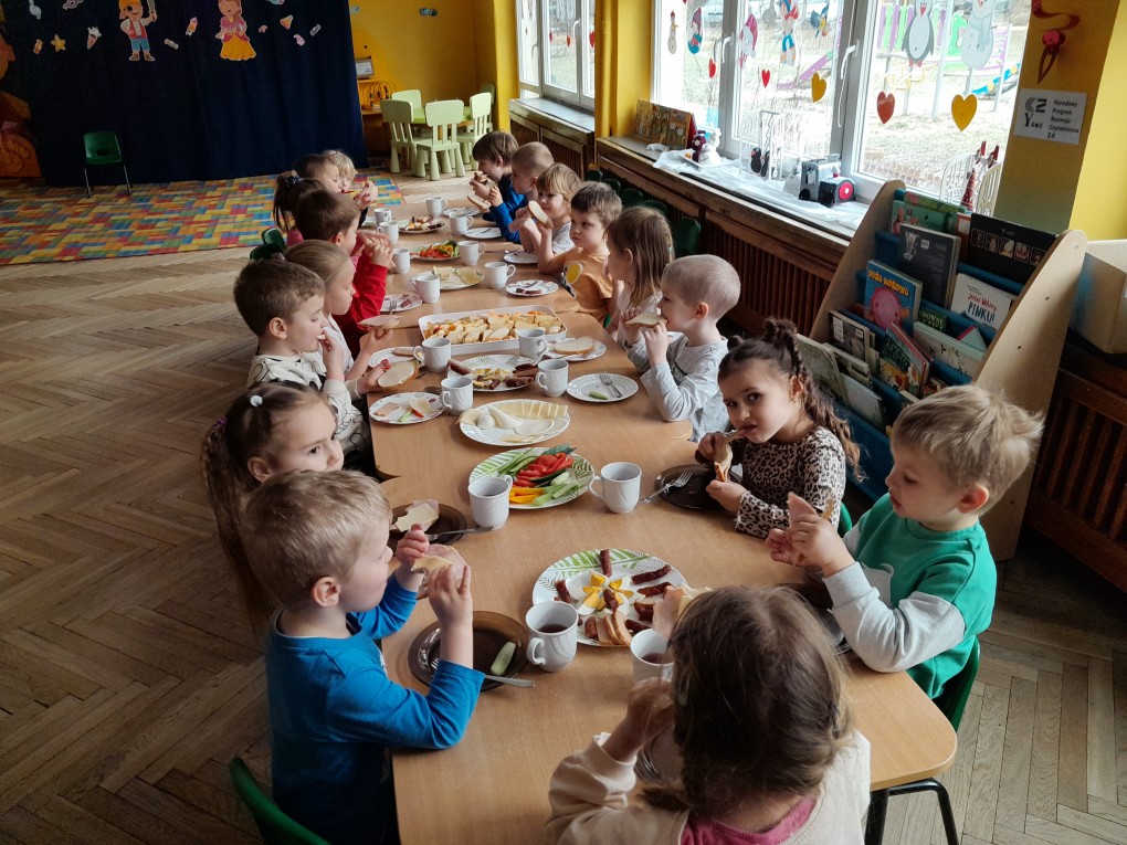 To wydarzenie nie tylko sprawia przedszkolakom wiele radości, ale również uczy samodzielności, podejmowania decyzji oraz kulturalnego zachowania przy wspólnym stole. Jak zawsze było smacznie, zdrowo i bardzo kolorowo!