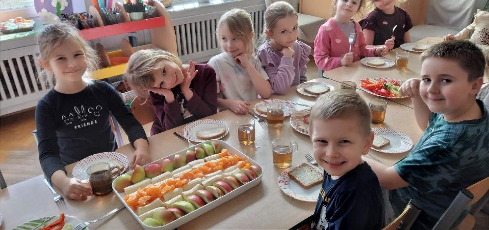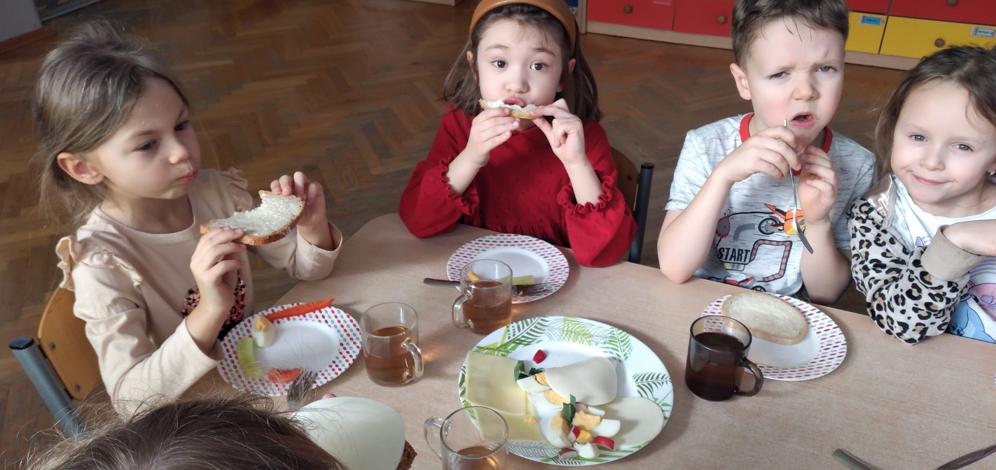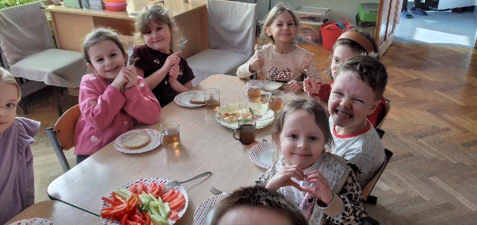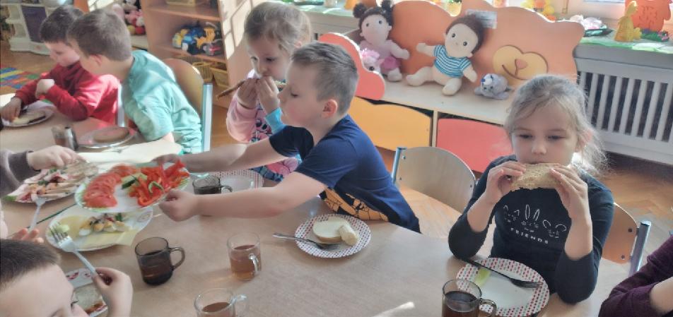 Szwedzki stół - przedszkolaki z grupy Biedronek komponują pyszne i smakowite kanapki. Samodzielnie dokonują wyboru spośród smacznych i zdrowych produktów.