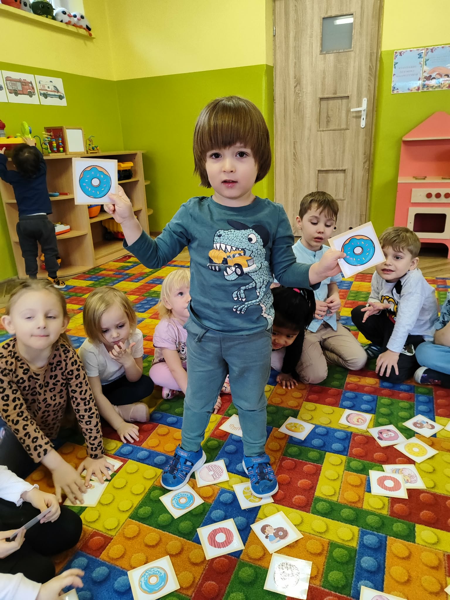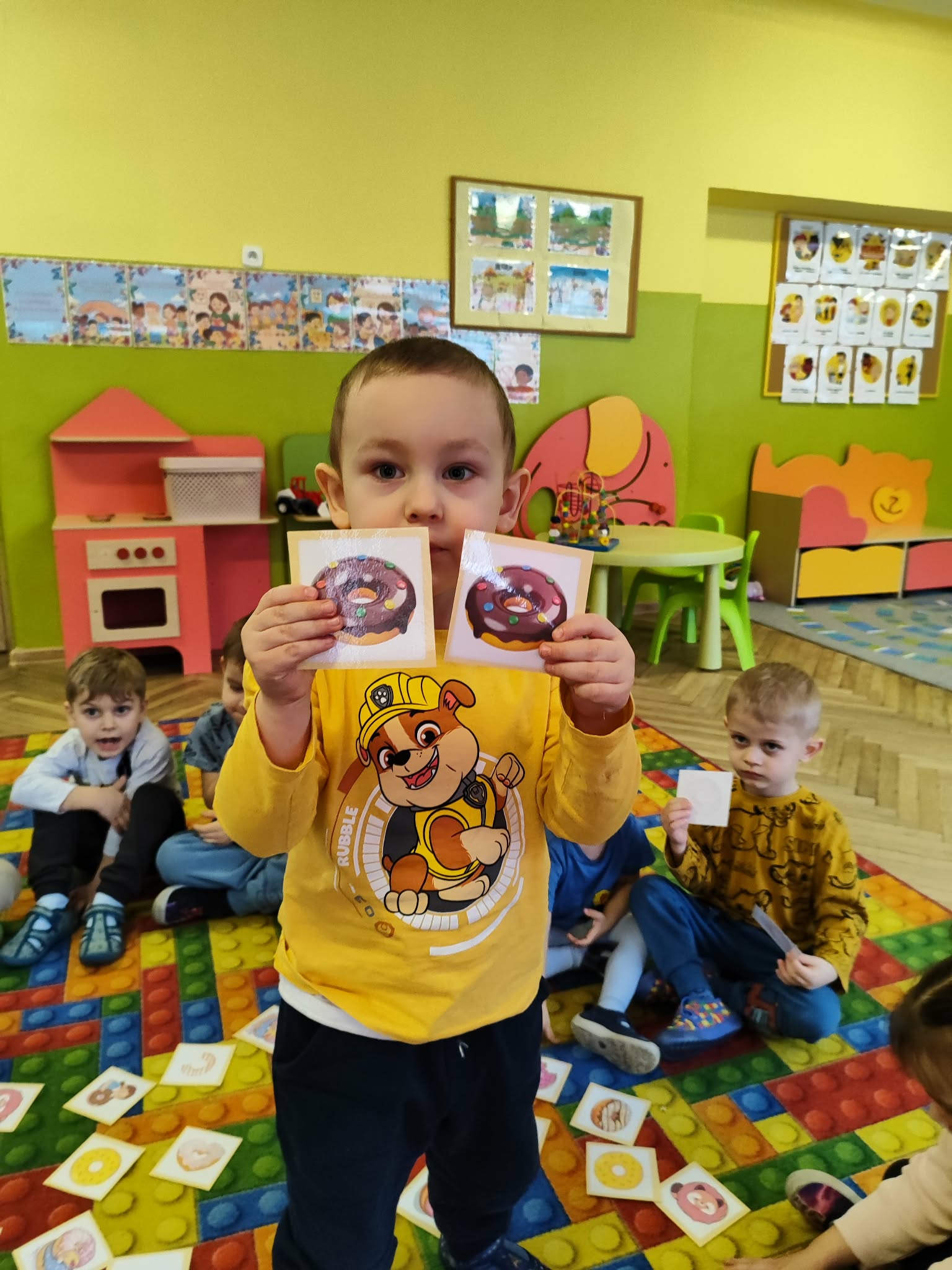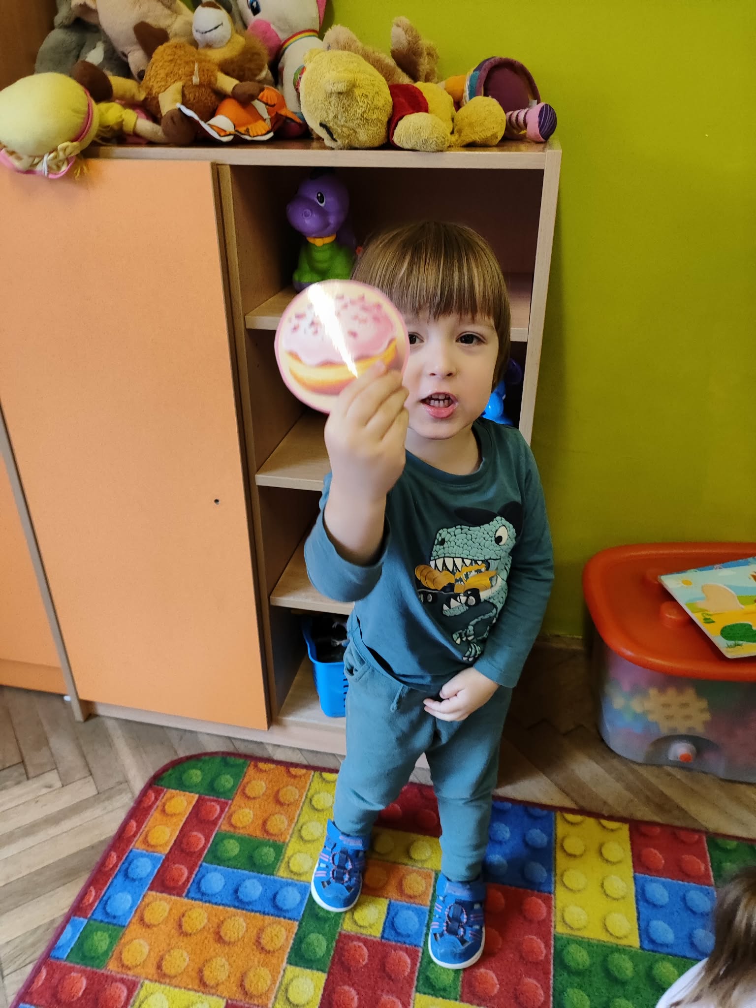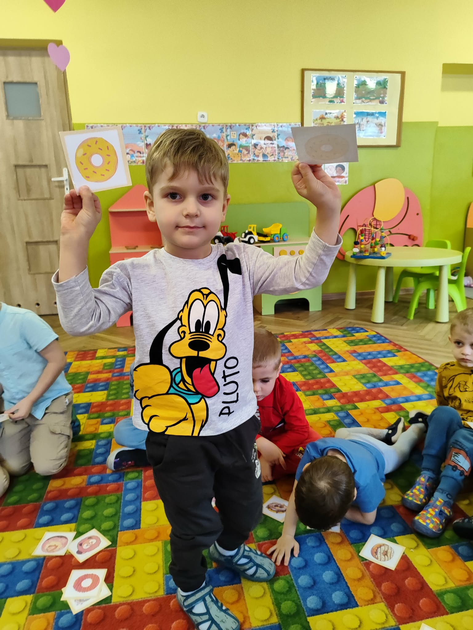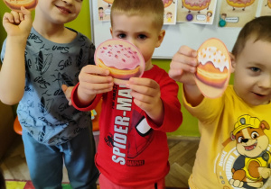 Dzieci dowiedziały się skąd wzieła się tradycja Tłustego Czwartku i dlaczego w tym dniu jemy pączki bądź faworki. Przedszkolaki podczas pracy plastycznej ozdabiały duże plakaty słodkich oponek, tworzyły własne modele papierowych pączków oraz wiele innych kreatywnych dzieł. Dzień ten przepełniony był radosną atmosferą oraz świętem dla wszystkich łasuchów.