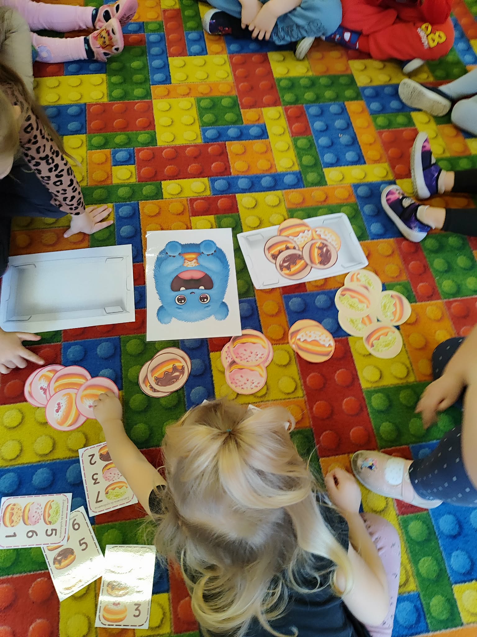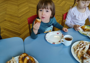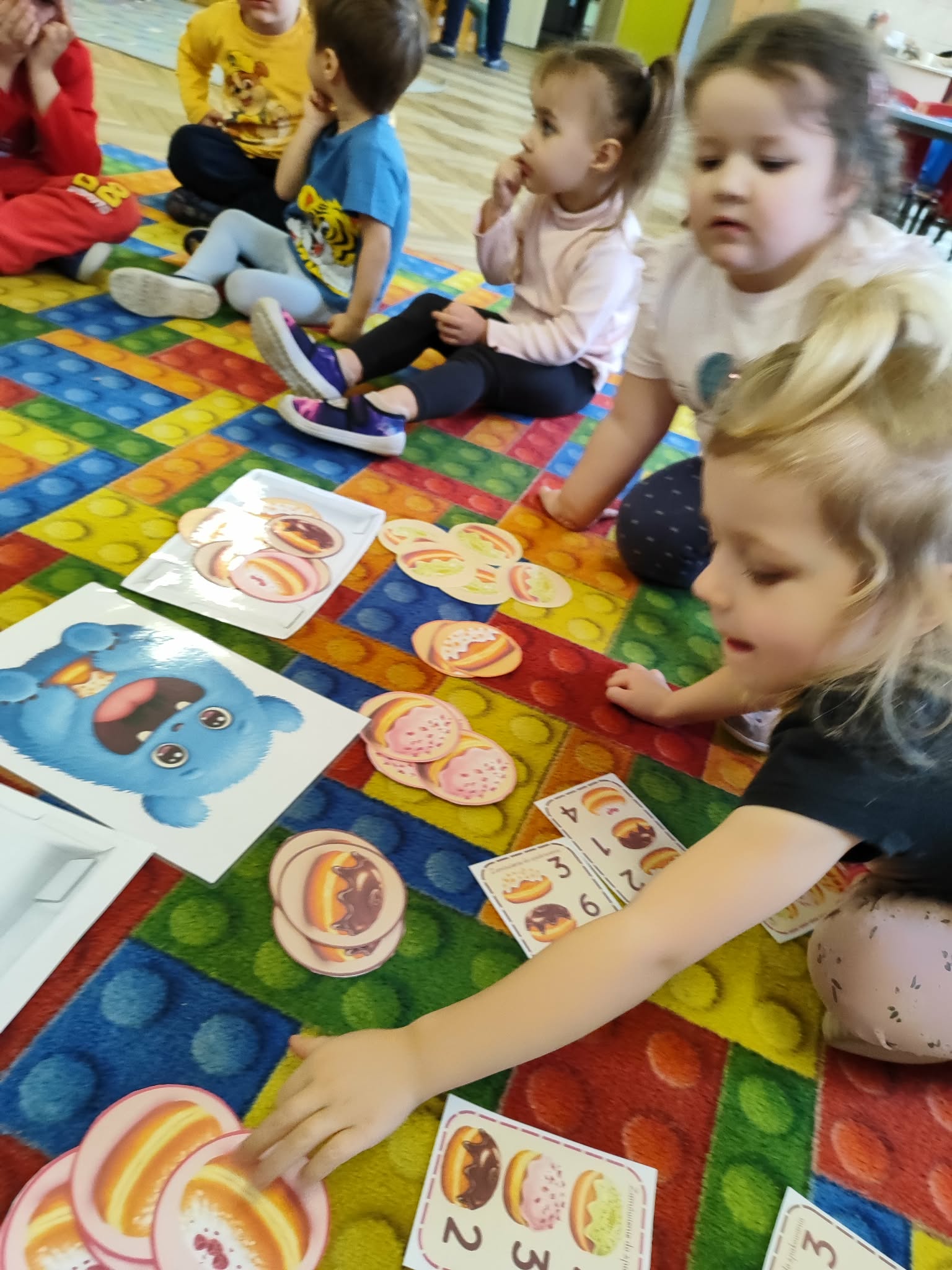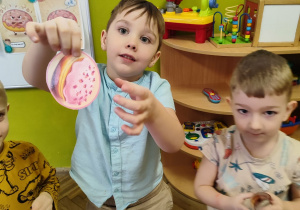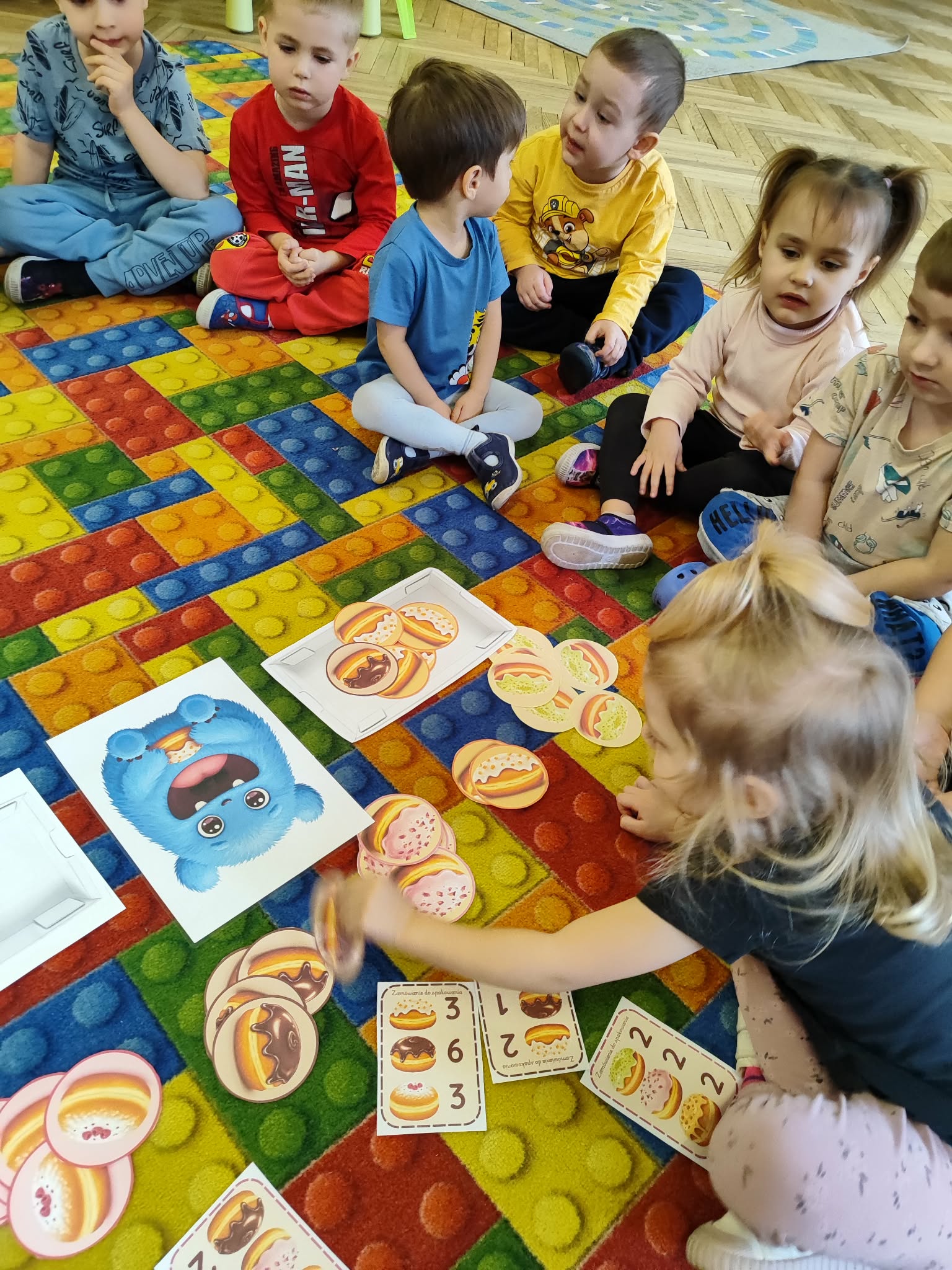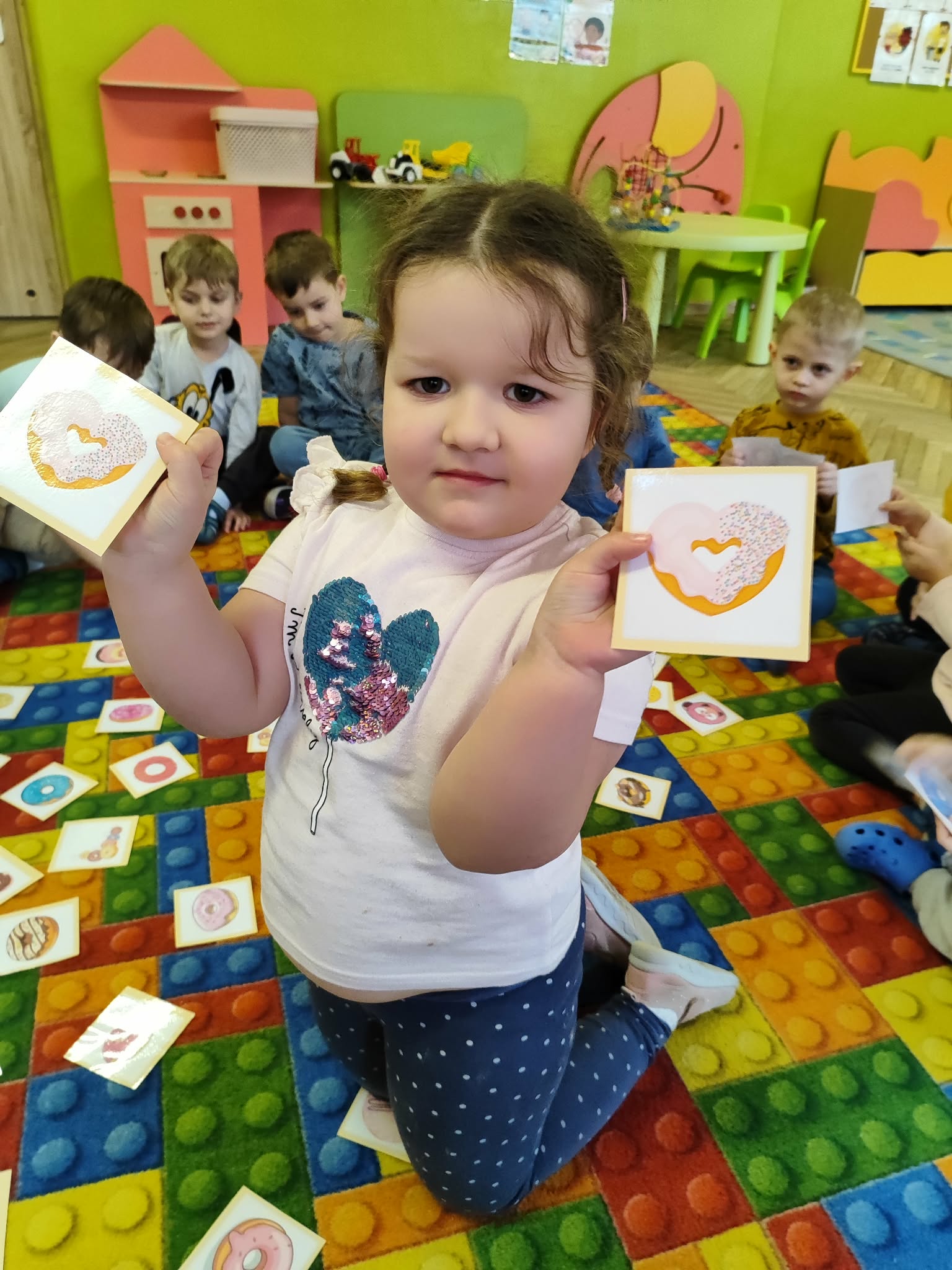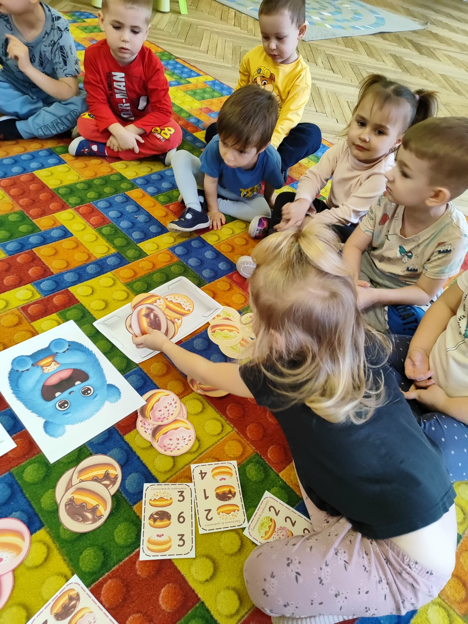 Dzieci dowiedziały się skąd wzieła się tradycja Tłustego Czwartku i dlaczego w tym dniu jemy pączki bądź faworki. Przedszkolaki podczas pracy plastycznej ozdabiały duże plakaty słodkich oponek, tworzyły własne modele papierowych pączków oraz wiele innych kreatywnych dzieł. Dzień ten przepełniony był radosną atmosferą oraz świętem dla wszystkich łasuchów.