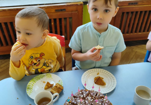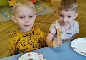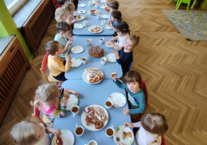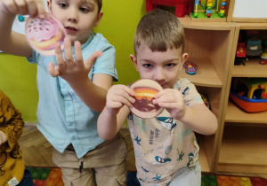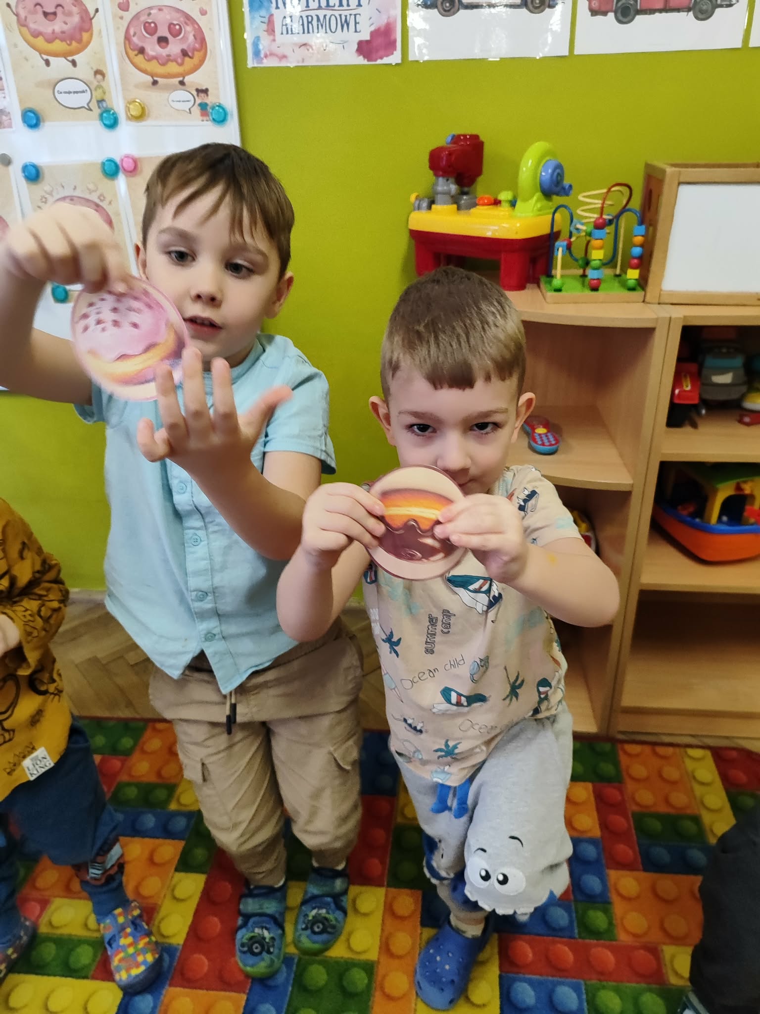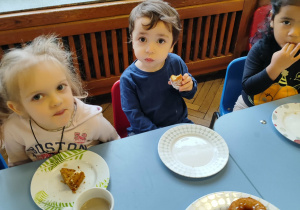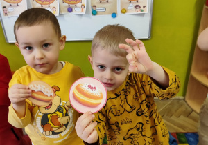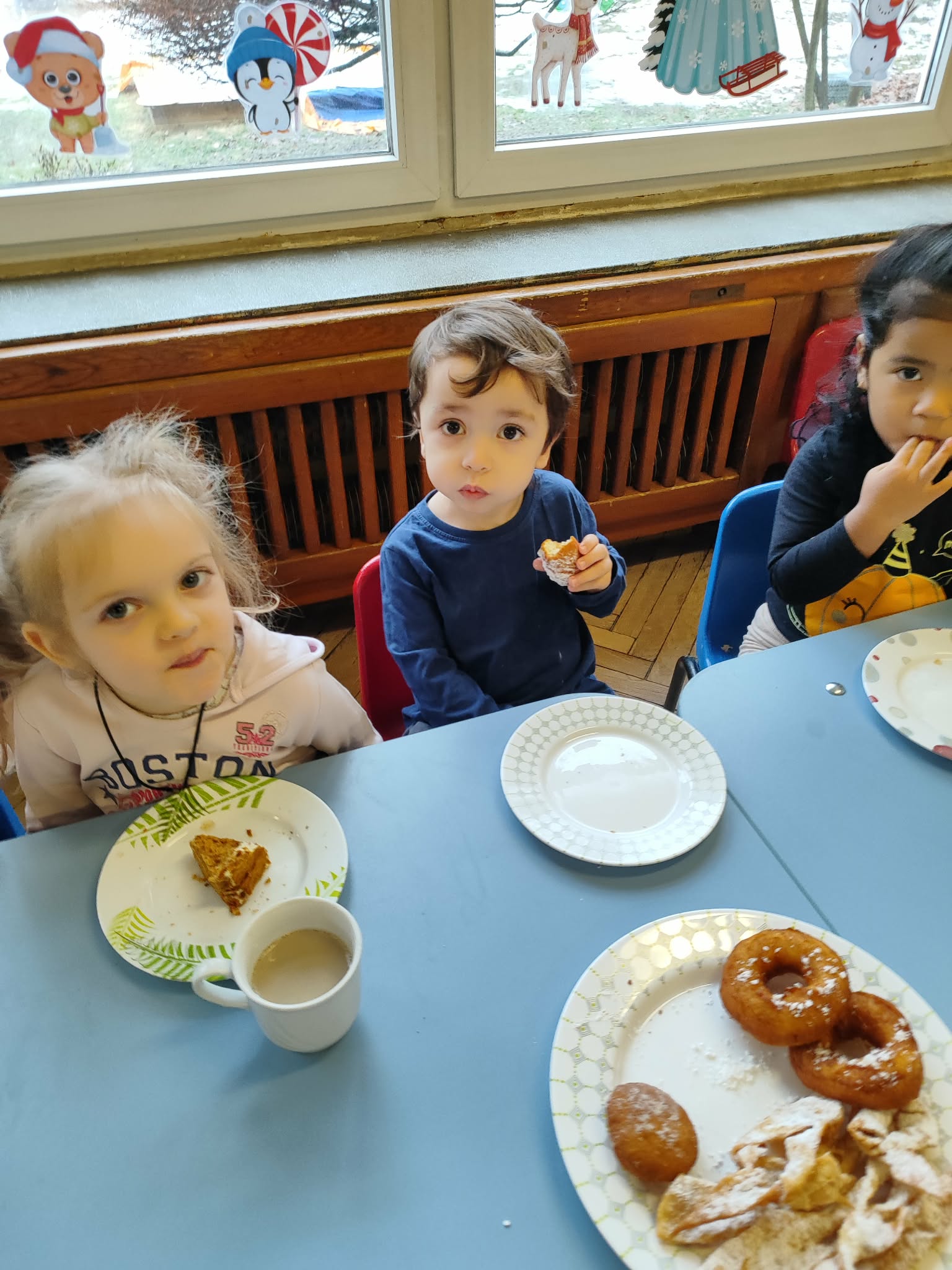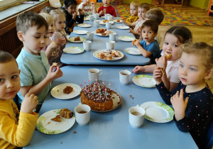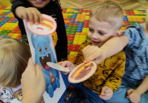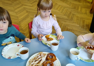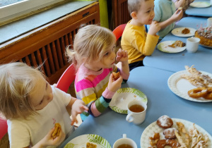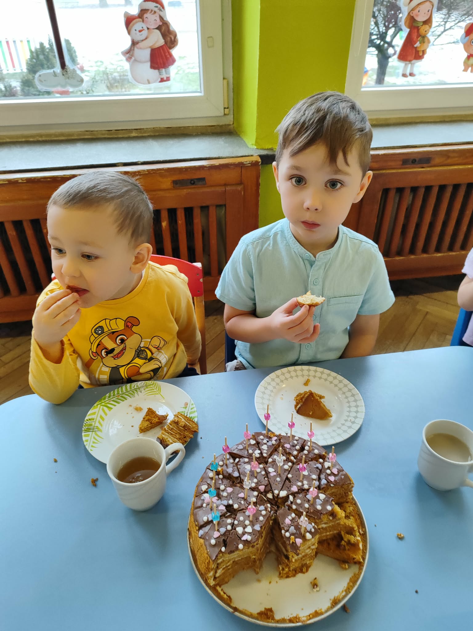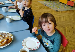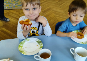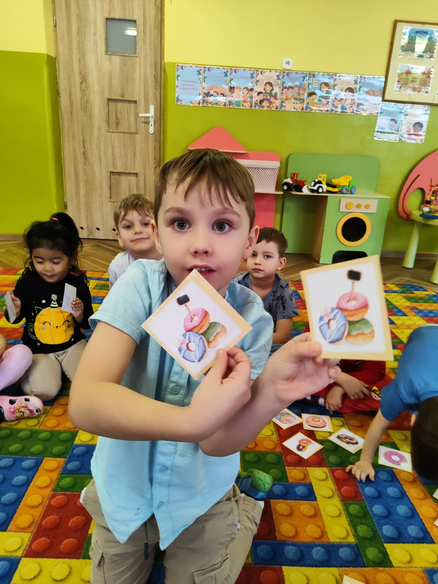Dzieci dowiedziały się skąd wzieła się tradycja Tłustego Czwartku i dlaczego w tym dniu jemy pączki bądź faworki. Przedszkolaki podczas pracy plastycznej ozdabiały duże plakaty słodkich oponek, tworzyły własne modele papierowych pączków oraz wiele innych kreatywnych dzieł. Dzień ten przepełniony był radosną atmosferą oraz świętem dla wszystkich łasuchów.