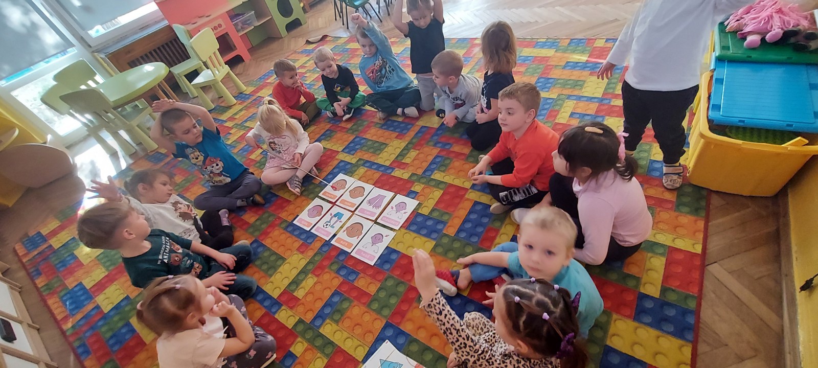 Dzieci z grupy 2 poznają świat języka angielskiego! Nasze przedszkolaki z grupy 2 regularnie uczestniczą w zajęciach z języka angielskiego. Podczas nauki świetnie się bawią – śpiewają piosenki, powtarzają proste słówka, rymowanki i zwroty, a także biorą udział w zabawach ruchowych i grach dydaktycznych. Dzięki takim aktywnościom dzieci oswajają się z nowym językiem w sposób naturalny i przyjemny. Każde zajęcia to okazja do rozwijania słuchu językowego, nauki poprzez ruch i śmiech oraz budowania pewności siebie w komunikacji.